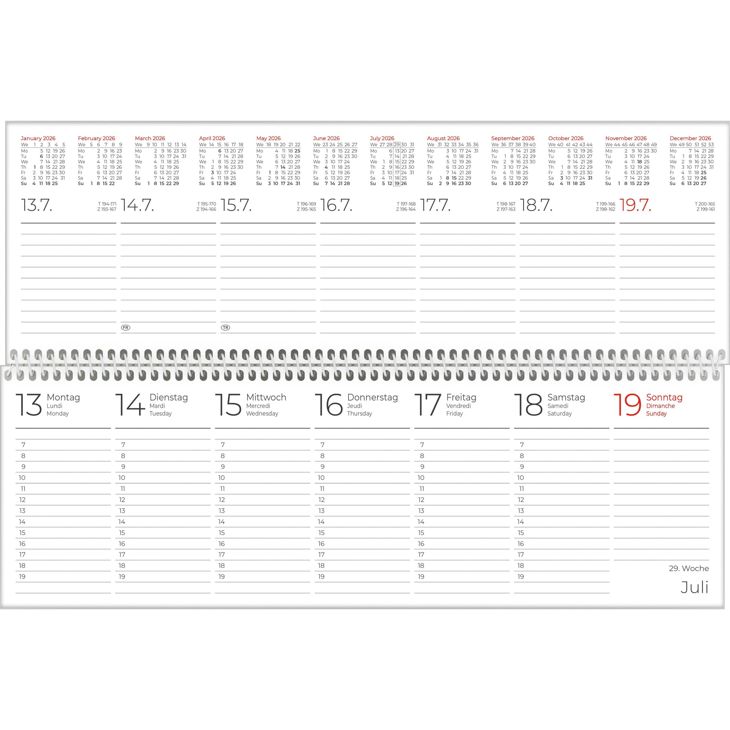 Tischquerkalender Recycling 2026 - 29,6x9,9 - 1 Woche auf 2 Seiten - Blauer Engel - Kalender aus Recyclingpapier - Stundeneinteilung 7 - 19 Uhr - 116-0700