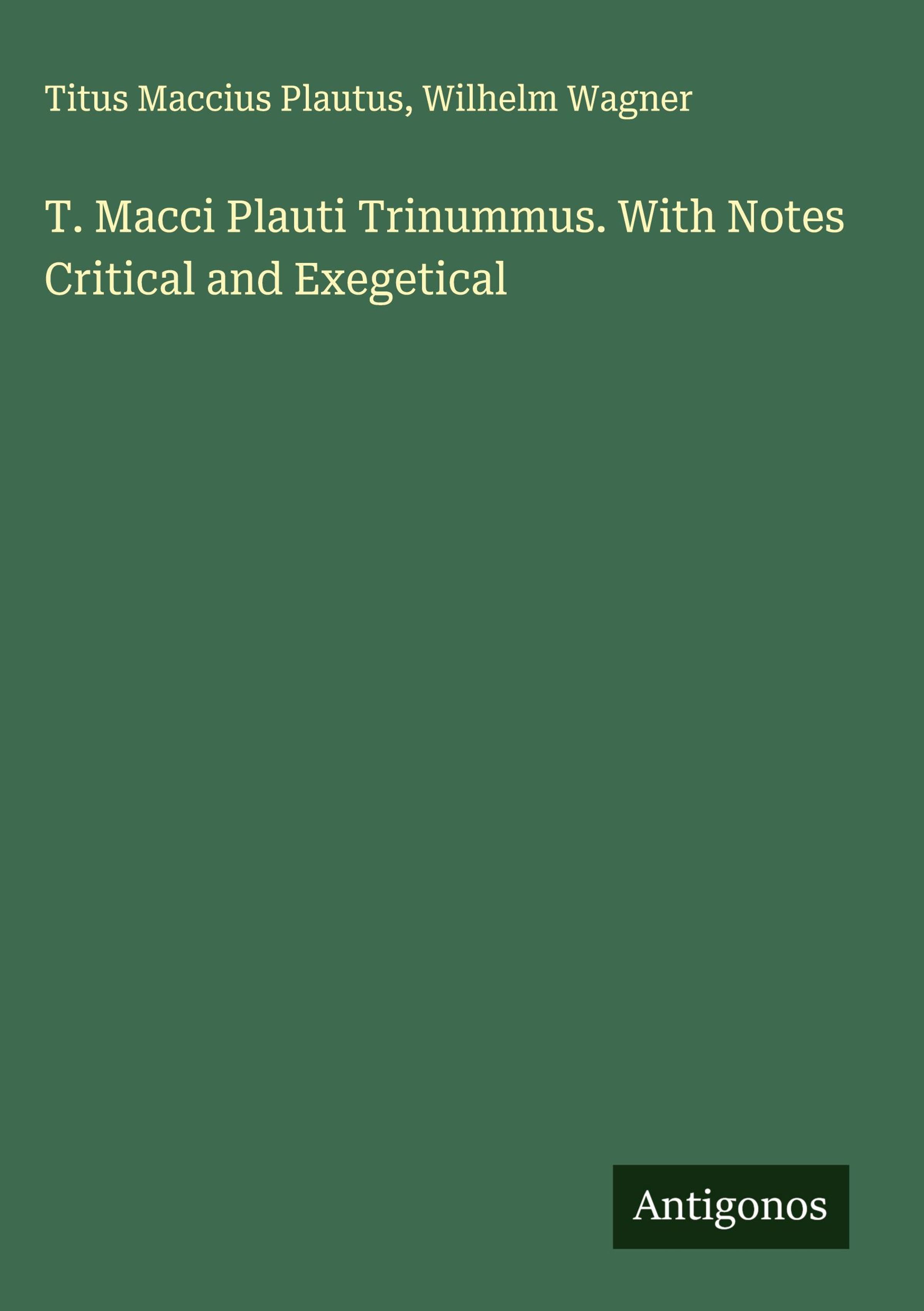 Weitere Ausgaben von T. Macci Plauti Trinummus. With Notes Critical and Exegetical |