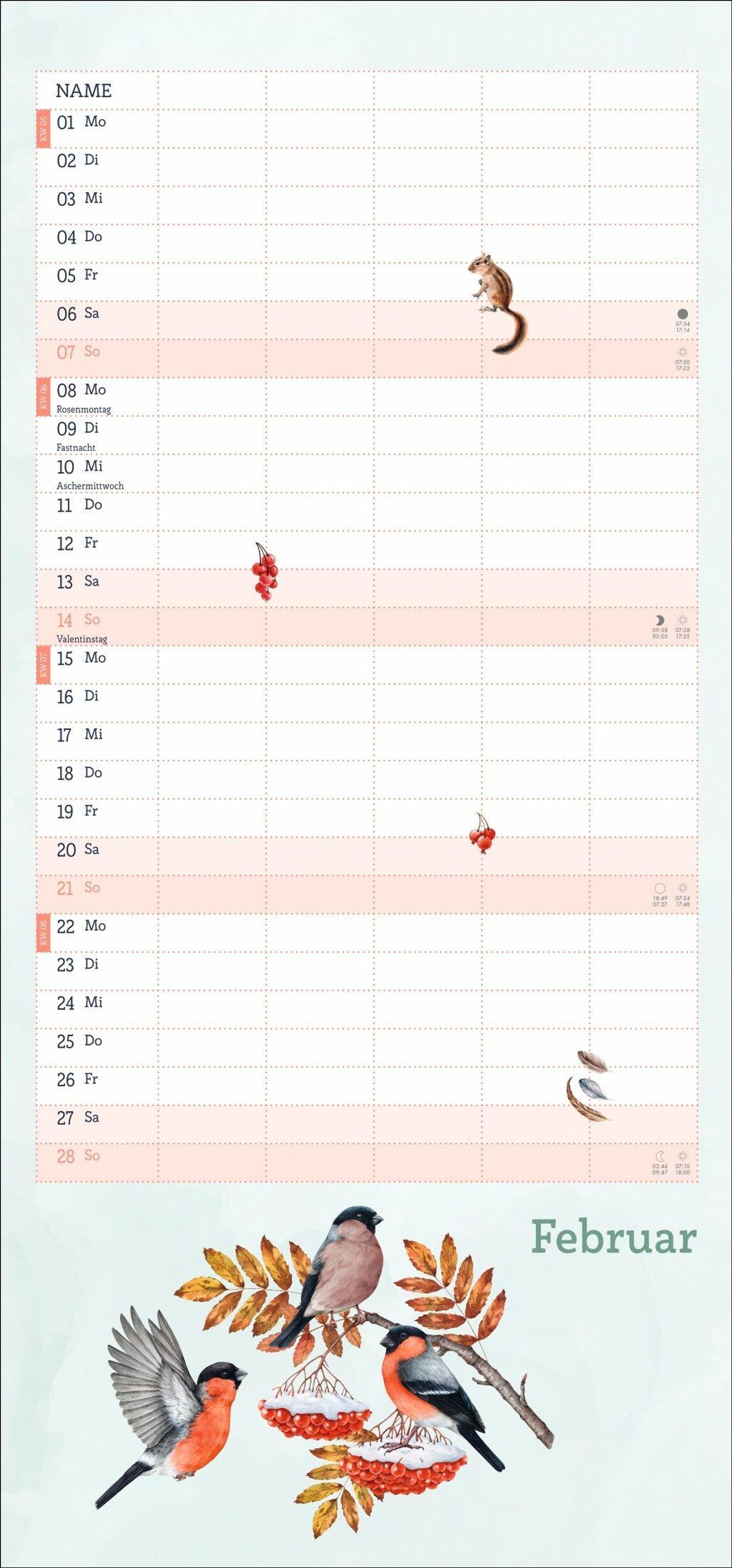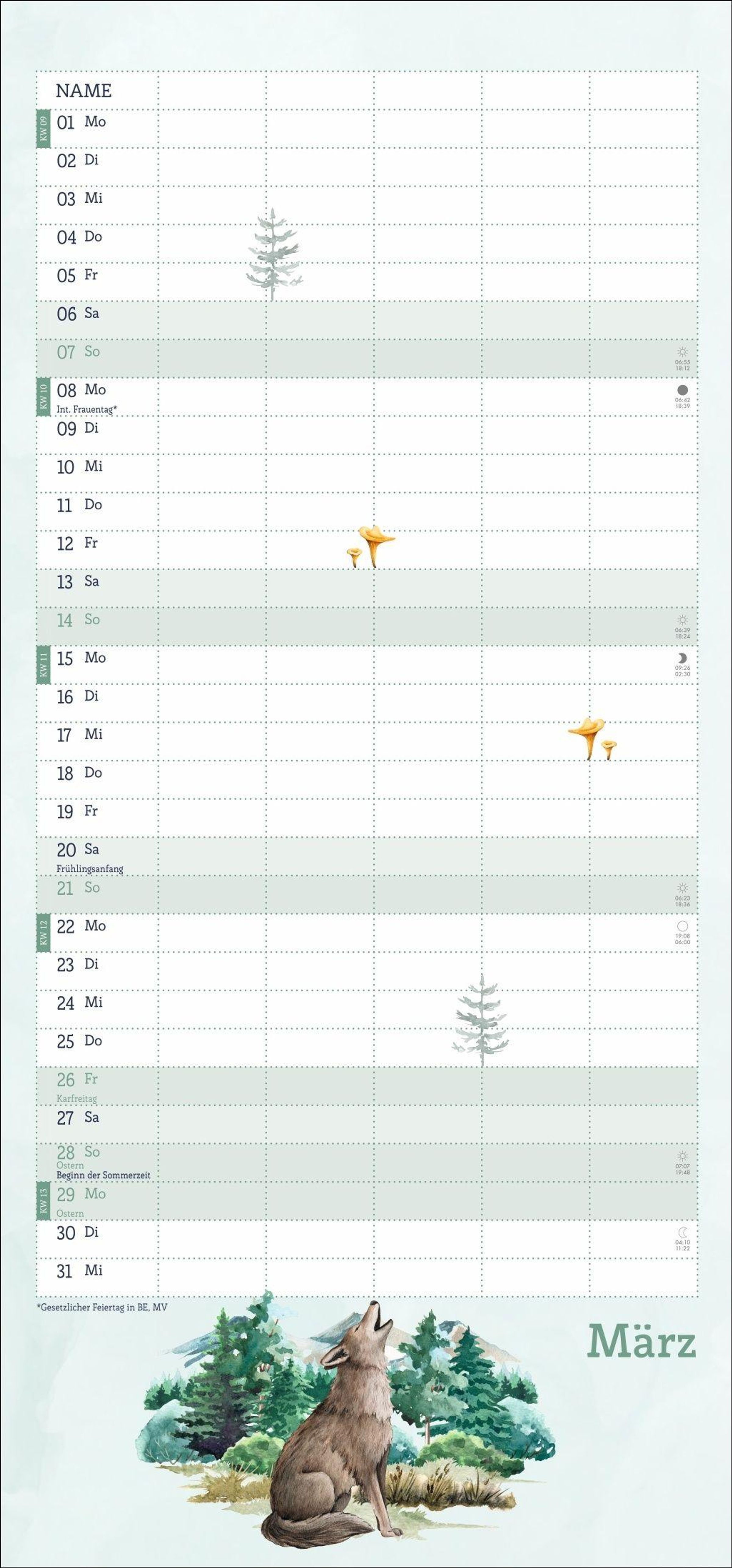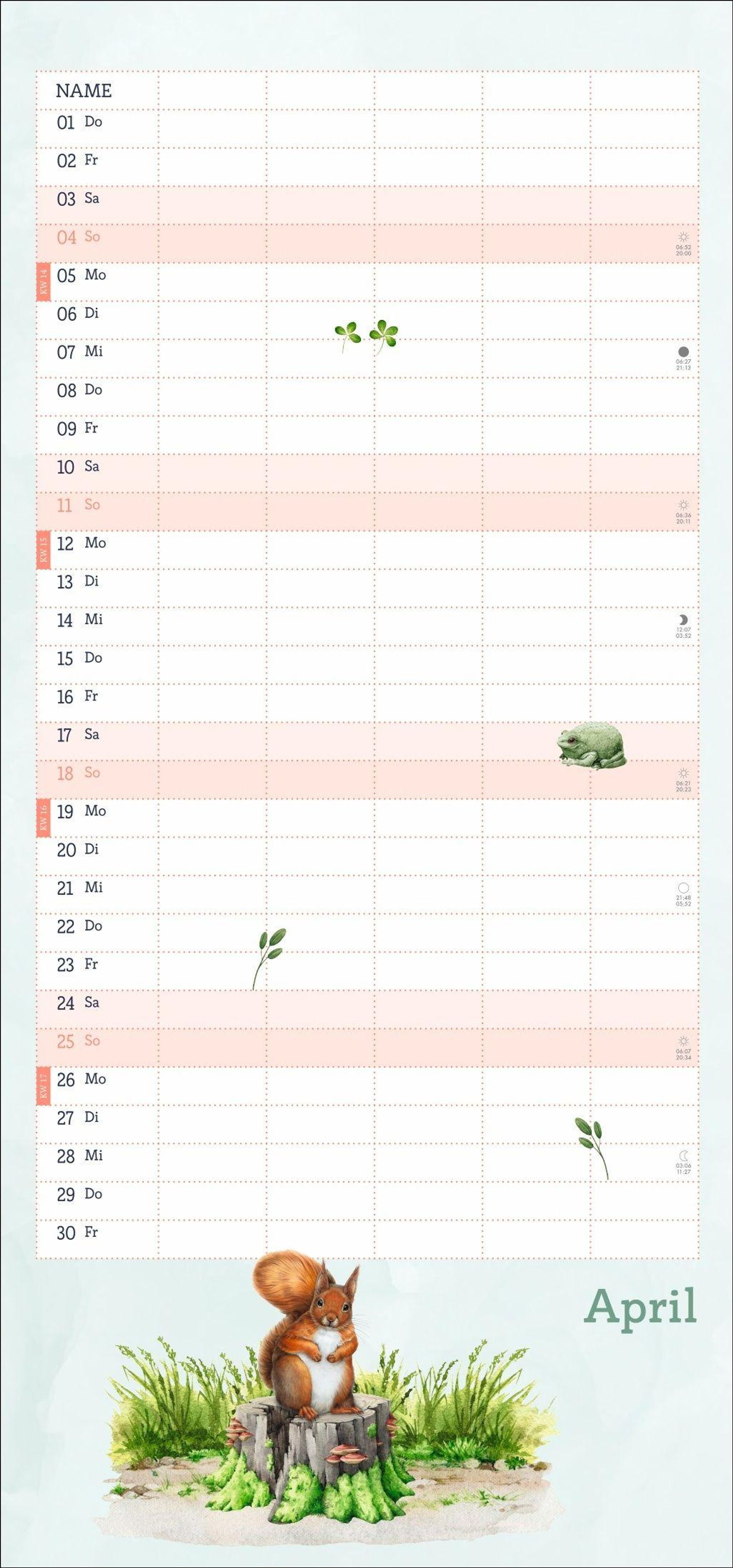 Ein Blick in die Fauna des Waldes im Wandel der Jahreszeiten: Terminkalender im kompakten 21 x 45 cm Hochformat