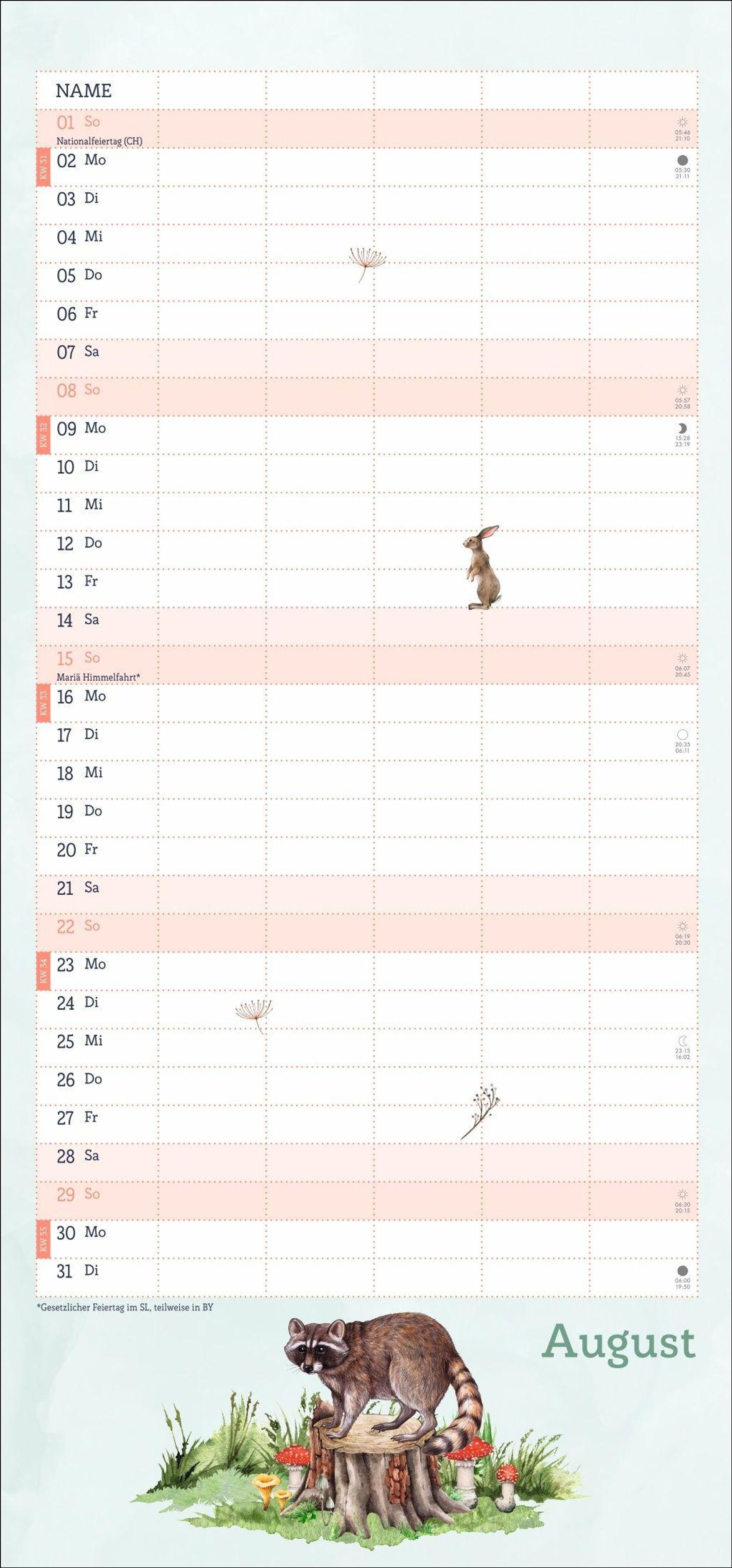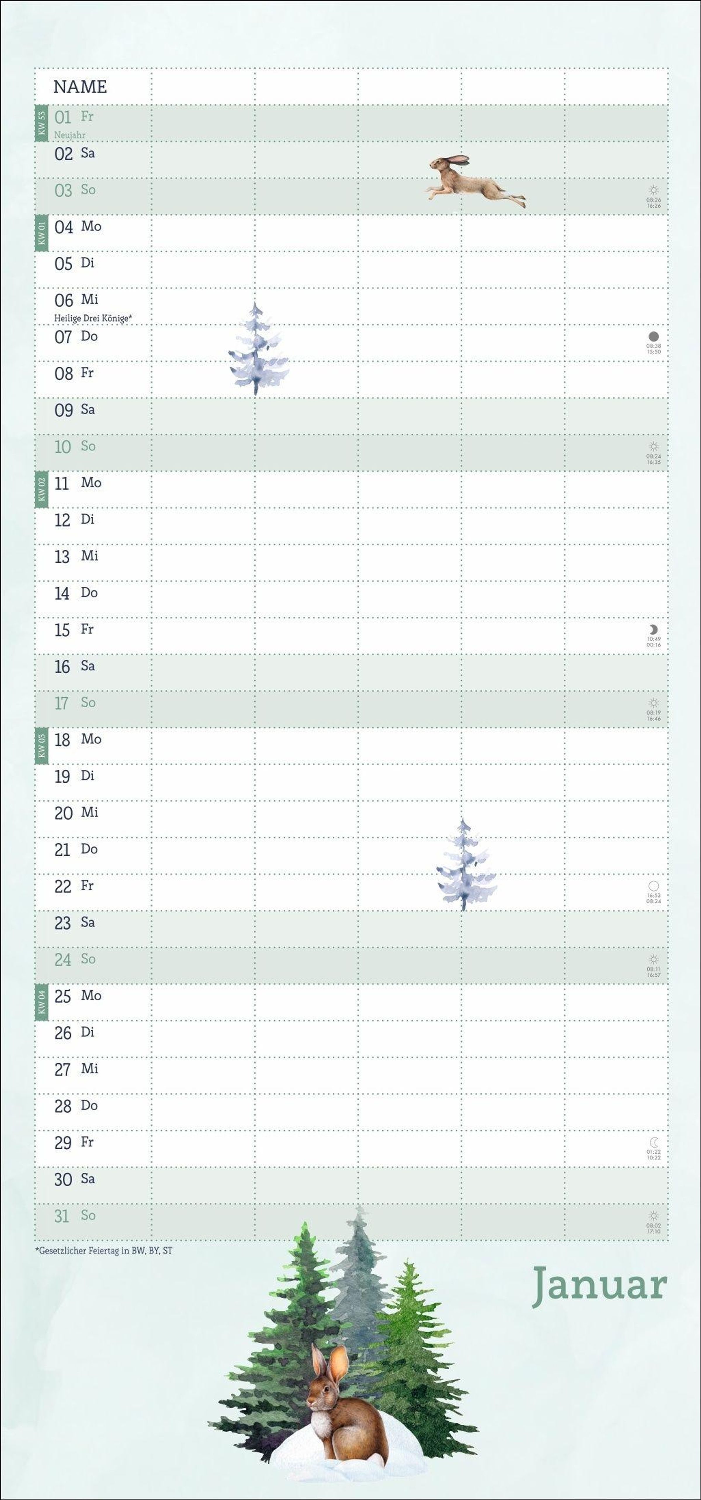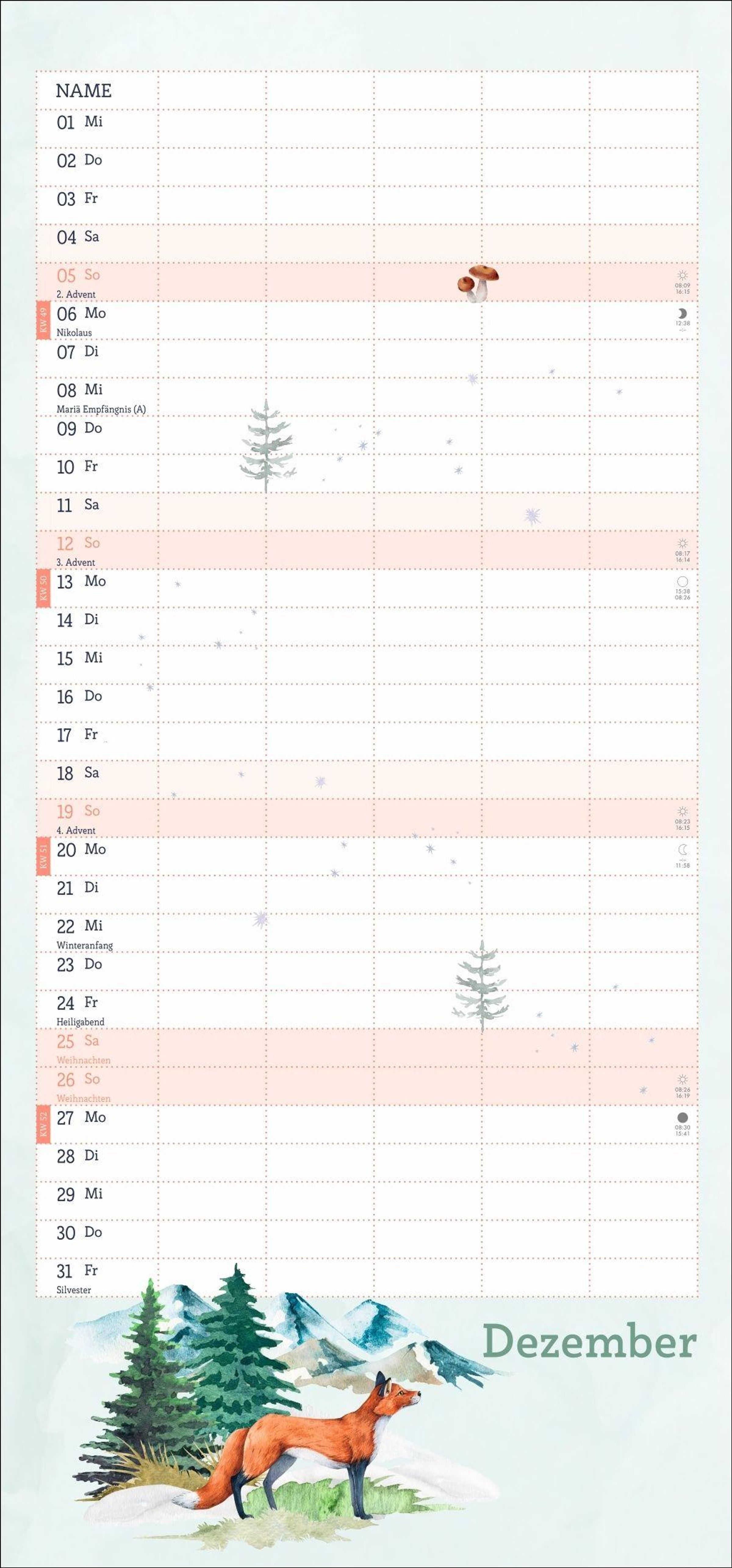 Ein Blick in die Fauna des Waldes im Wandel der Jahreszeiten: Terminkalender im kompakten 21 x 45 cm Hochformat