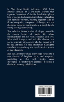 In "The Great Family Adventure: With Extra Drama," embark on a whimsical journey that captures the essence of familial bonds through the lens of poetry. Each verse dances between laughter and heartfelt emotion, weaving together tales of shared escapades, unexpected challenges, and the cherished moments that transform a simple family outing into a grand odyssey. This collection invites readers of all ages to revel in the chaotic beauty of family life, where misadventures are met with resilience and love. With vivid imagery and relatable themes, the poems resonate with anyone who has experienced the joys and trials of a close-knit family, making the mundane extraordinary and the dramatic a source of shared growth. Join the adventure where every page turns into a new chapter of laughter, tears, and surprises, reminding us that with family, every experience-no matter how dramatic-becomes a cherished memory to hold close.