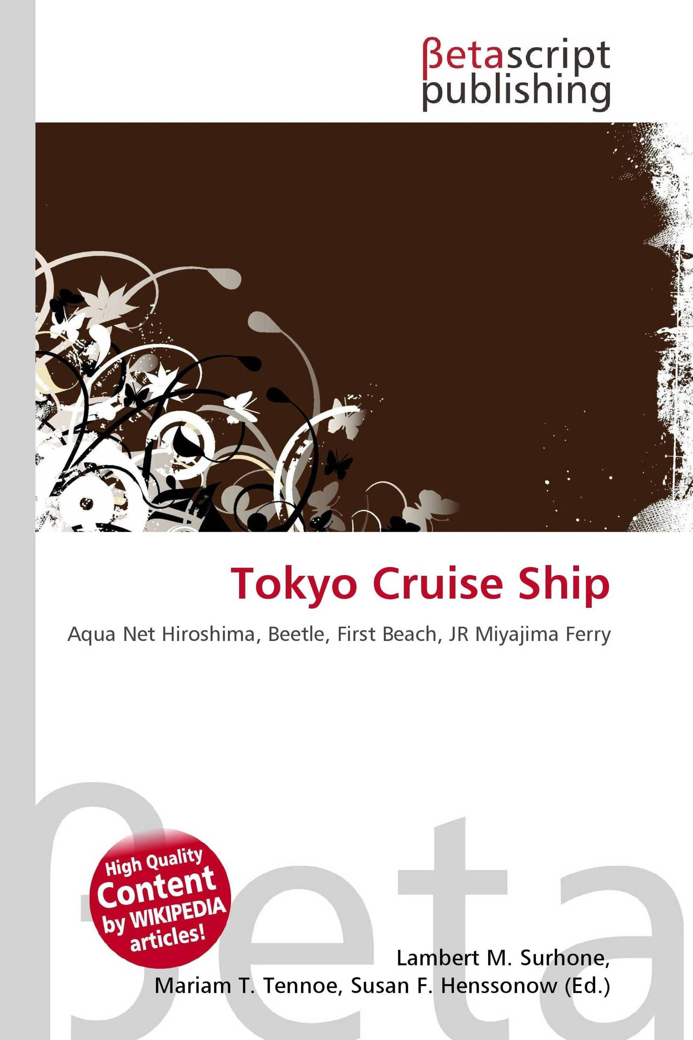 Please note that the content of this book primarily consists of articles available from Wikipedia or other free sources online. The Tokyo Cruise Ship ( Tky-to Kank Kisen, "Tokyo Metropolis Sightseeing Ship") is a water bus operator in Tokyo. Unlike Tokyo Metropolitan Park Associartion (Tokyo Mizube Line), another water bus operator in Tokyo, Tokyo Cruise Ship is a private company. The services include public lines listed below, as well as event cruises and chartered ships. The Tokyo Mizube Line ( Tky Mizube Rain?, "Tokyo Waterfront Line") is a water bus service in Tokyo. A public company called Tokyo Metropolitan Park Association ( Tky-to Ken Kykai ) operates the lines on Tokyo riverside. The services include public lines listed below, as well as event cruises and chartered ships. All lines close on Monday (or the next day if Monday is a holiday), and between December 29 and January 3.