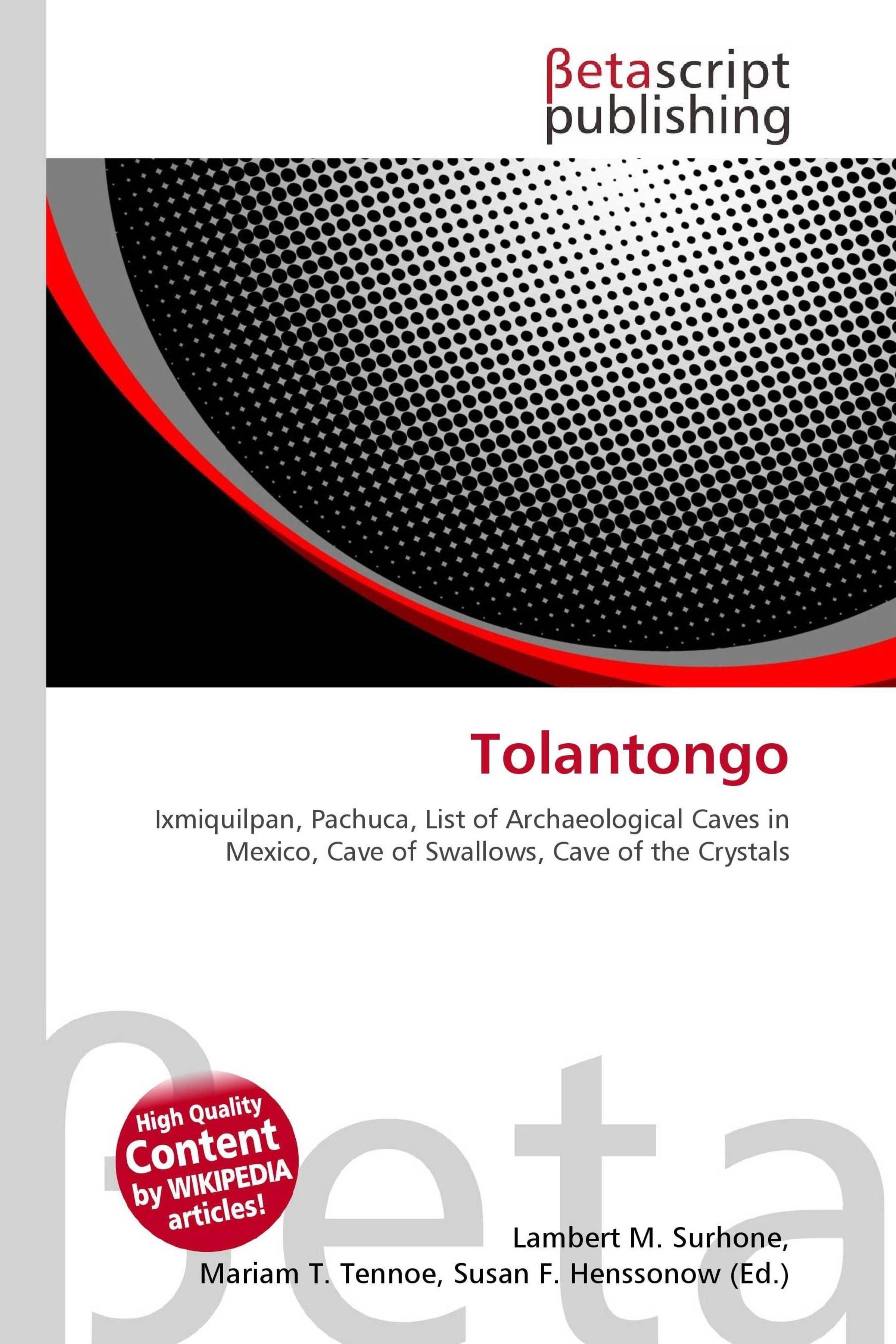 Please note that the content of this book primarily consists of articles available from Wikipedia or other free sources online. Tolantongo is a box canyon and resort located 17 kilometers from Ixmiquilpan on Route 27 in the Mezquital Valley, State of Hidalgo in Mexico, It is about 1.5 hours northeast of Pachuca and 198 km or three-to-four hours northeast of Mexico City. The closest village to the resort is called El Cardenal and it is part of the El Cardenal municipality. The resort is made up of three hotel complexes and heated pools near the bottom of a steep box canyon that has walls as many as 500 meters high. Its main attraction is two grottos at the canyon's closed end, out of which flows a small volcanically-heated river which follows the canyon floor. The large grotto chamber is about half the size of a tennis court with a ceiling of up to ten meters. Above the grotto is a "tunnel", a small cavern 15 meters deep in which warm water showers those who venture inside. Around these two openings, warm waterfalls flow down the steep canyon walls Here visitors can practice hiking, rappelling and spelunking.