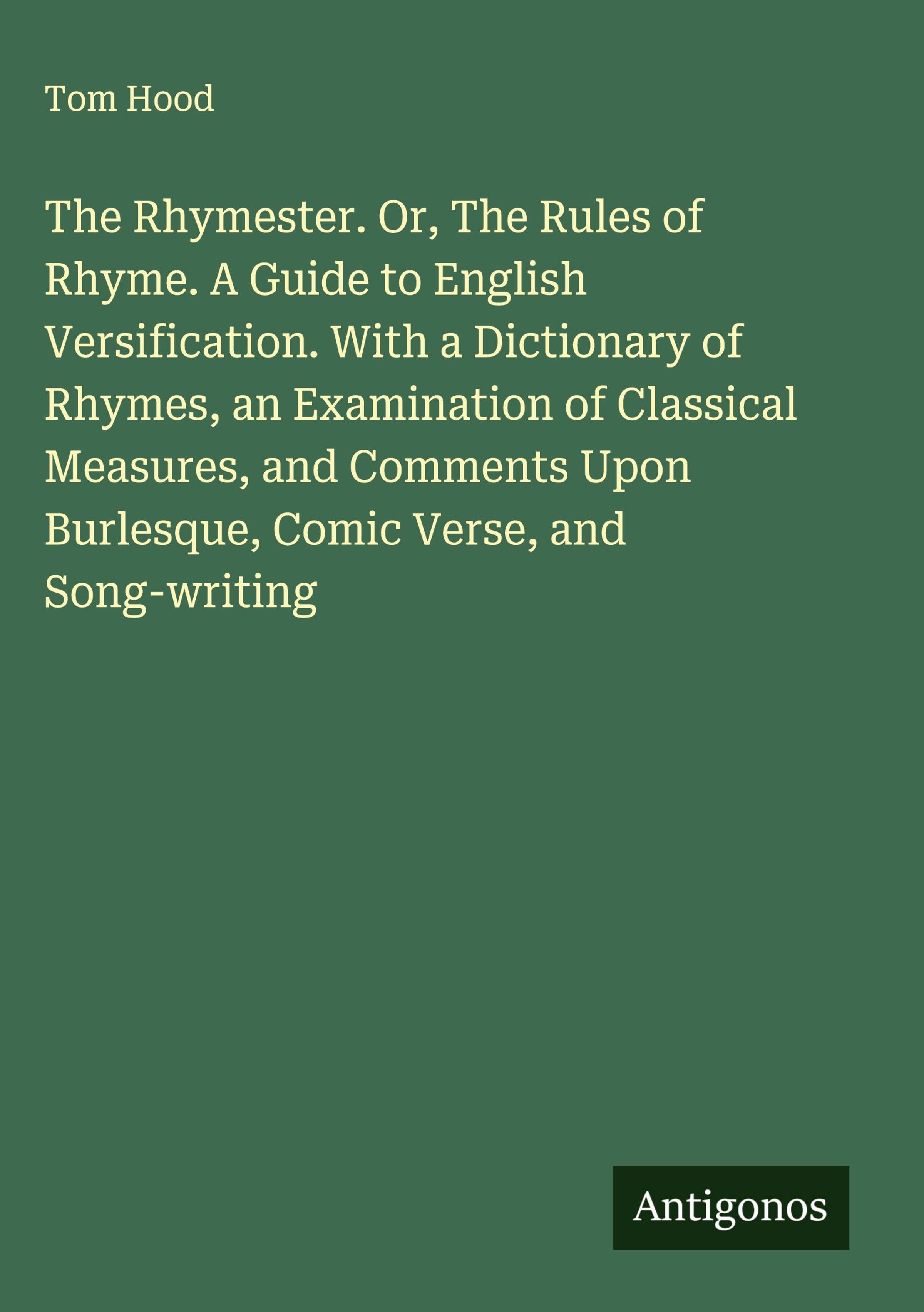 The Rhymester. Or, The Rules of Rhyme. A Guide to English Versification. With a Dictionary of Rhymes, an Examination of Classical Measures, and Comments Upon Burlesque, Comic Verse, and Song-writing