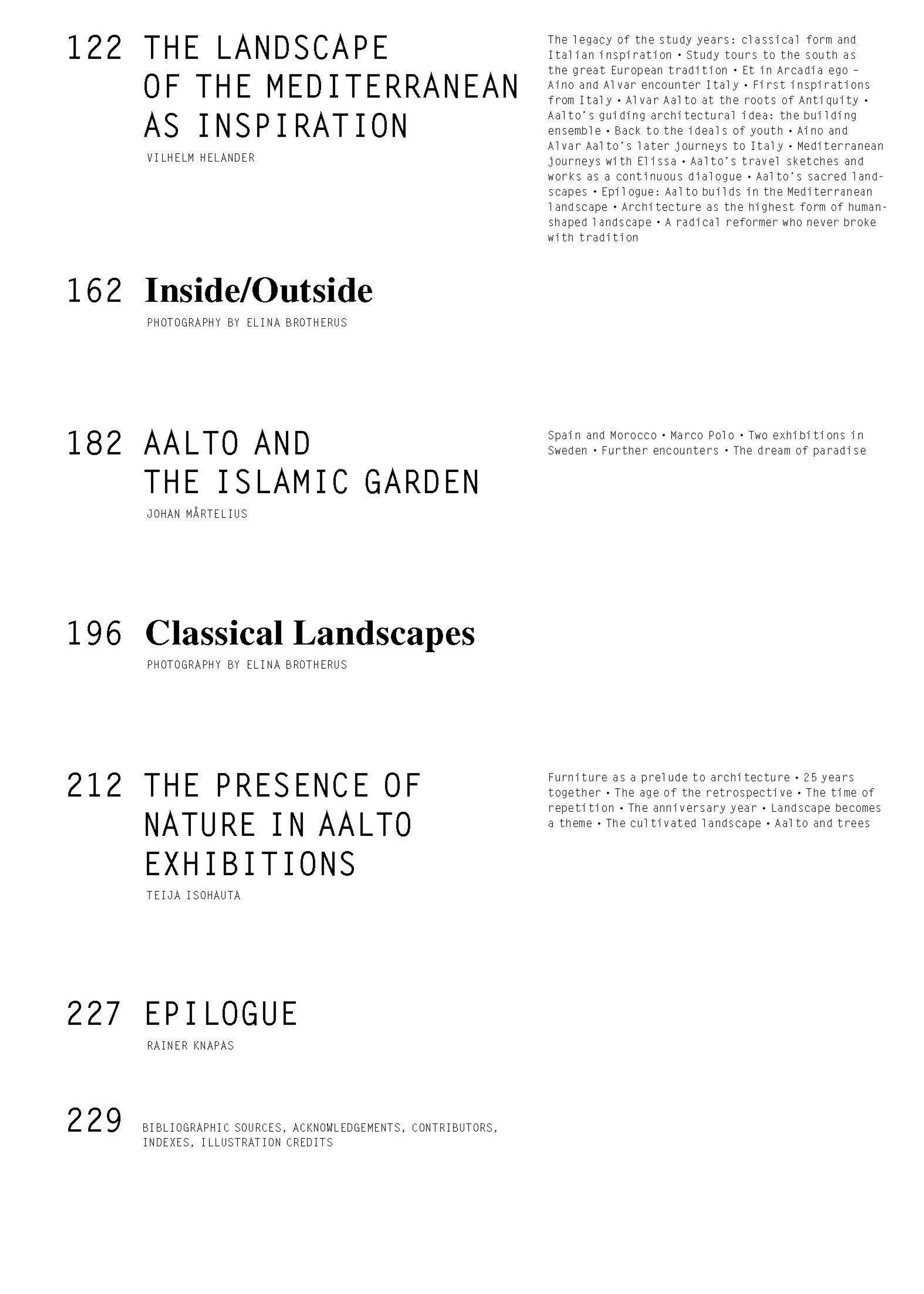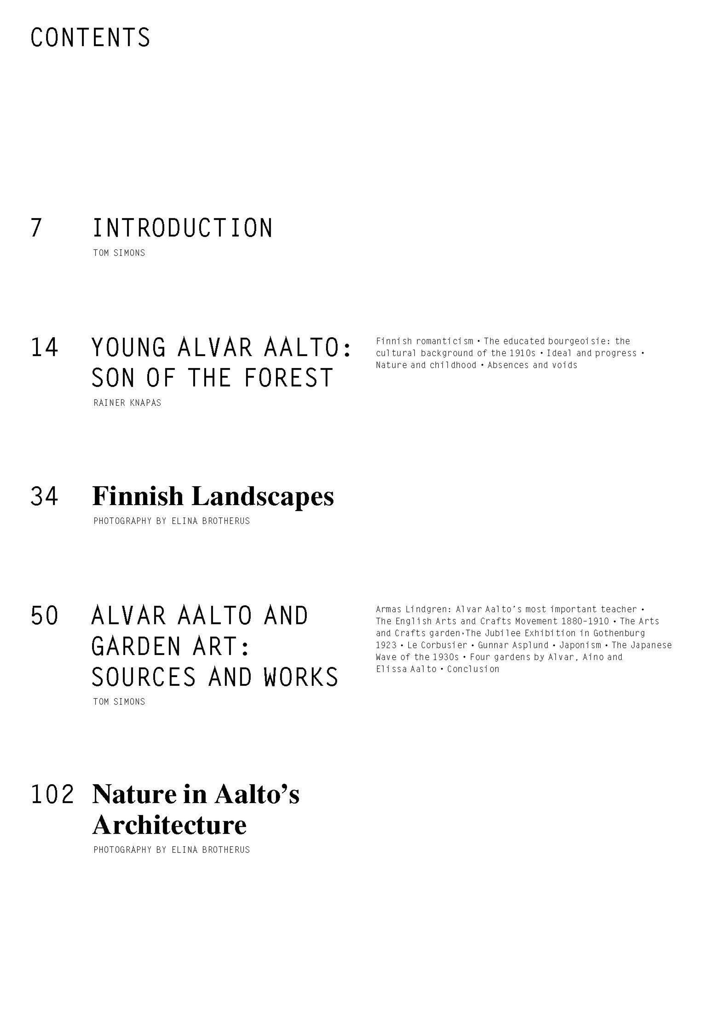 Alvar Aaltos Werk wurzelt tief in der Natur - in den stillen Wäldern Finnlands ebenso wie in den Landschaften des Mittelmeers und des Orients, die er auf seinen Reisen entdeckte. Dieses Buch folgt dem roten Faden Natur in seinem Schaffen und öffnet neue Perspektiven auf den Architekten, der auch als Landschaftsgestalter wirkte, etwa mit dem Garten der Villa Mairea. Reich bebilderte Beiträge zeigen, wie Aaltos Architektur mit Gärten, Wäldern und Licht verschmilzt, und wie mediterrane Eindrücke auf Elissa, Aino und Alvar Aalto wirkten. Die Fotografien von Elina Brotherus - teils eigens für dieses Werk geschaffen - lassen das Ineinandergreifen von Innen- und Außenraum sichtbar werden und bringen den Zauber finnischer Landschaft unmittelbar zur Geltung.