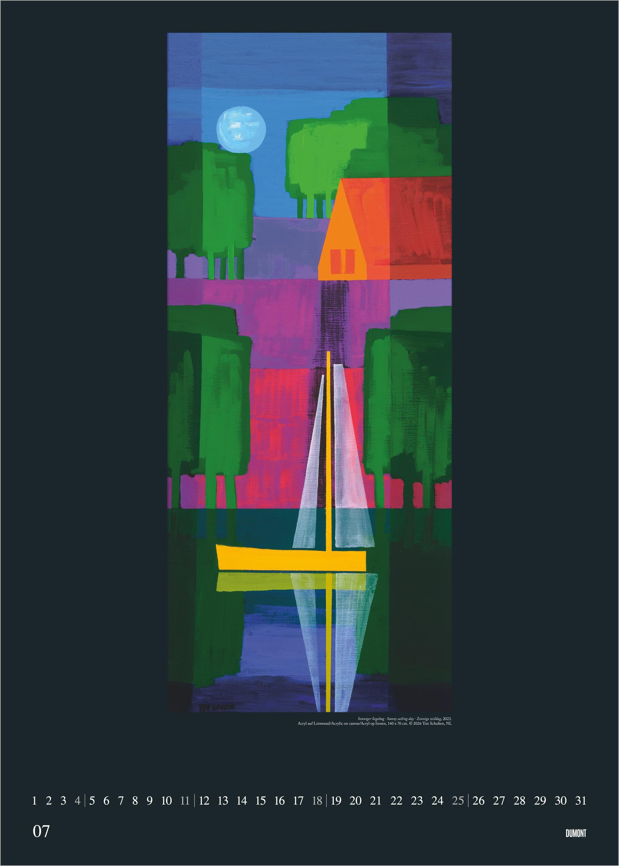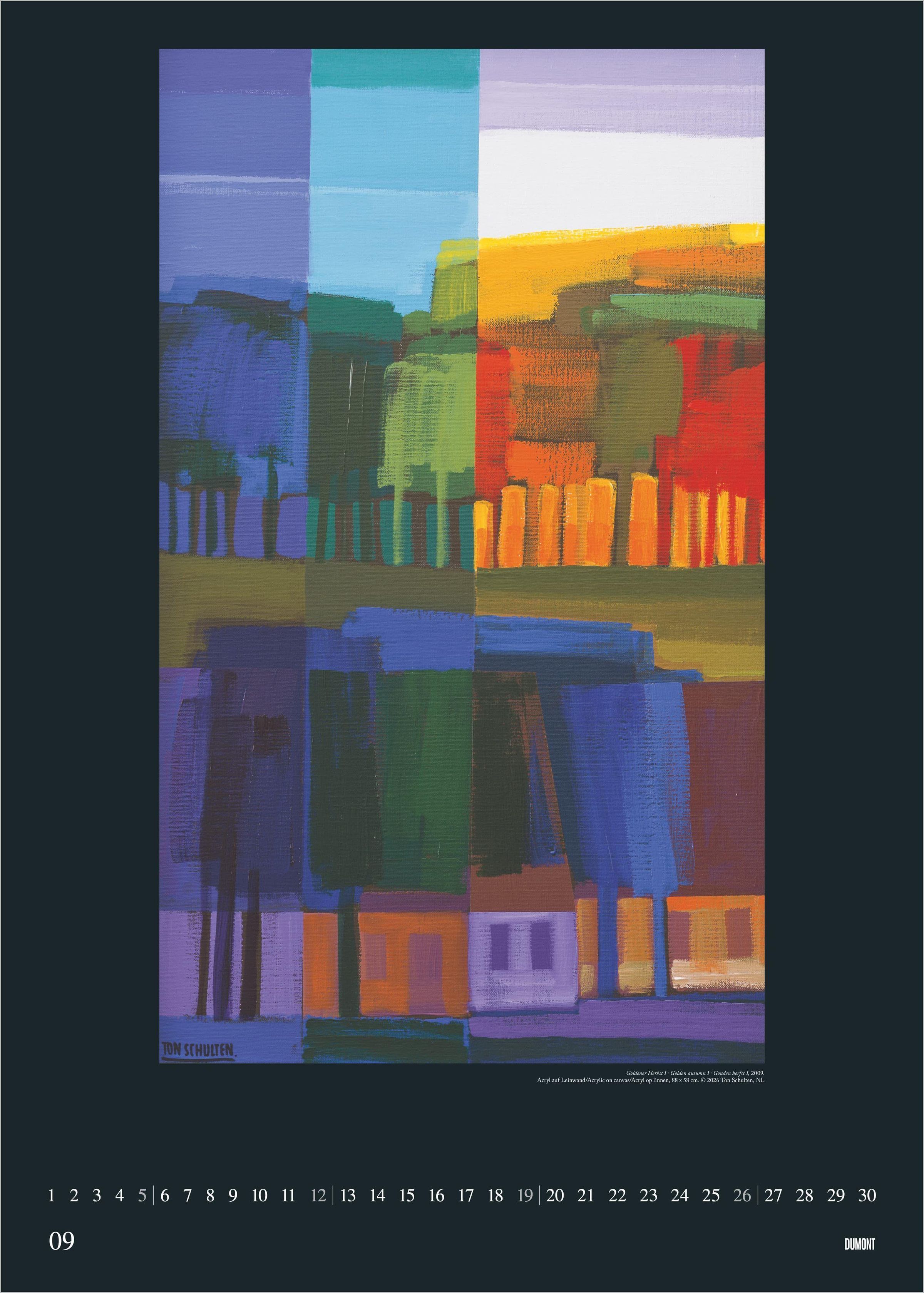 Erleben Sie die faszinierende Farbwelt des niederländischen Künstlers Ton Schulten: Der DUMONT Kunstkalender 2027 präsentiert 12 exklusive Gemälde in einem eindrucksvollen Poster-Format. Schulten gilt als Meister der abstrakten Malerei und begeistert mit einzigartigen Landschaftsmosaiken, die ausschließlich durch Farben und Formen entstehen. Seine Werke verleihen jedem Raum eine besondere, atmosphärische Tiefe.