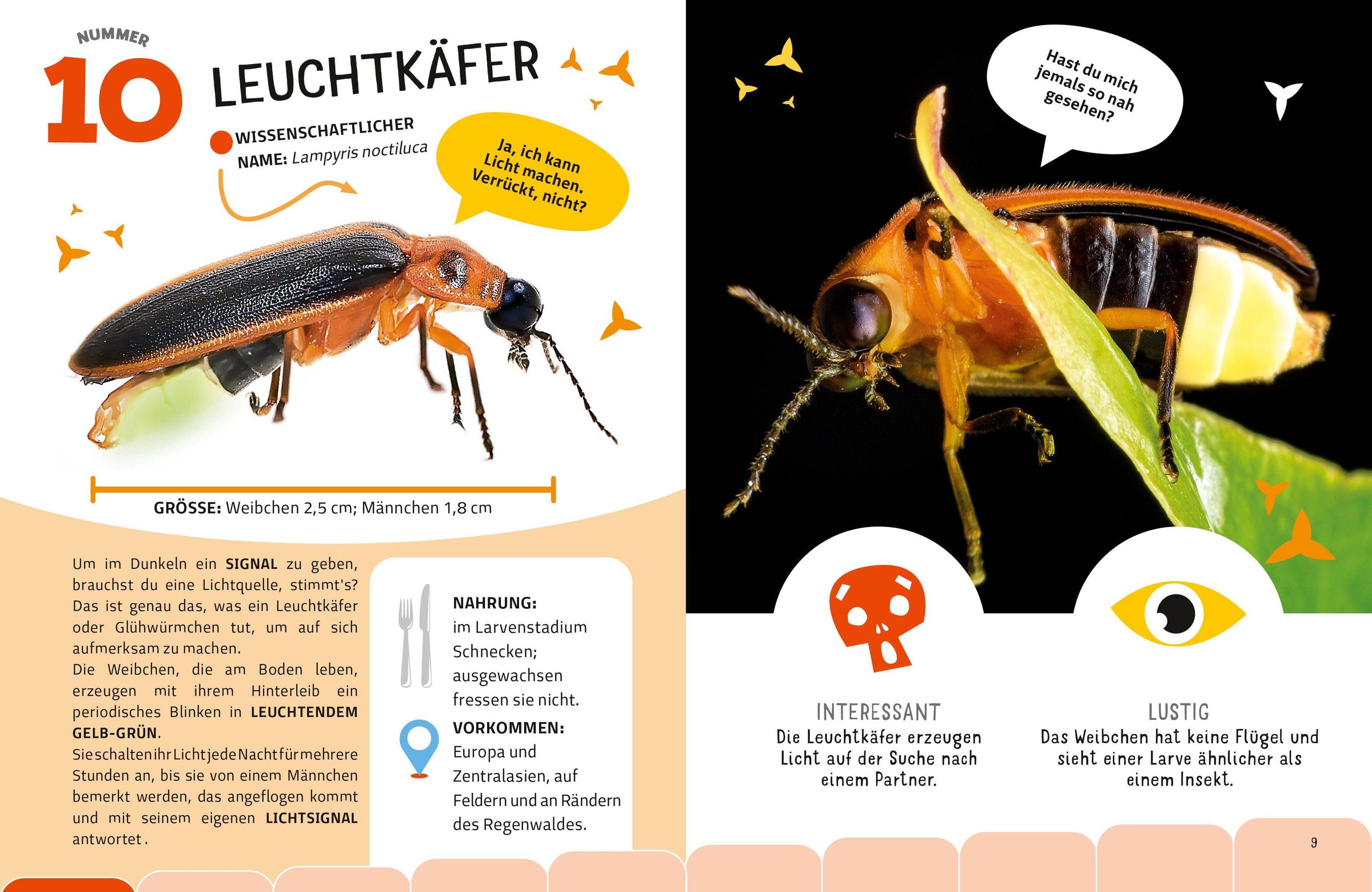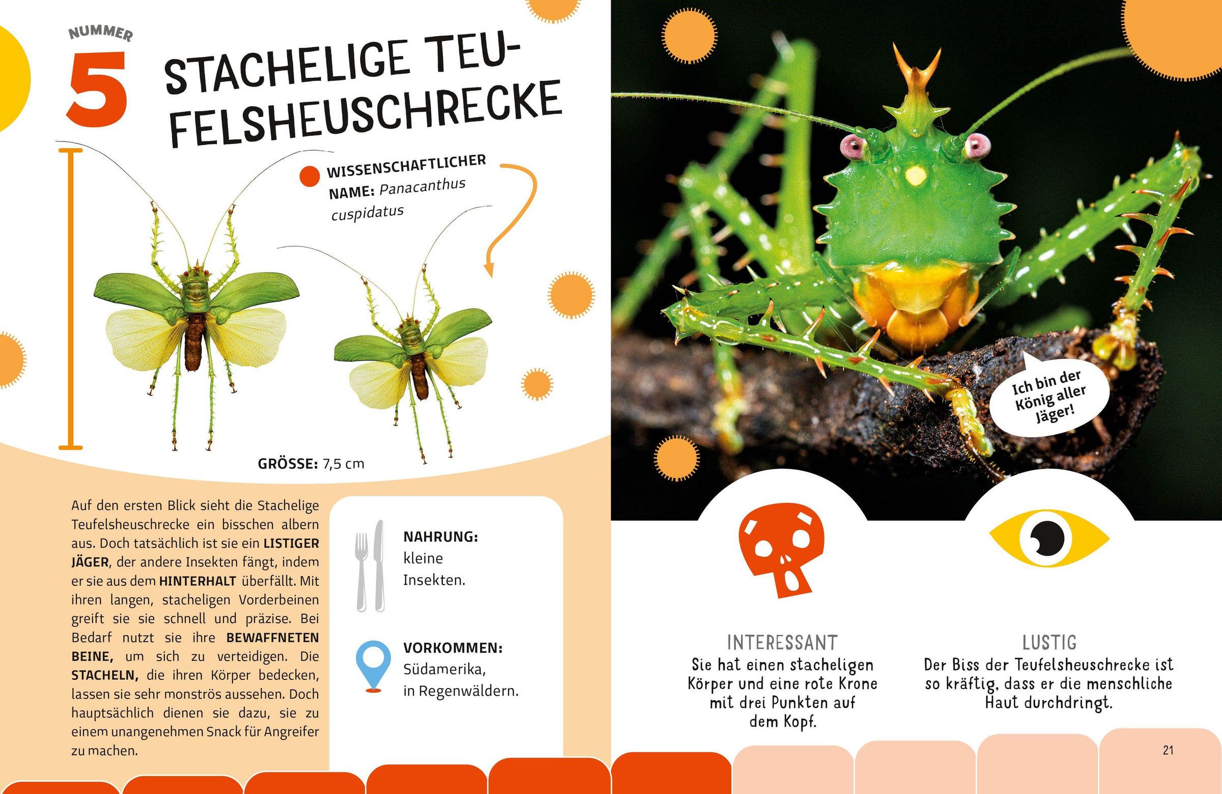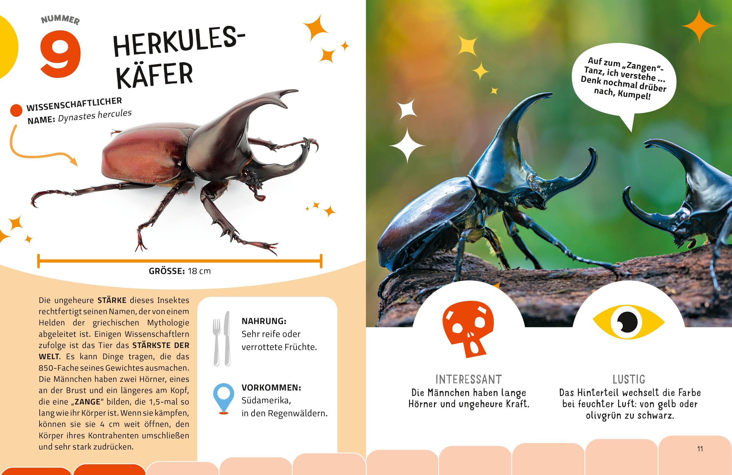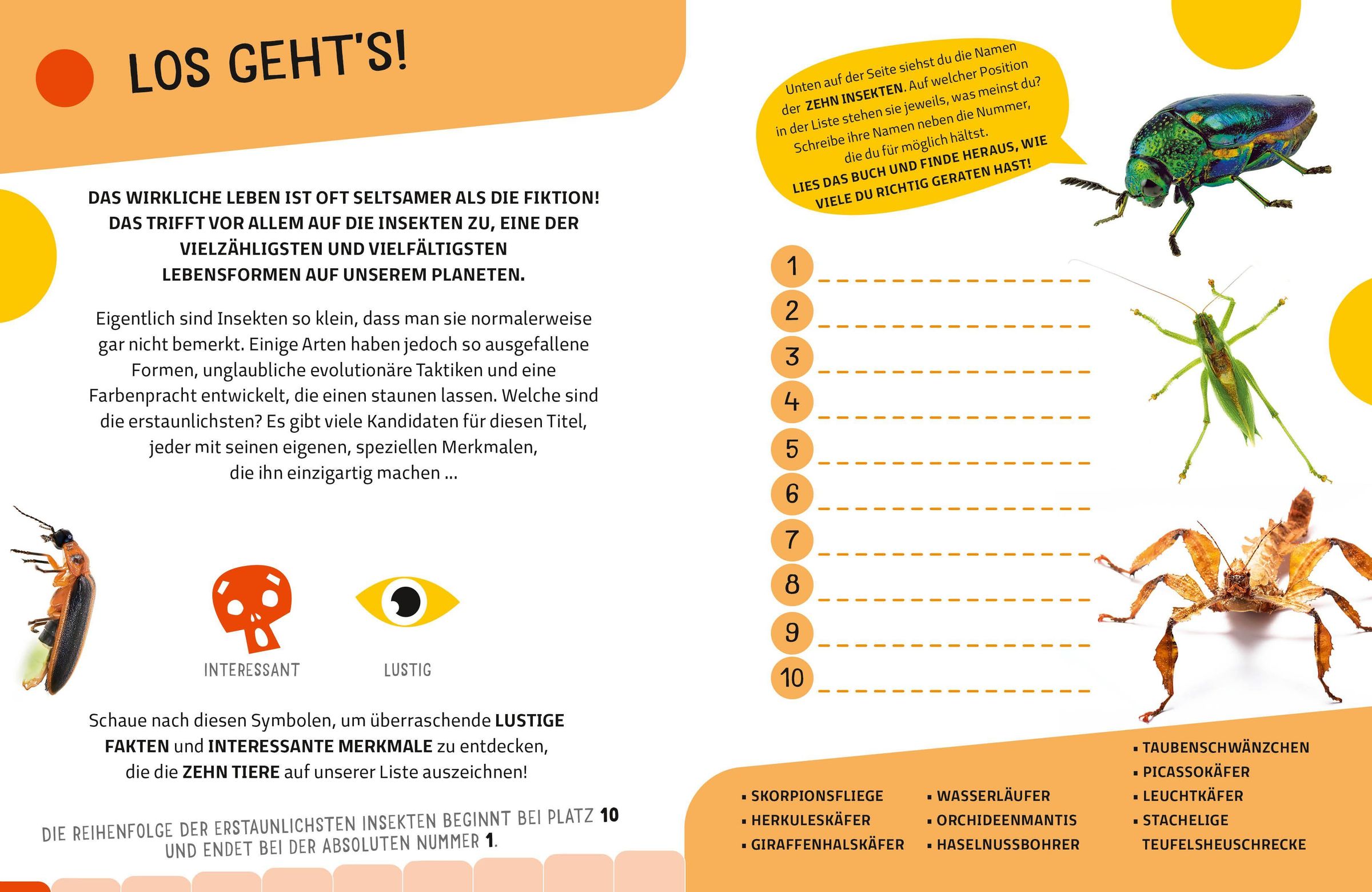 Die Fortsetzung der beliebten Top-Ten-Kinderserie präsentiert faszinierende Einblicke in einige der ungewöhnlichsten Lebewesen und Naturphänomene der Erde. In Die seltsamsten Insekten werden außergewöhnliche Kreaturen vorgestellt - oder hast du schon von einem Falter namens Taubenschwänzchen gehört? In dem Band Die gefährlichsten Dinosaurier erfährst du beispielsweise, dass der Spinosaurus schwimmen kann und am liebsten Fische jagt - richtig spannend! Und in Die explosivsten Vulkane lernst du den Krakatau kennen, der 1883 eine der heftigsten Explosionen aller Zeiten ausgelöst hat.