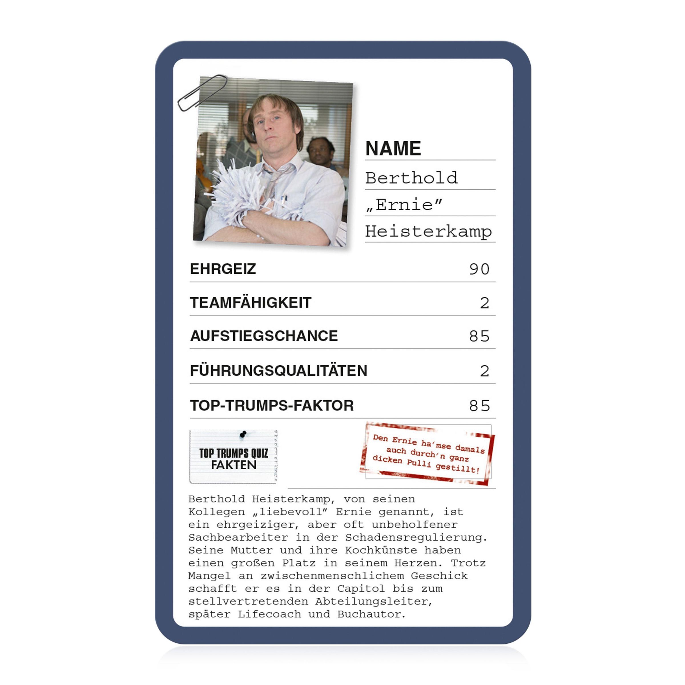 Mit Stromberg Top Trumps Collectables holst du dir den unverwechselbaren Humor der Capitol-Versicherung direkt an den Spieltisch. Vergleiche Stromberg, Berthold und die anderen Kultfiguren der Serie in Kategorien wie Ehrgeiz, Teamfähigkeit und Führungsqualitäten und finde heraus, wer im Büroalltag wirklich die Nase vorn hat.
