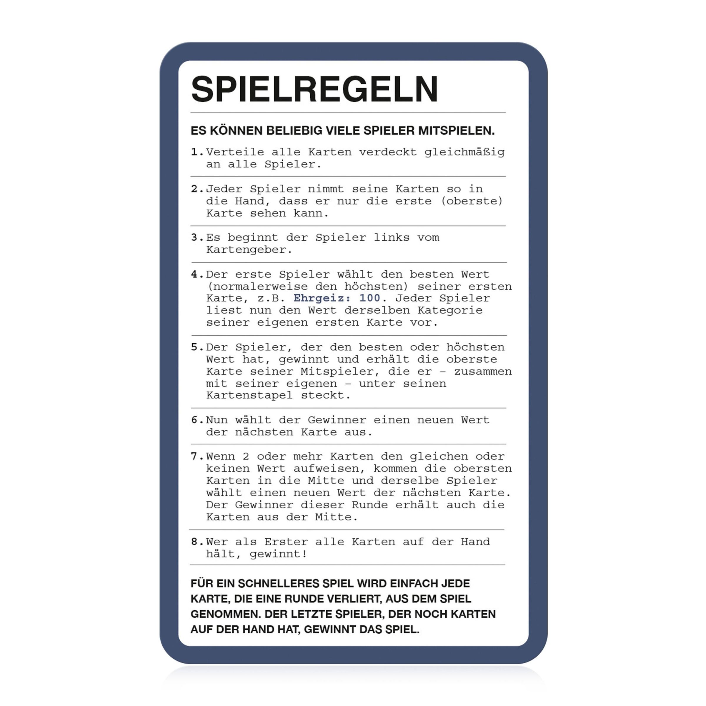 Das schnelle, unterhaltsame Kartenspiel sorgt überall für Spaß, egal ob unterwegs, in der Mittagspause oder beim Spieleabend mit Freunden. Einfach mischen, austeilen und losspielen, wer die besten Werte zieht, wird zum Top Trump!