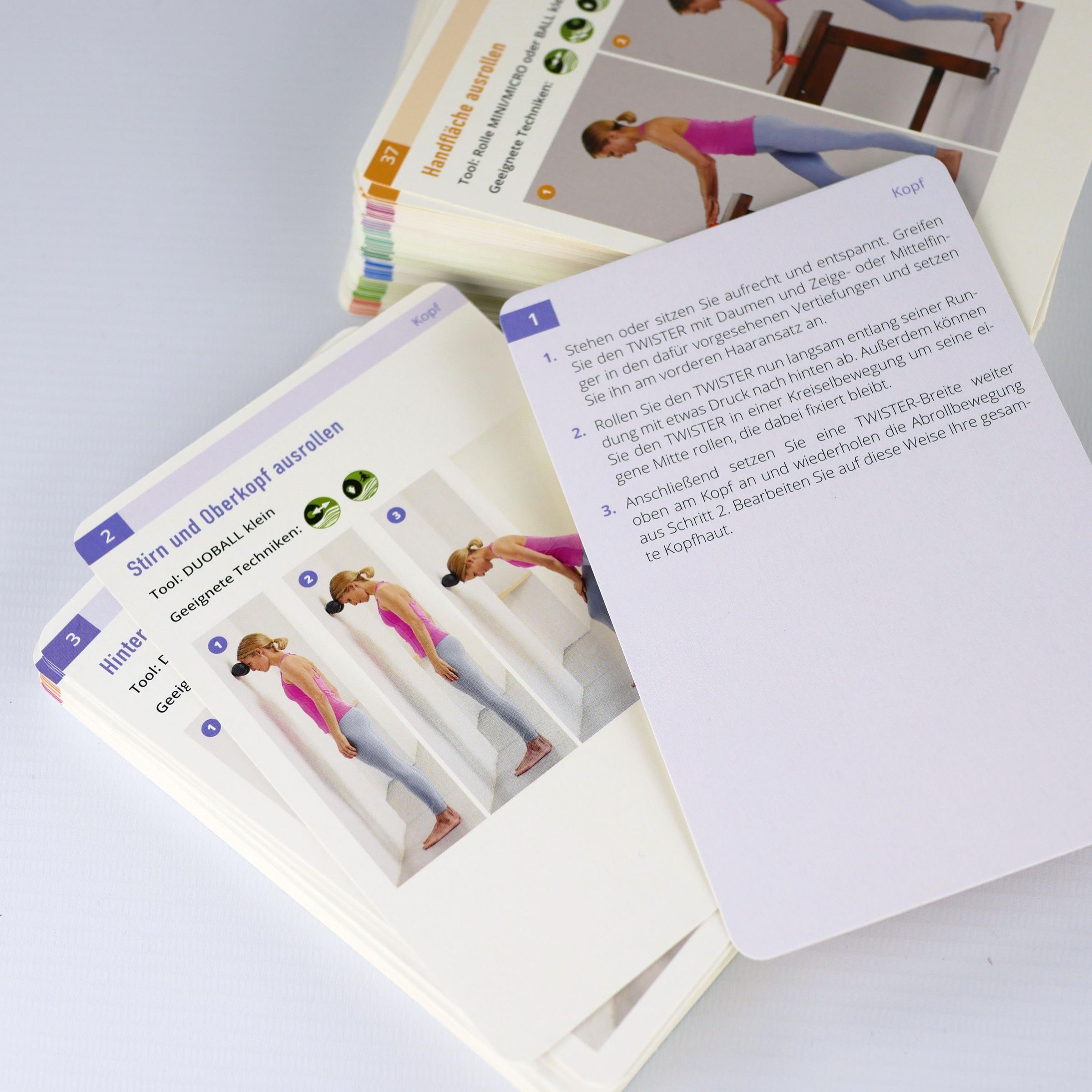 100 Übungskarten: Suchen Sie aus den Karten, die Schritt für Schritt die Übungen und Techniken der Selbstmassage zeigen, die passenden heraus, um Beschwerden von Kopf bis Fuß gezielt selbst zu behandeln. So gehören Ihre Schmerzen schnell der Vergangenheit an!