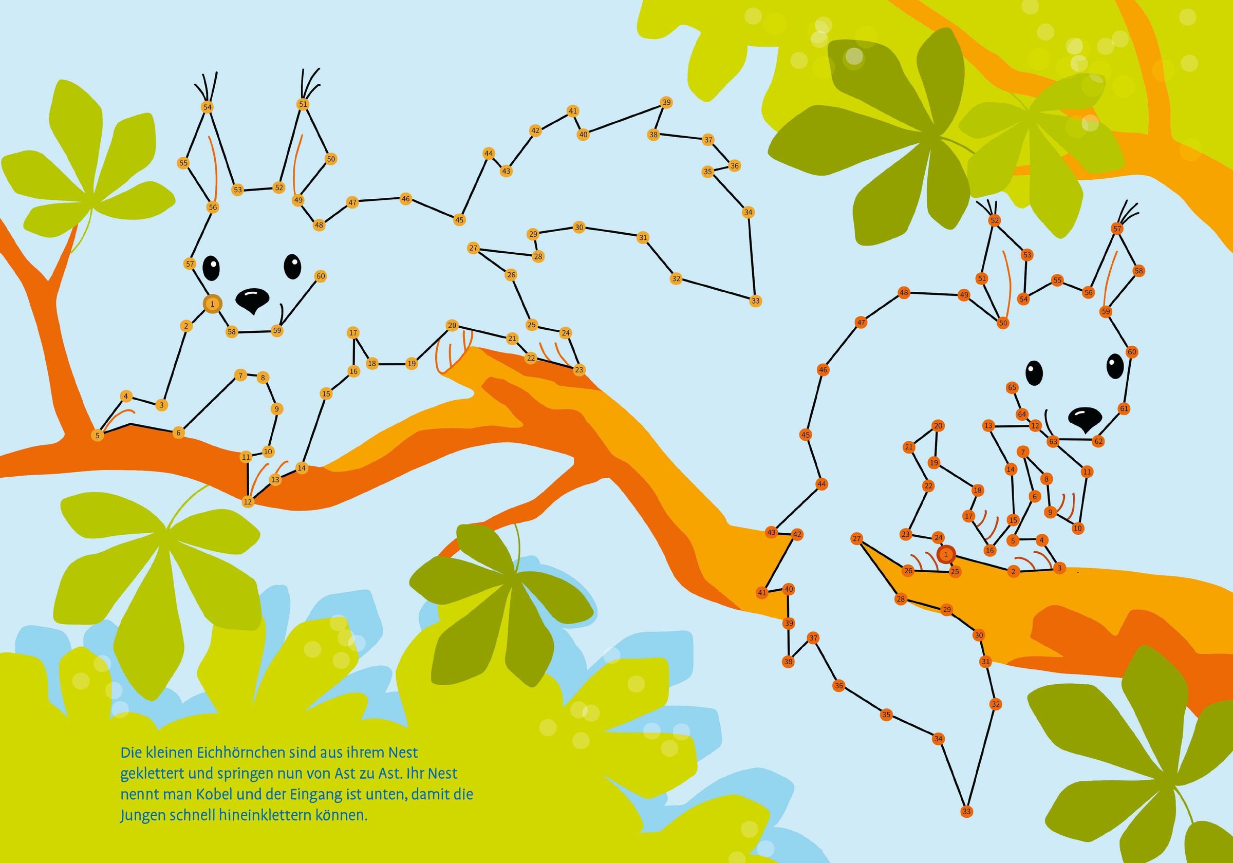 Total bunt von Punkt zu Punkt. Tierkinder. Von 1 bis 100