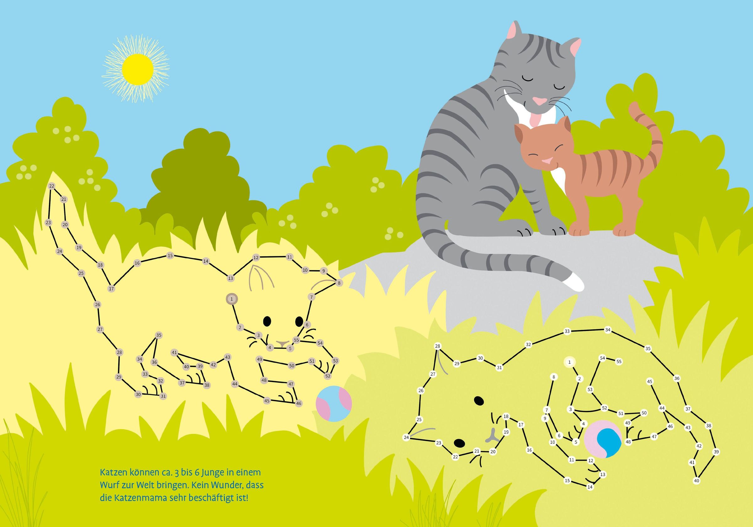Ganz spielerisch das Zählen lernen! Durch das Verbinden der Zahlen von 1 bis 100 werden die schönen Szenen im Heft fertiggestellt. Niedliche Tierkinder beim Spielen, Schlafen oder Fressen liefern lebdige Motive. Zu jedem Bild gibt es einen kurzen, informativen Text. Das macht Spaß und sorgt für Überraschungen. Ein schönes Mitbringsel oder Geschenk für Kinder ab 7 Jahren.