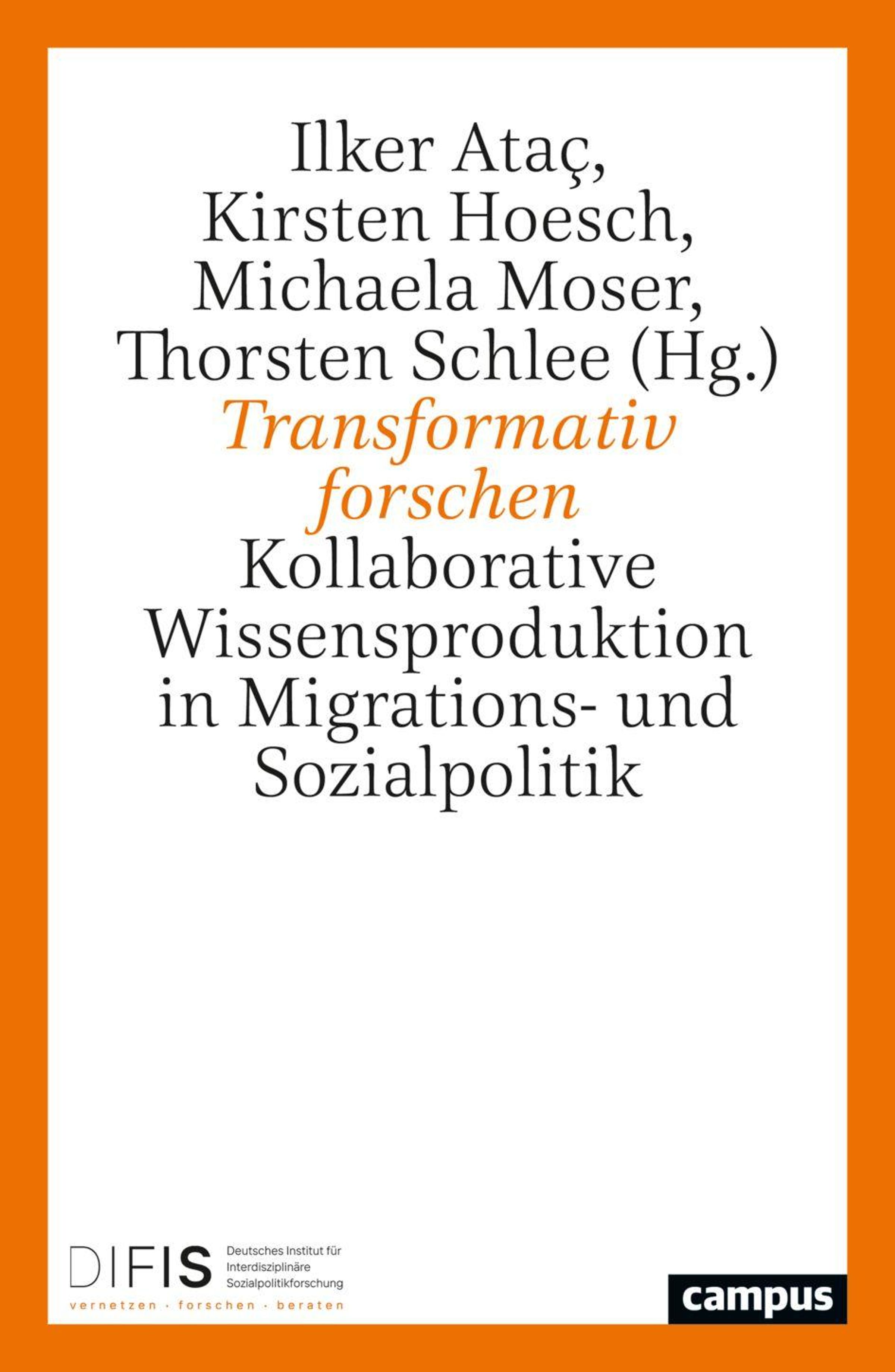 Ilker Ataç, Kirsten Hoesch, Michaela Moser, Thorsten Schlee (Hg.), Transformativ forschen, DIfIS Logo, campus Logo., Buch