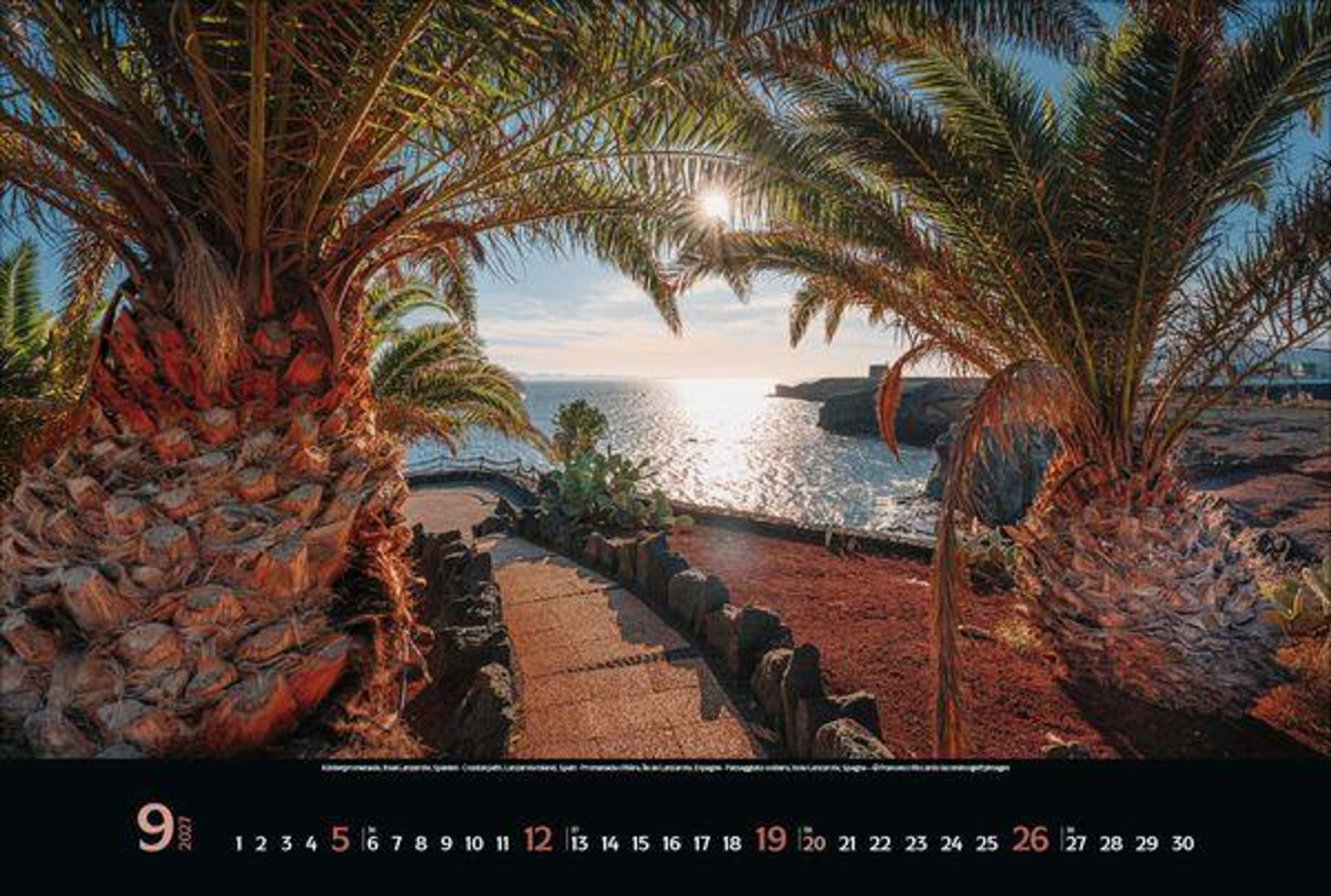 - Großer Foto-Wandkalender mit Bildern von Traumzielen. Edler schwarzer Hintergrund. PhotoArt Panorama Querformat: 58x39 cm.