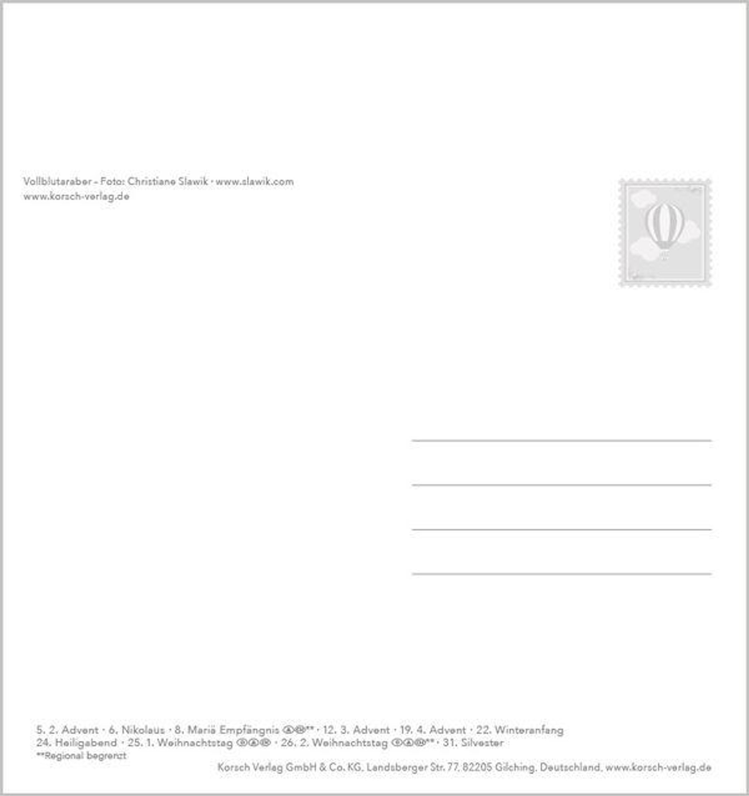 Aufstellbarer Postkartenkalender mit bezaubernden Fotos edler Rassepferde.