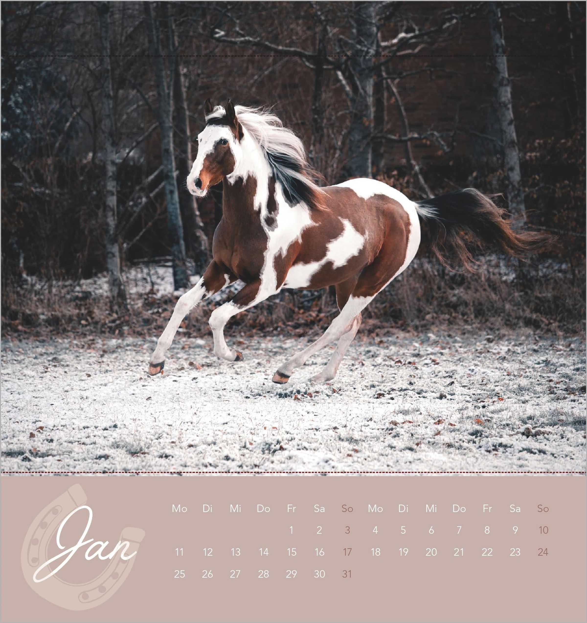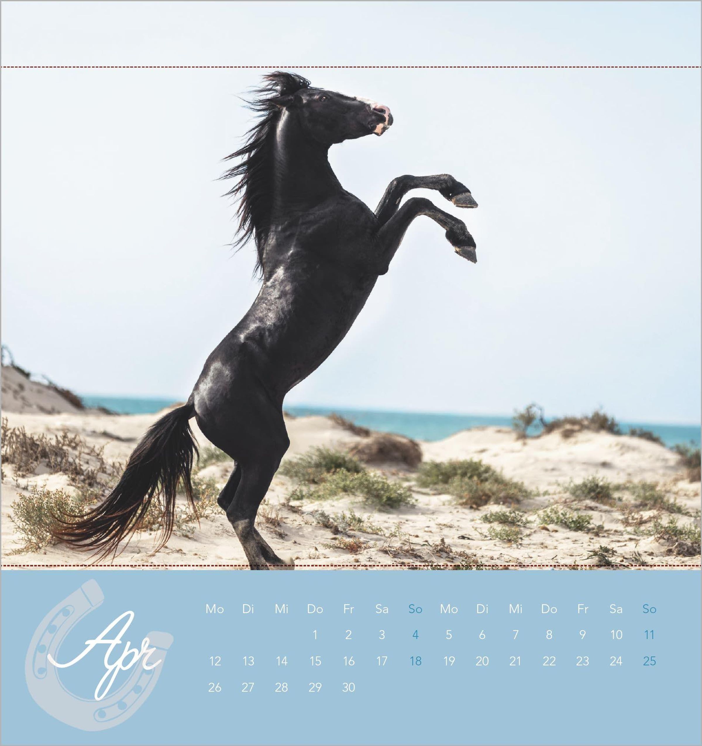 Praktischer Zusatznutzen: Monatskalendarium, alle Blätter einzeln als Postkarte verwendbar -- ideales Geschenk für Pferdeliebhaber