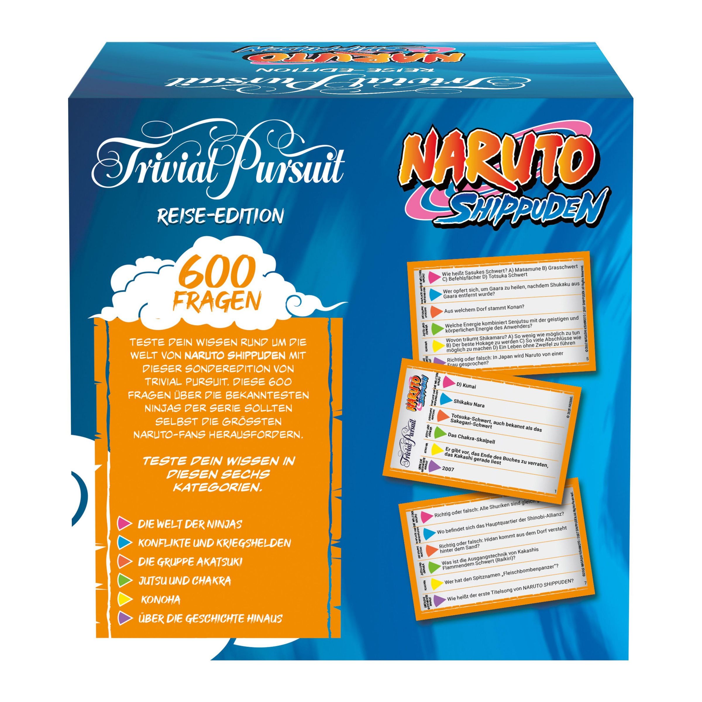 Du kennst die fünf Großmächte, weißt wer oder was Hokage ist und für dich sind die verschiedenen Rangordnungen wie Chunin oder Jonin kein Fremdwort? Im TRIVIAL PURSUIT Naruto wird dein Wissen über die weltweit erfolgreiche Mangareihe in 600 Fragen auf die Probe gestellt. Hast du das Zeug zum echten Ninja?