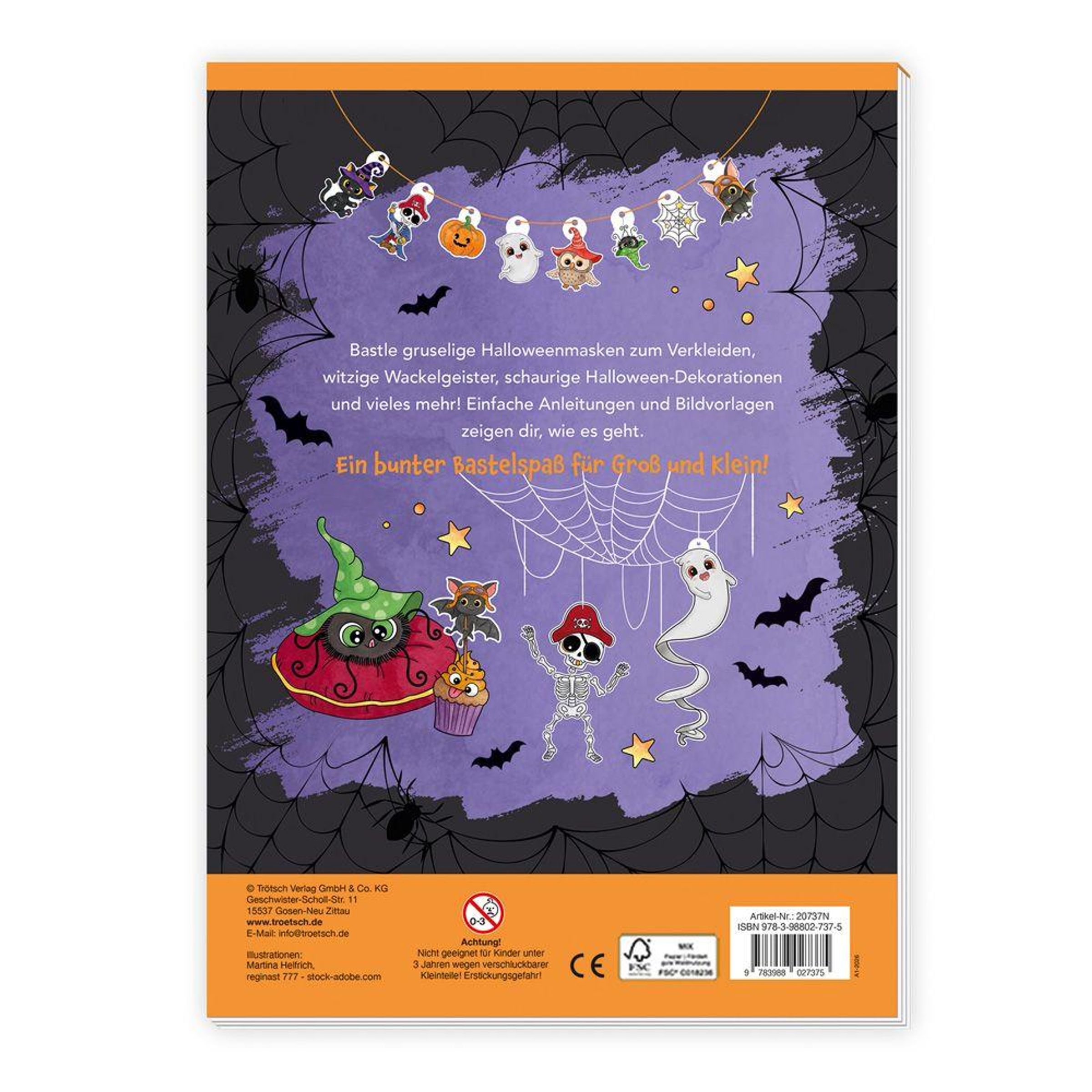 Mit diesem niedlich gruseligen Bastelblock können Halloweenmasken zum Verkleiden, witzige Wackelgeister, schaurige Halloween-Dekorationen und vieles mehr gebastelt werden! Einfache Anleitungen und Bildvorlagen zeigen, wie es geht. Ein bunter Bastelspaß für Groß und Klein!