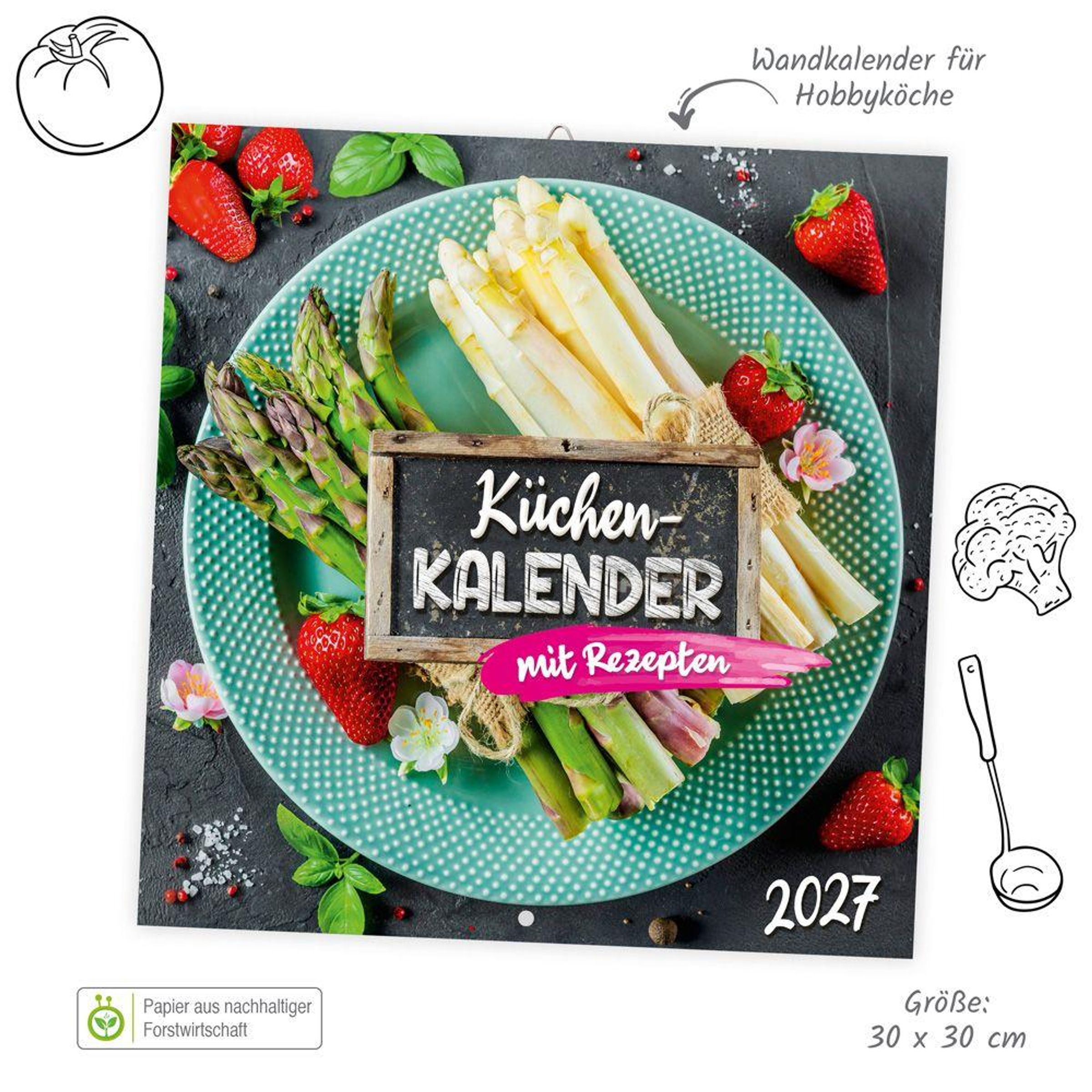 Auf die Löffel, fertig, los! - Dieser Kalender ist ein absolutes Muss in der Küche. Der dekorative Broschurkalender Küche im Format 30 x 30 cm präsentiert jeden Monat leckere Rezepte zum Ausprobieren. Dank des übersichtlichen Kalendariums mit viel Platz für Termine und Erinnerungen hilft der Kalender wunderbar beim Organisieren des Alltags. Das perfekte Geschenk für alle Gourmets!