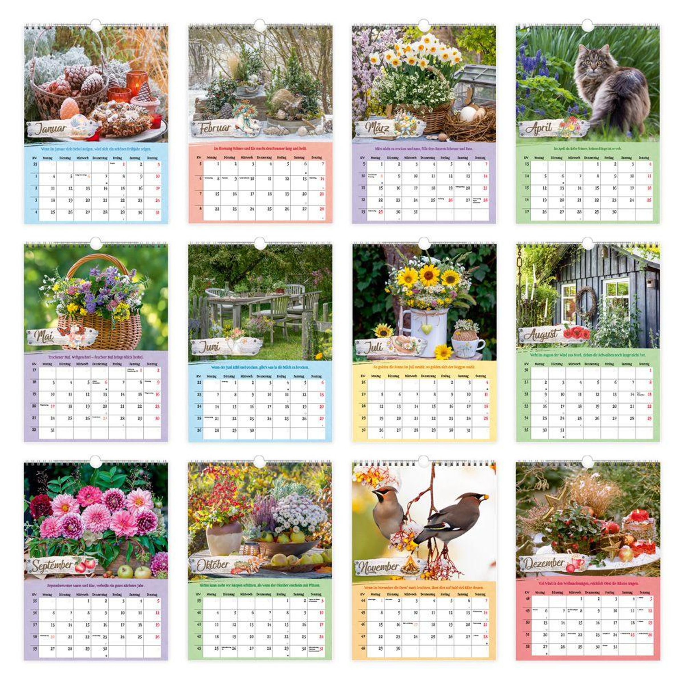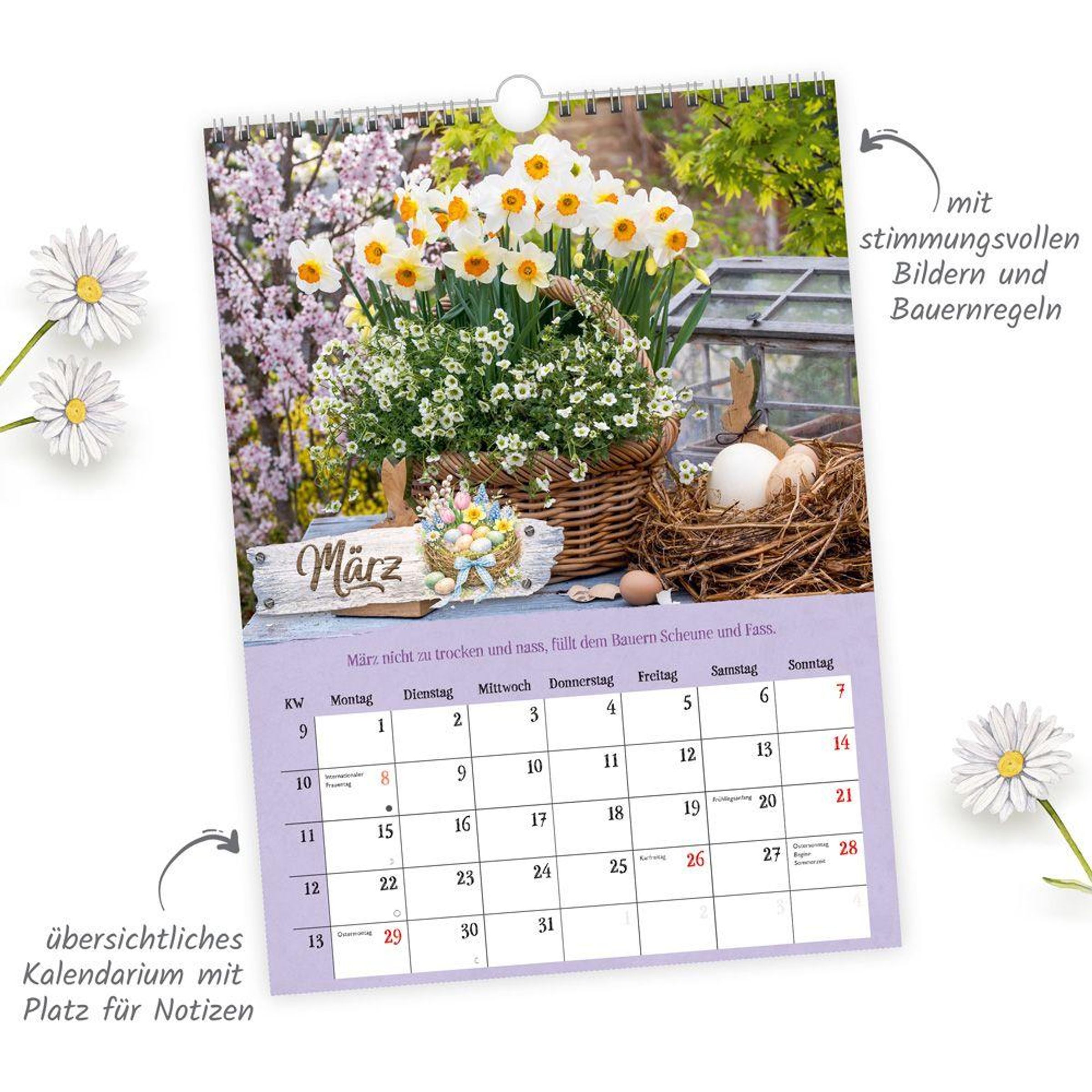 Im Wald, am Feldrand oder im Park um die Ecke - unsere wunderschöne Landschaft umgibt uns zu jeder Zeit und bleibt dabei oft unbemerkt. Der dekorative Landliebe-Kalender im Format 24 x 33 cm mit seinen herrlichen Fotos rückt die Natur in den Fokus und wartet mit zusätzlichen, spannenden Informationen in jedem Monat auf. Dank gut ablesbaren Kalendariums, markierter Feiertage, Mondphasen und Platz für Notizen hilft der Kalender außerdem ganz wunderbar beim Organisieren des Alltags. Das perfekte Geschenk für alle Naturfreunde!