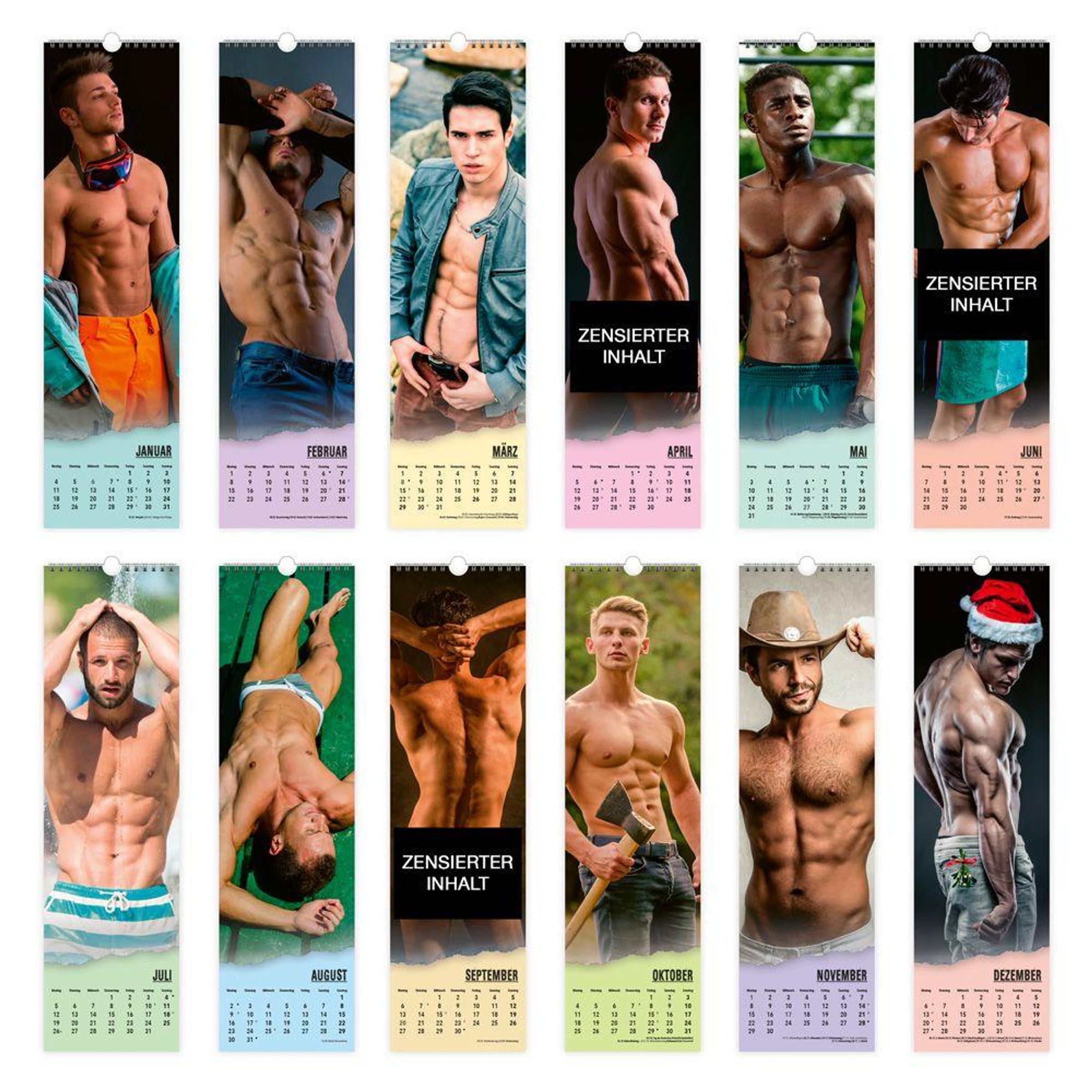 Die ästhetischen Aufnahmen von leicht bekleideten Traummännern in diesem extra großen Streifenkalender zum Aufhängen sind ein erotischer Augenschmaus für jeden Monat.