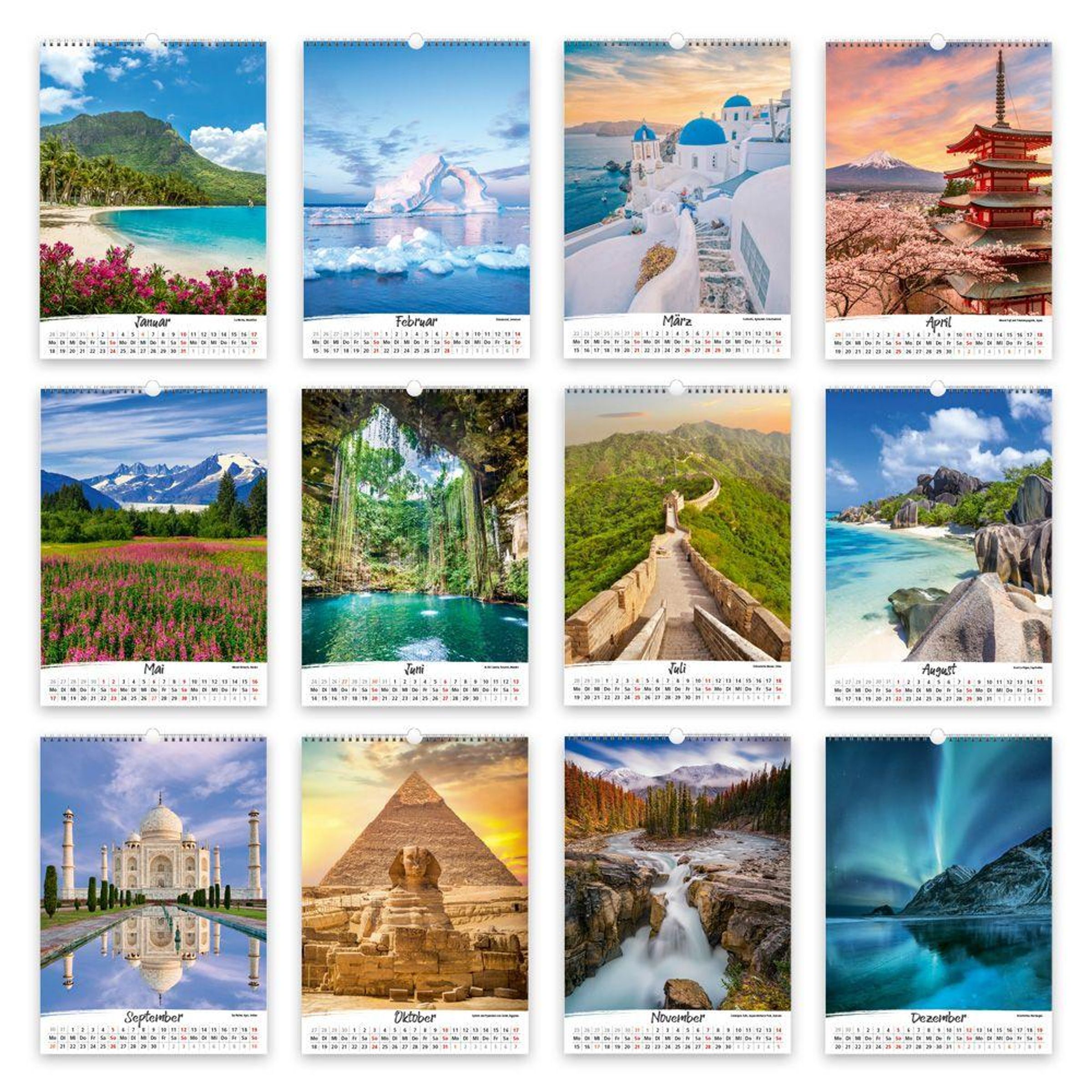 Mit diesem großformatigen Wandkalender wird jeder Tag ein kleines bisschen wie Urlaub: Idyllische Fotos von Orten auf der ganzen Welt laden zum Träumen ein und bringen die Freude am Reisen in die eigenen vier Wände oder ins Büro. Das übersichtliche Kalendarium mit farbig markierten Feiertagen bietet einen guten Überblick über jeden Monat und hilft beim Organisieren des Alltags. Ideal, um Familie, Freunden oder sich selbst ein ganzes Jahr lang Freude zu schenken. Inklusive Ferienterminen.