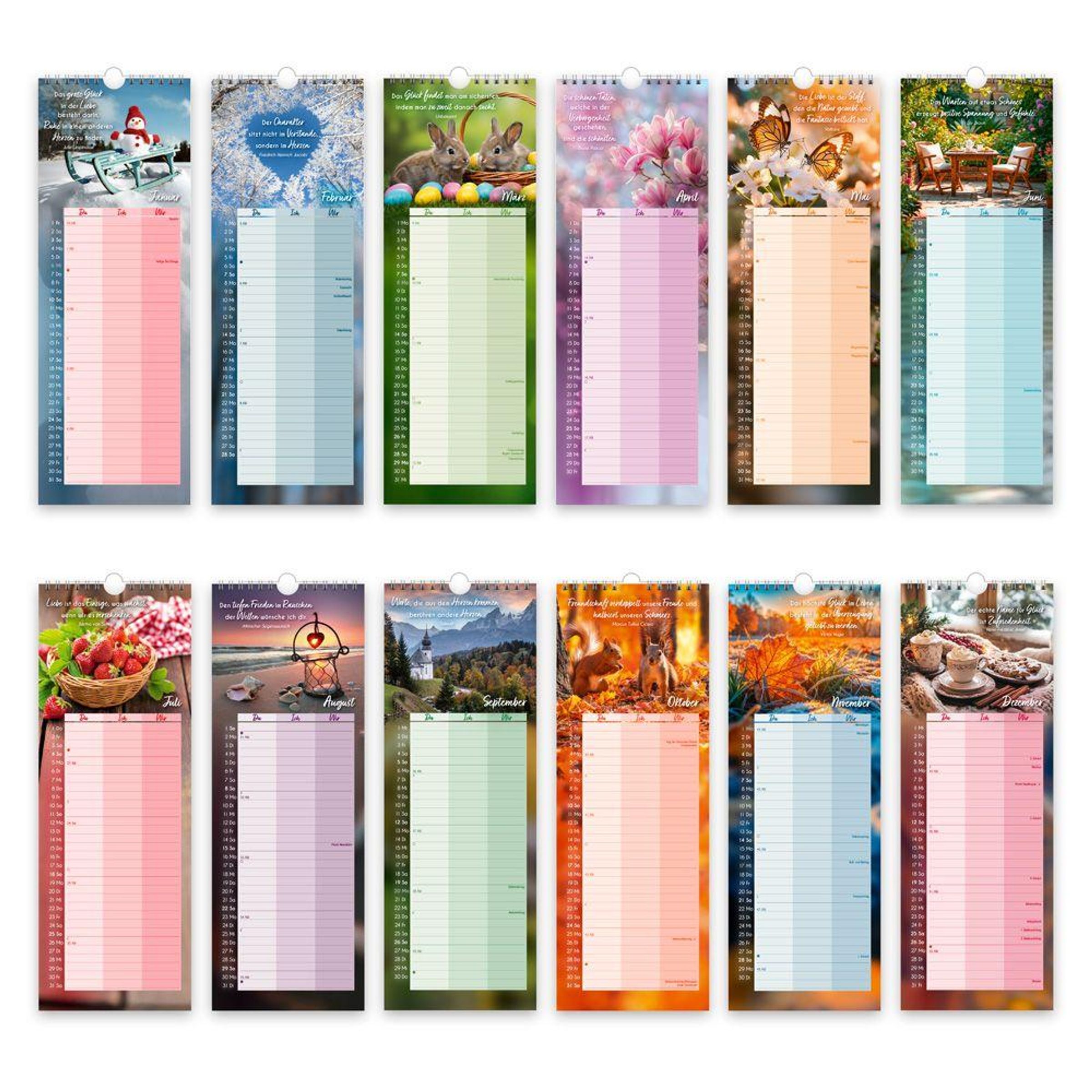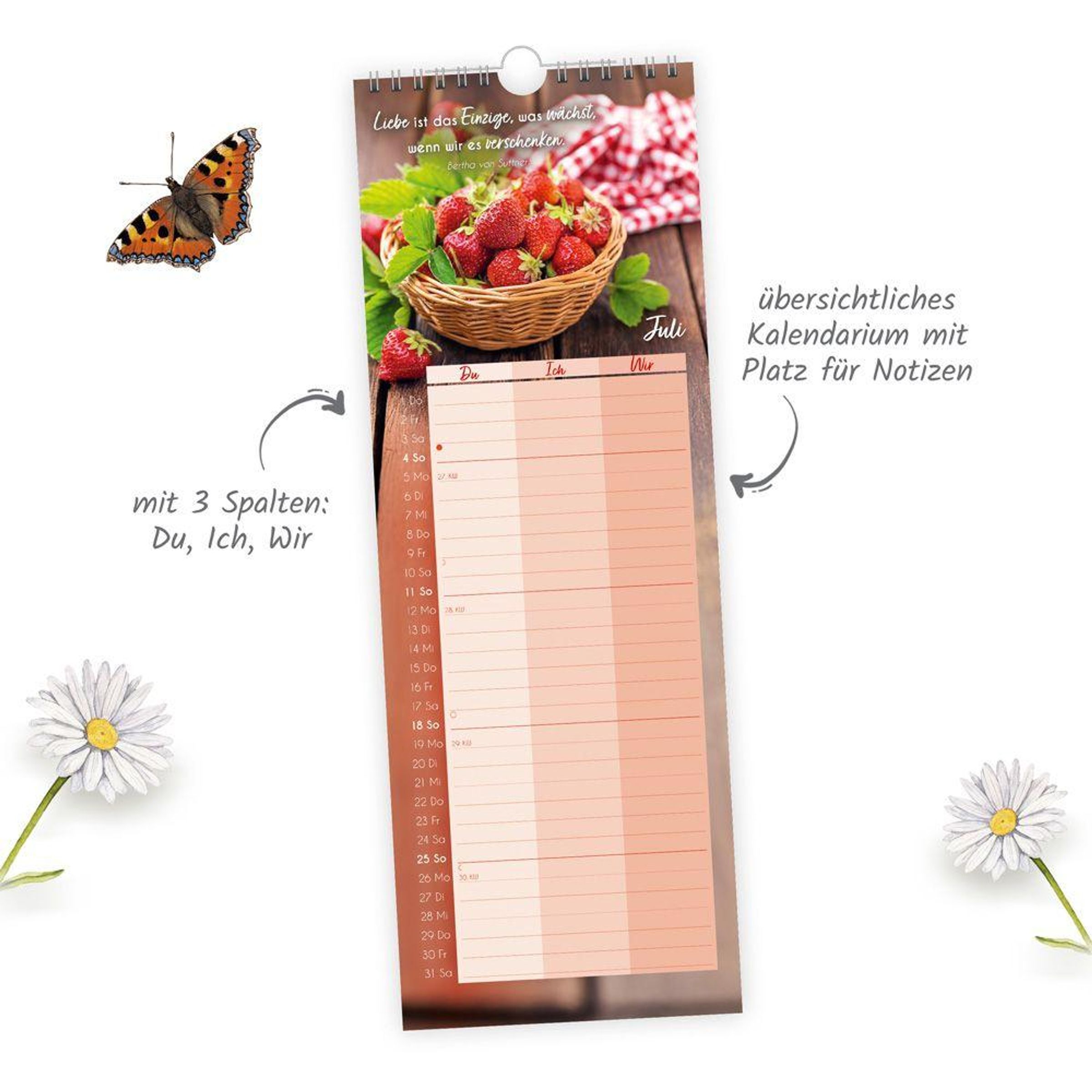 Der Streifenkalender MOMENTE FÜR UNS im Format 15 x 42 cm ist ein unverzichtbarer Alltagshelfer im aktiven Beziehungsleben. Wie jedes Jahr hilft er auch in den kommenden zwölf Monaten, Pläne und Termine im Griff zu behalten. Mit stimmungsvollen Fotos und altbewährten Sprüchen ist er ein fröhlicher Begleiter durch den Alltag. In dem gut ablesbaren Kalendarium befindet sich Platz für Notizen, wie Erinnerungen an Veranstaltungen oder Termine. So kommt Ordnung in den Alltag, die Pläne geraten nicht durcheinander. Das perfekte Geschenk für Paare, damit sie Ihre gemeinsamen Termine nicht vergessen.