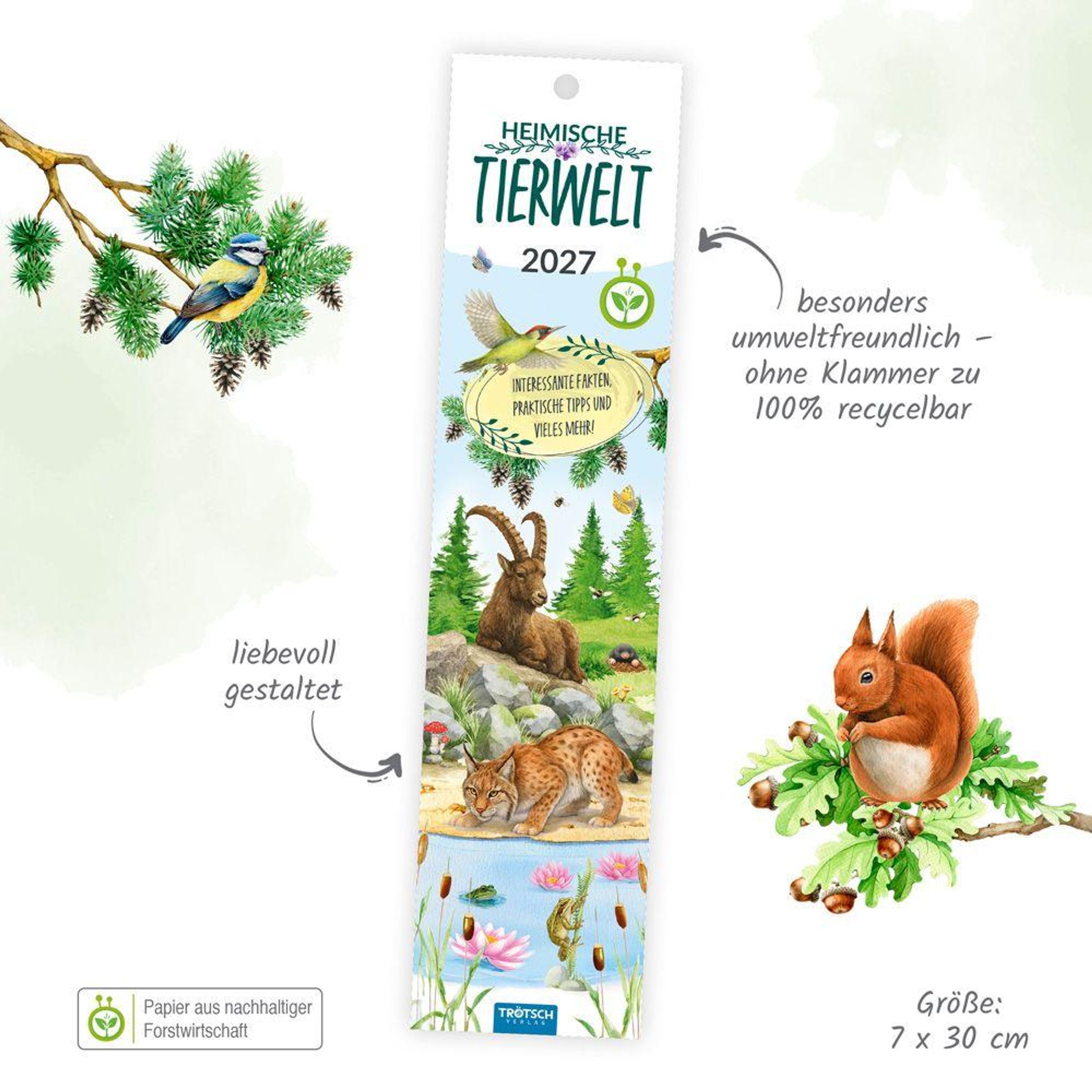 TRÖTSCH - Streifenkalender Mini Heimische Tierwelt 2027