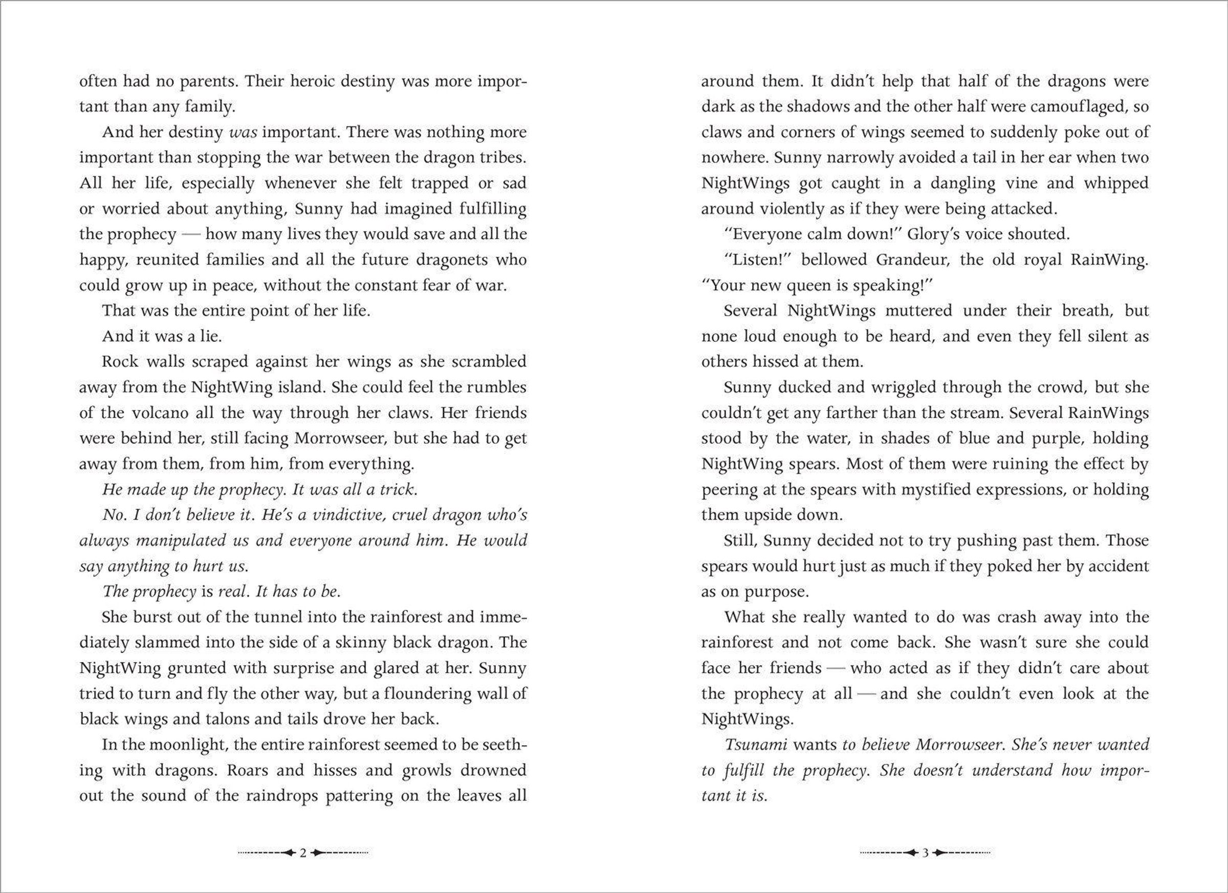 Sunny has always taken the Dragonet Prophecy very seriously. If Pyrrhia's dragons need her, Clay, Tsunami, Glory, and Starflight to end the war, she's ready to try. She even has some good ideas how to do it, if anyone would listen to her.