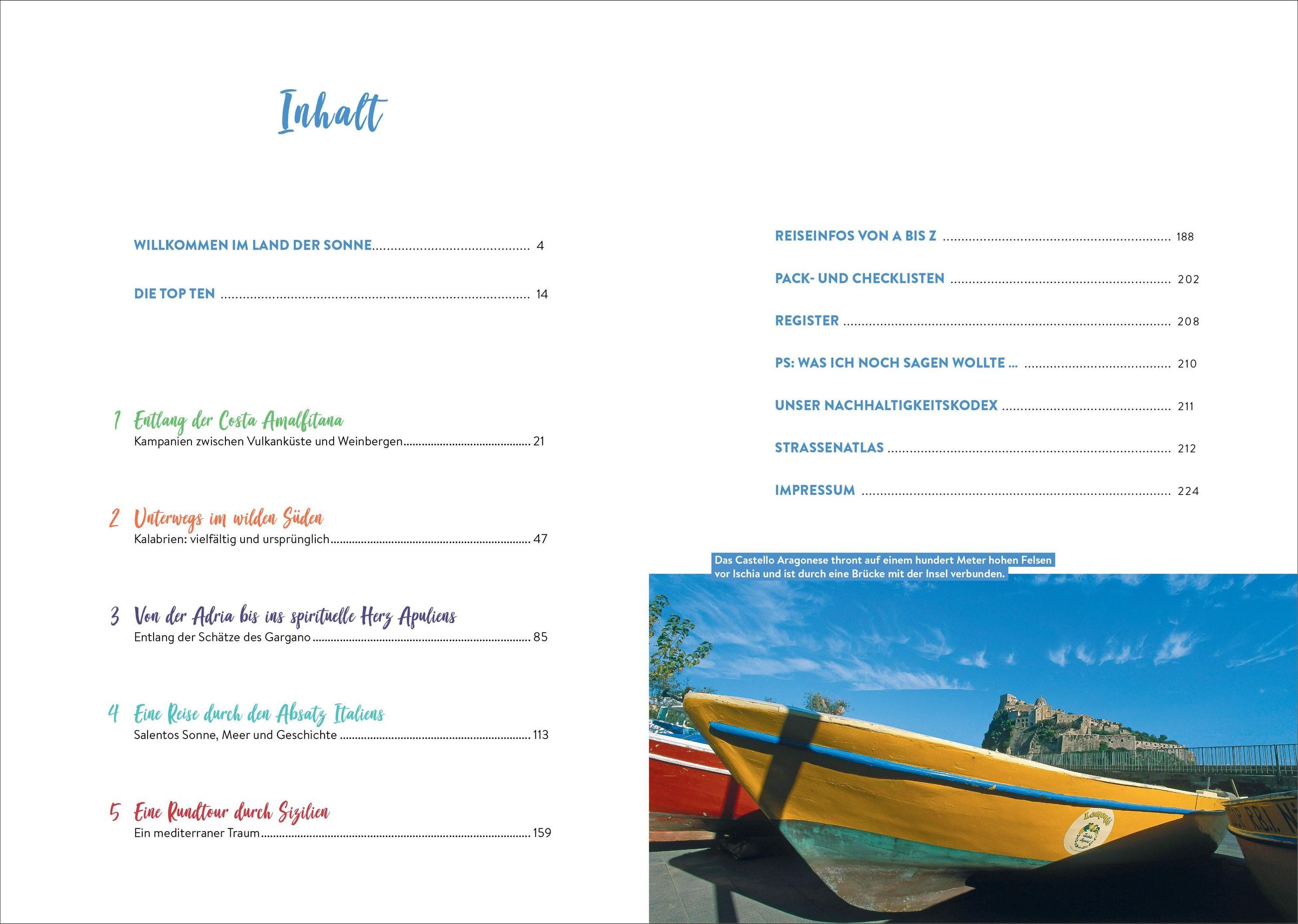 Die prächtige Schönheit des südlichen Italiens erleben! Malerische Küsten, zerklüftete Gebirge und grüne Täler, Weinberge und Olivenhaine - diese Touren führen durch alles, was die Region zu bieten hat: atemberaubende Landschaften, versteckte Dörfer und kulturelle Schätze. Der Wohnmobilführer zeigt die Vielfalt der Region von Neapel bis Palermo und empfiehlt die besten Campingplätze entlang der schönsten Strecken.