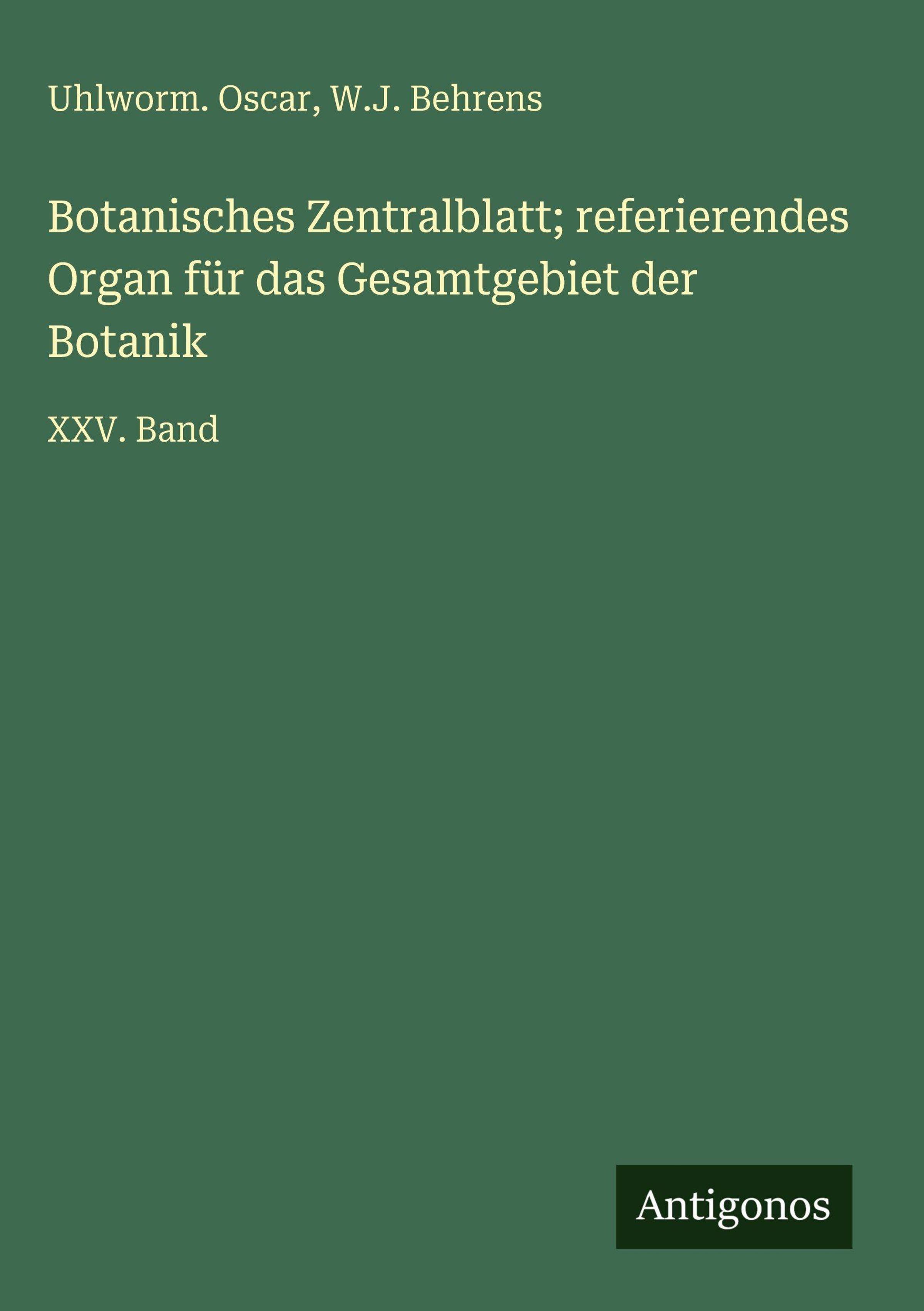 Uhlworm. Oscar: Botanisches Zentralblatt; referierendes Organ für das Gesamtgebiet der Botanik, Gebunden