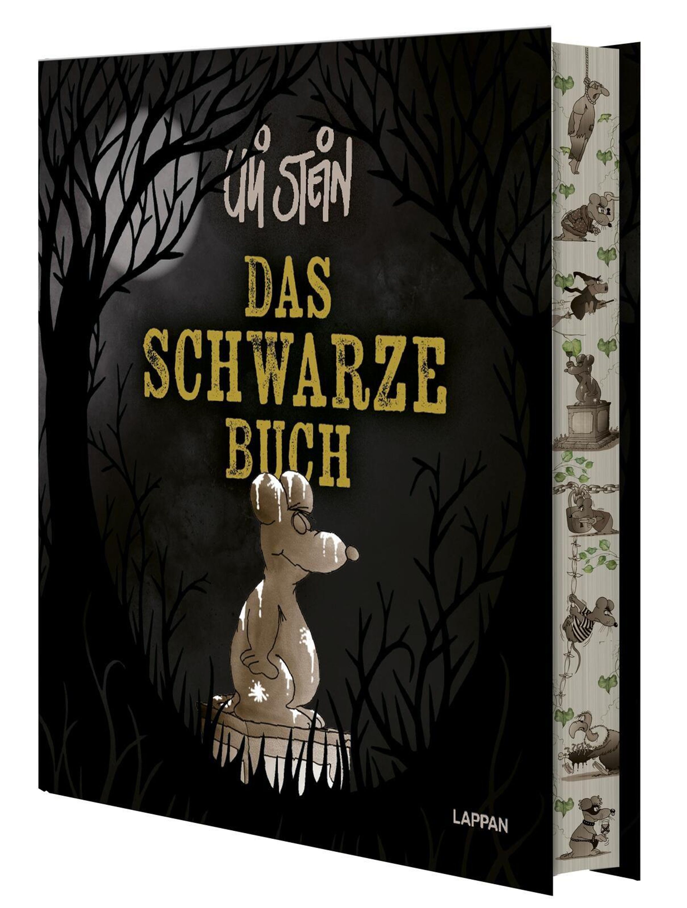 „Uli Stein – Das schwarze Buch“ in gelber und weißer Schrift. Illustration mit einer Maus vor einem schwarzen Hintergrund., Buch