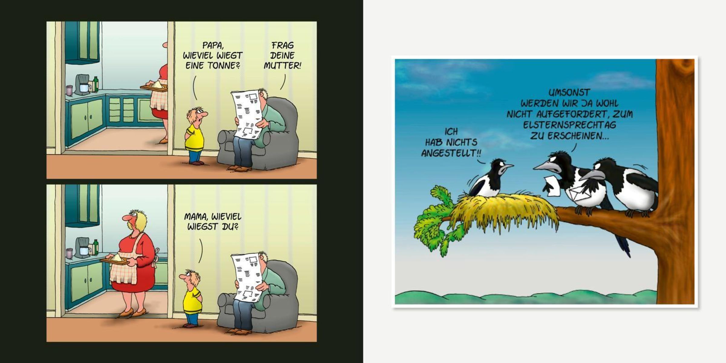 - Gnadenlos komisch: Wortwitz, Alltagssituationen und absurde Szenen mit schwarzem Humor.