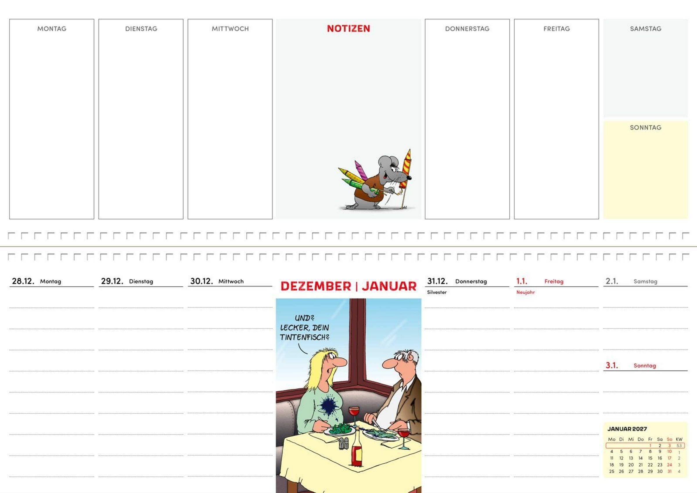 Darum ist dieser Wochenkalender im praktischen Querformat ein lustiger Alltagshelfer für alle, die gern lachen.