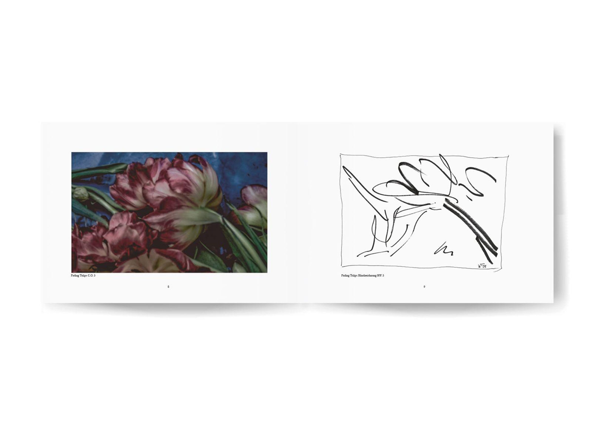 In Fading Tulips - vom Vergehen der Blumen treffen zwei künstlerische Ansätze aufeinander: Ulrich Timmermanns Fotografien aus der Camera Obscura zeigen das stille Vergehen von Tulpen als poetische Nature morte, während Rainer Weißenborn mit Blindzeichnungen darauf reagiert - spontan, kraftvoll und voller Energie. So entsteht ein Dialog zwischen Licht und Linie, Vergänglichkeit und Vitalität, zwischen kontemplativer Beobachtung und expressiver Geste.