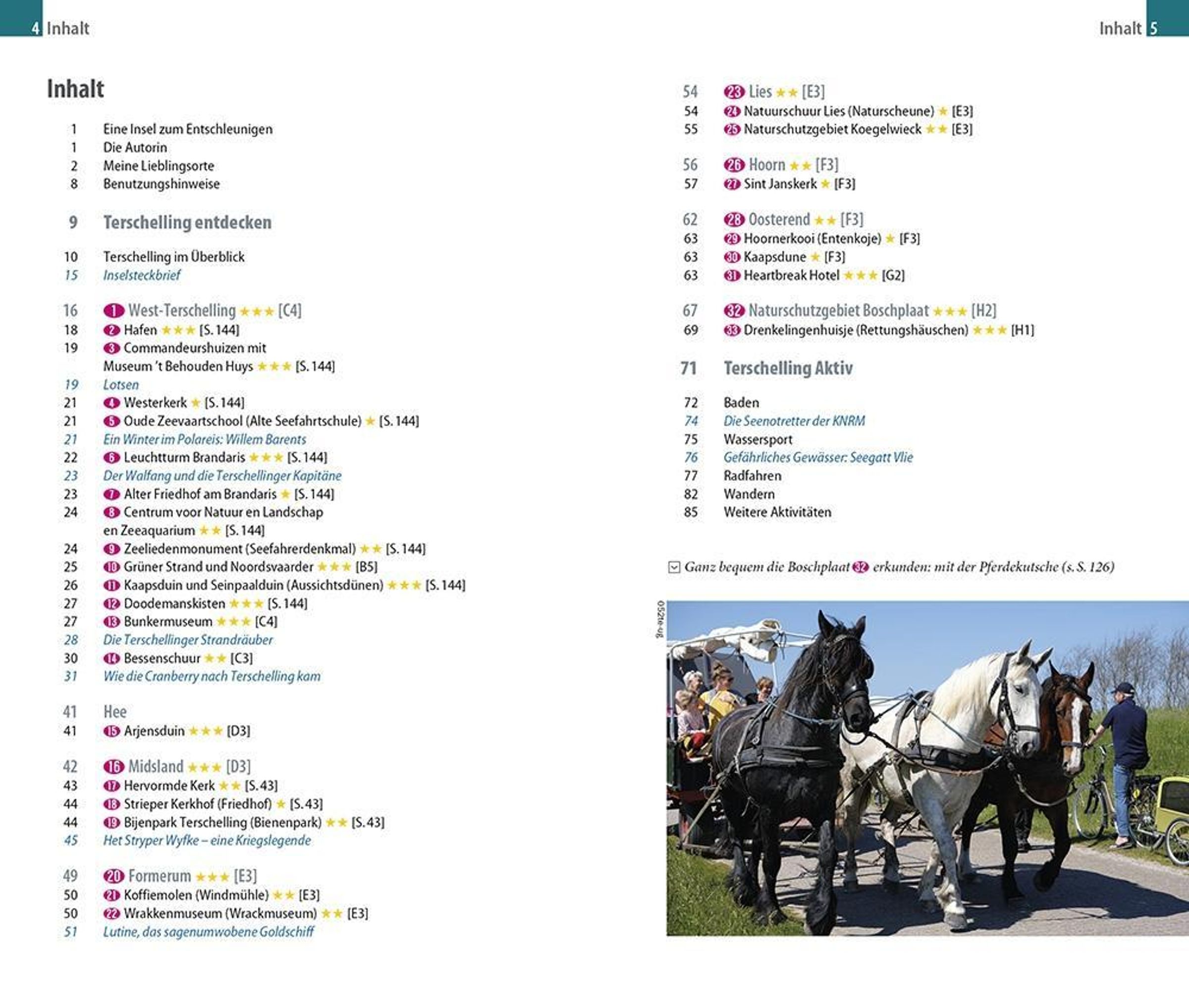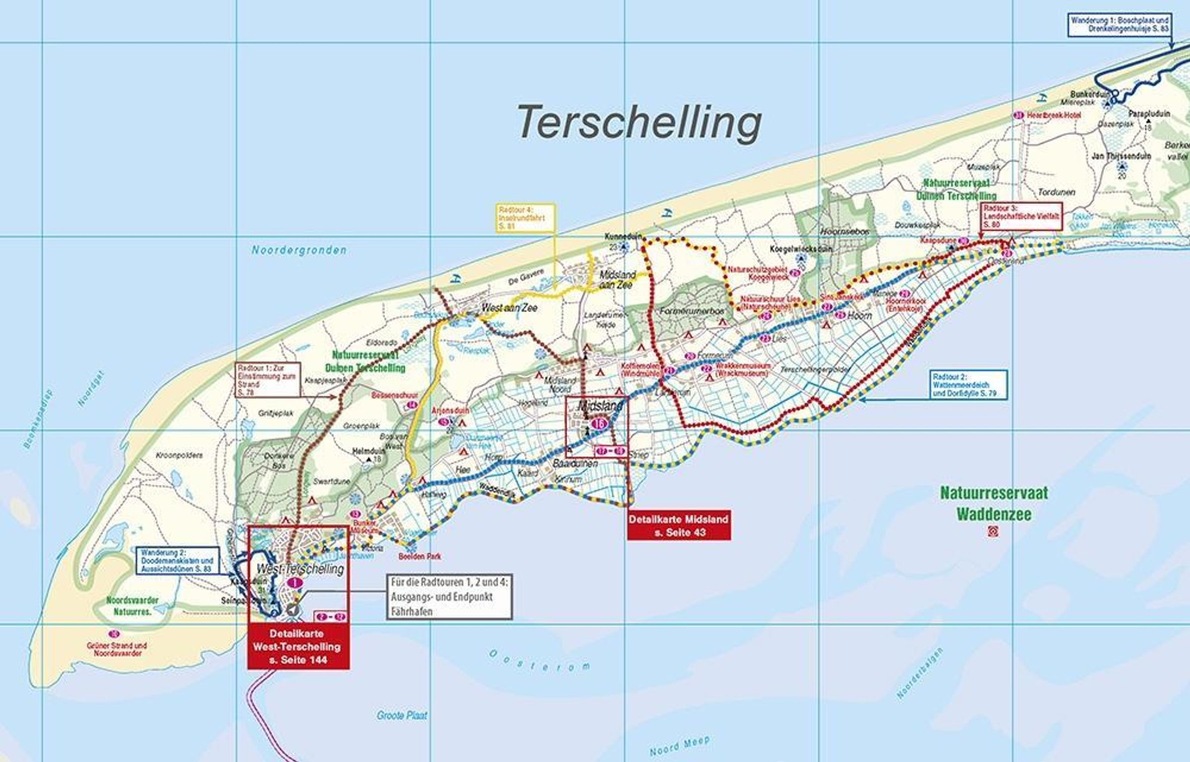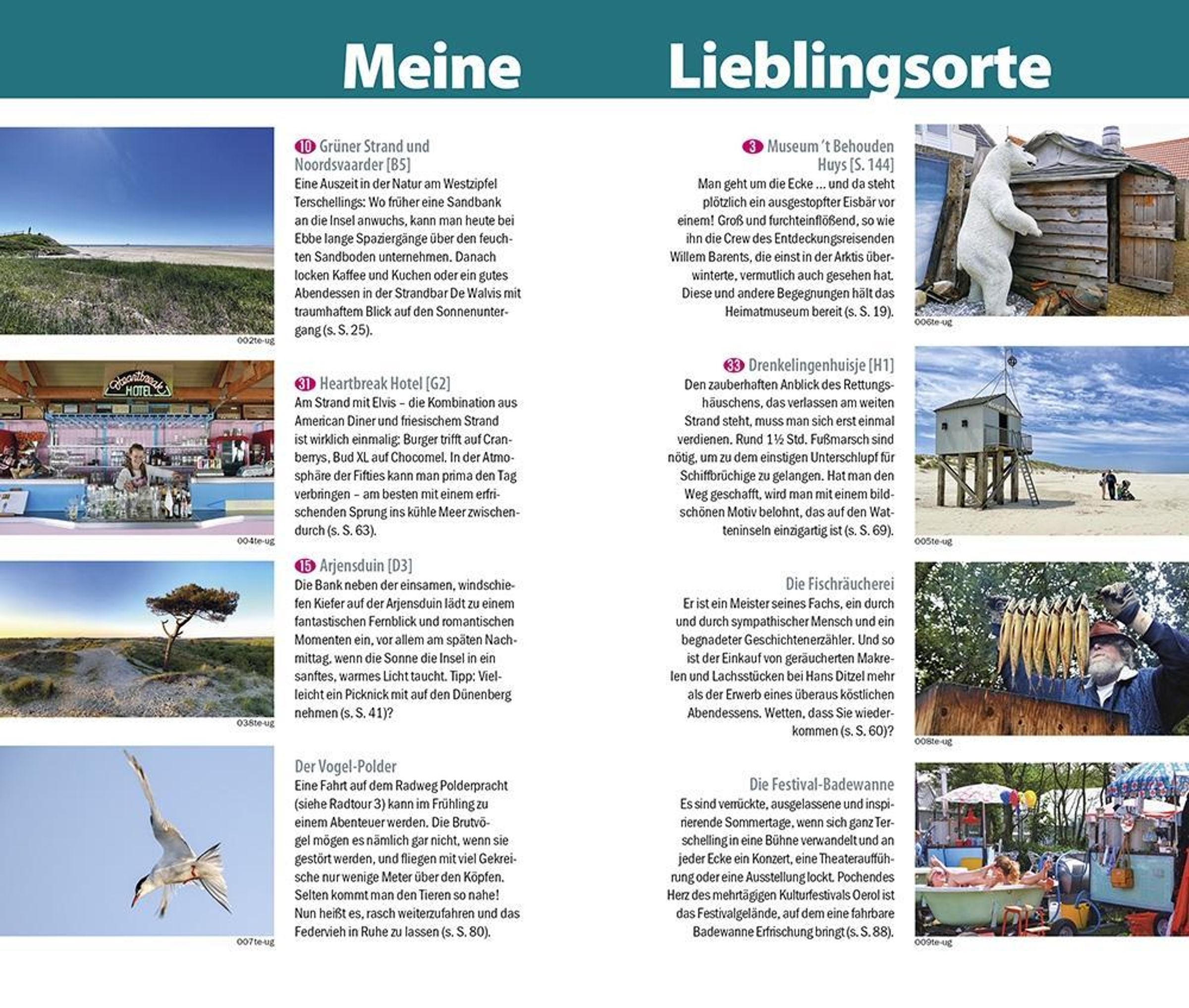 Dazu: kostenlose Web-App für Smartphone, Tablet und PC mit Inselplan- und Satellitenansichten passend zum Text, Routenführung zu allen beschriebenen Sehenswürdigkeiten und touristisch wichtigen Orten, Verlauf der Wanderungen und Radtouren, seitenbezogenen Updates nach Redaktionsschluss sowie einem Mini-Audiotrainer Niederländisch