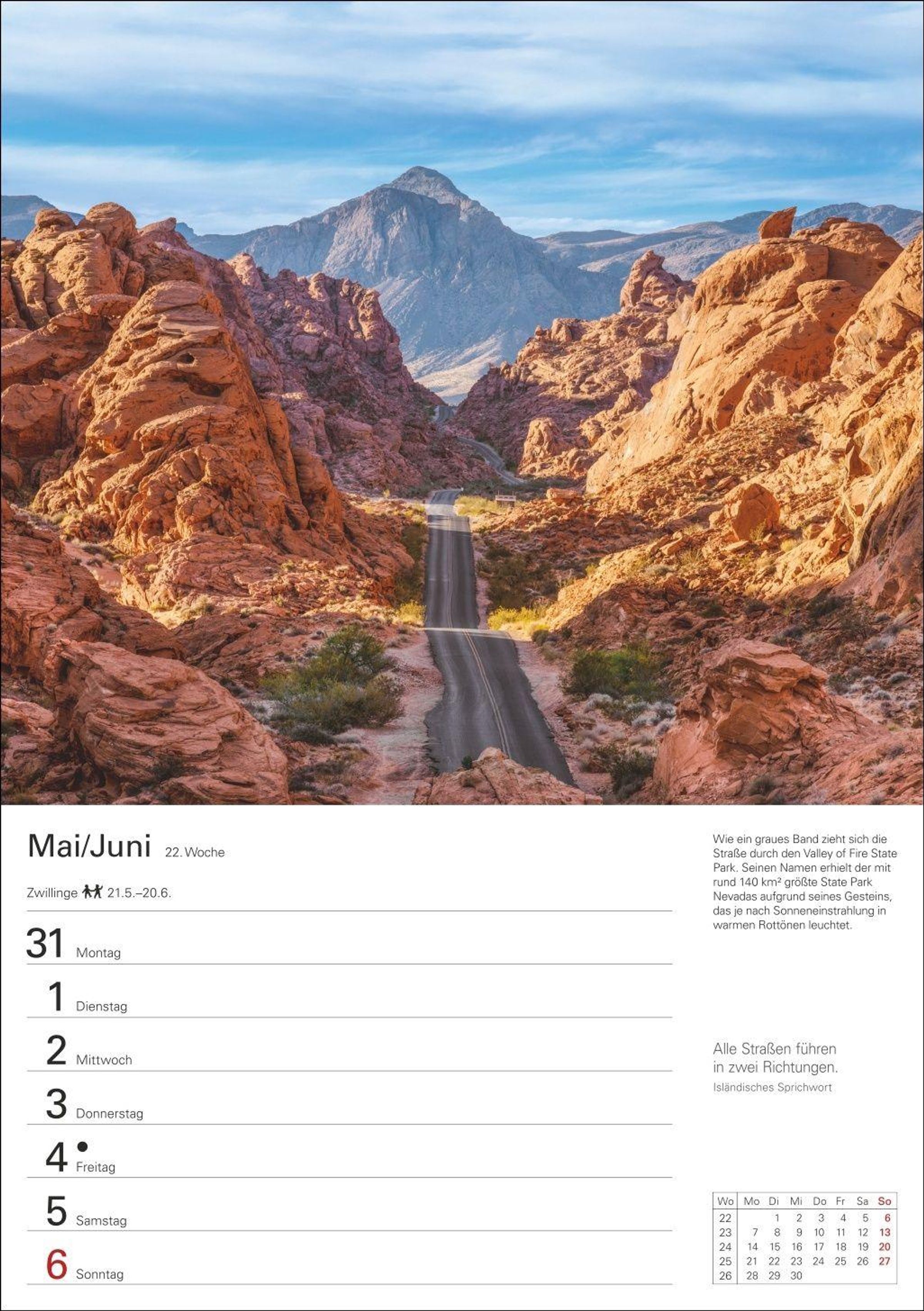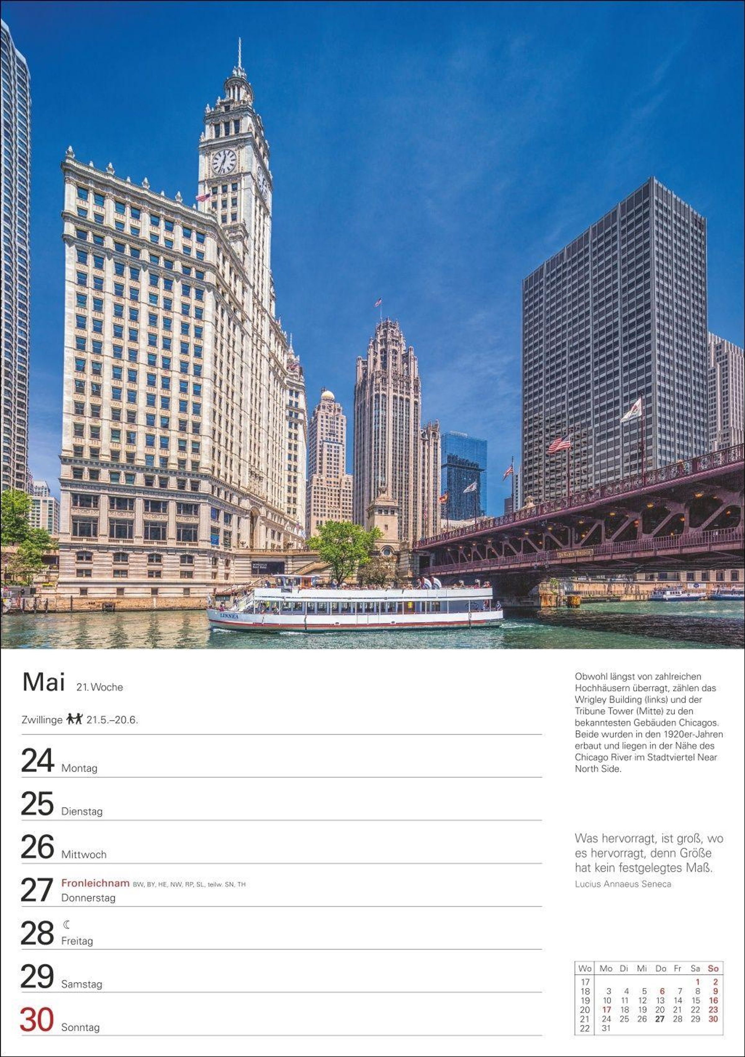 Praktisch und informativ: Wandkalender mit Spiralbindung, viel Platz für Eintragungen, inspirierenden Zitaten sowie Bilderläuterungen und lesenswerter Chronik auf den Rückseiten