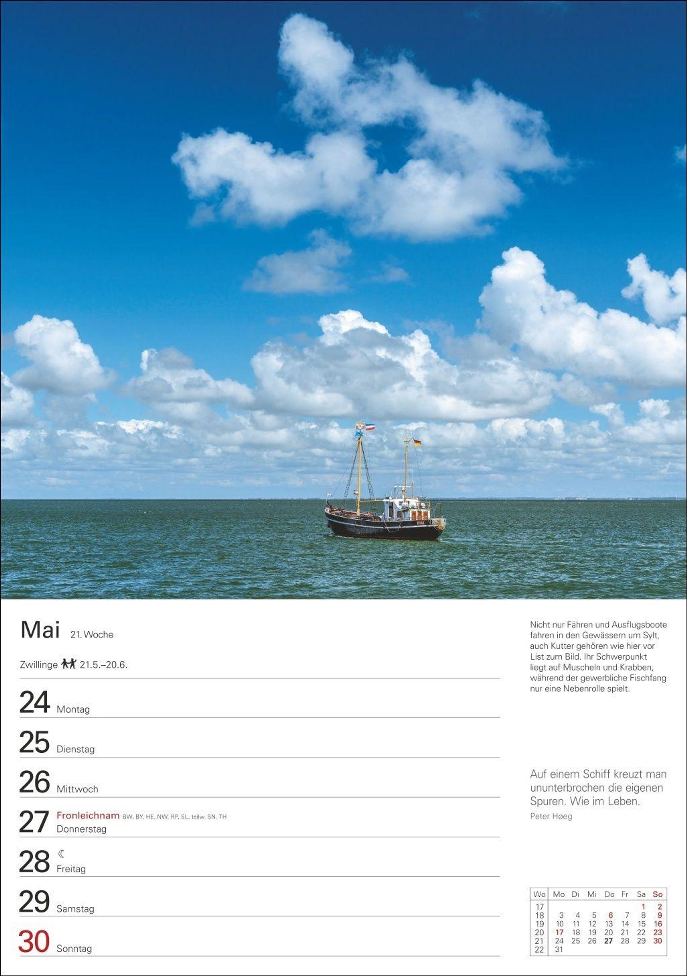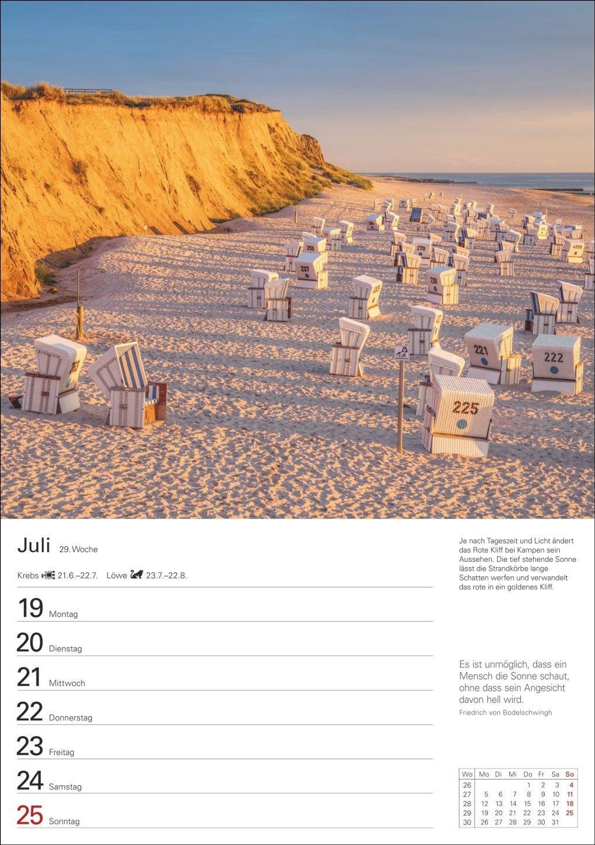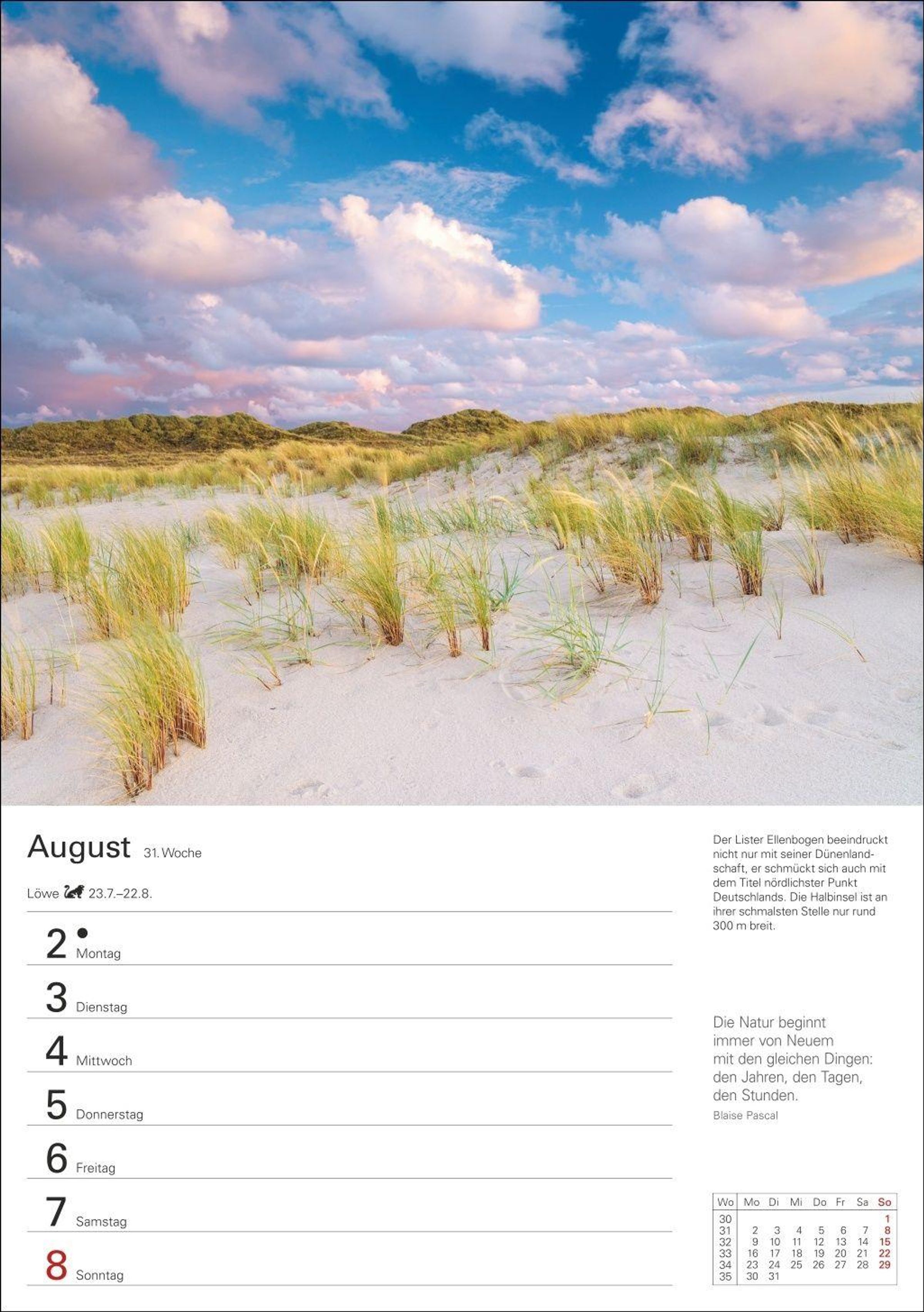 Bilderläuterungen, Zitate, viel Platz für Notizen und Wochenchronik auf der Rückseite: Das ist der Sylt-Wochenkalender 2027