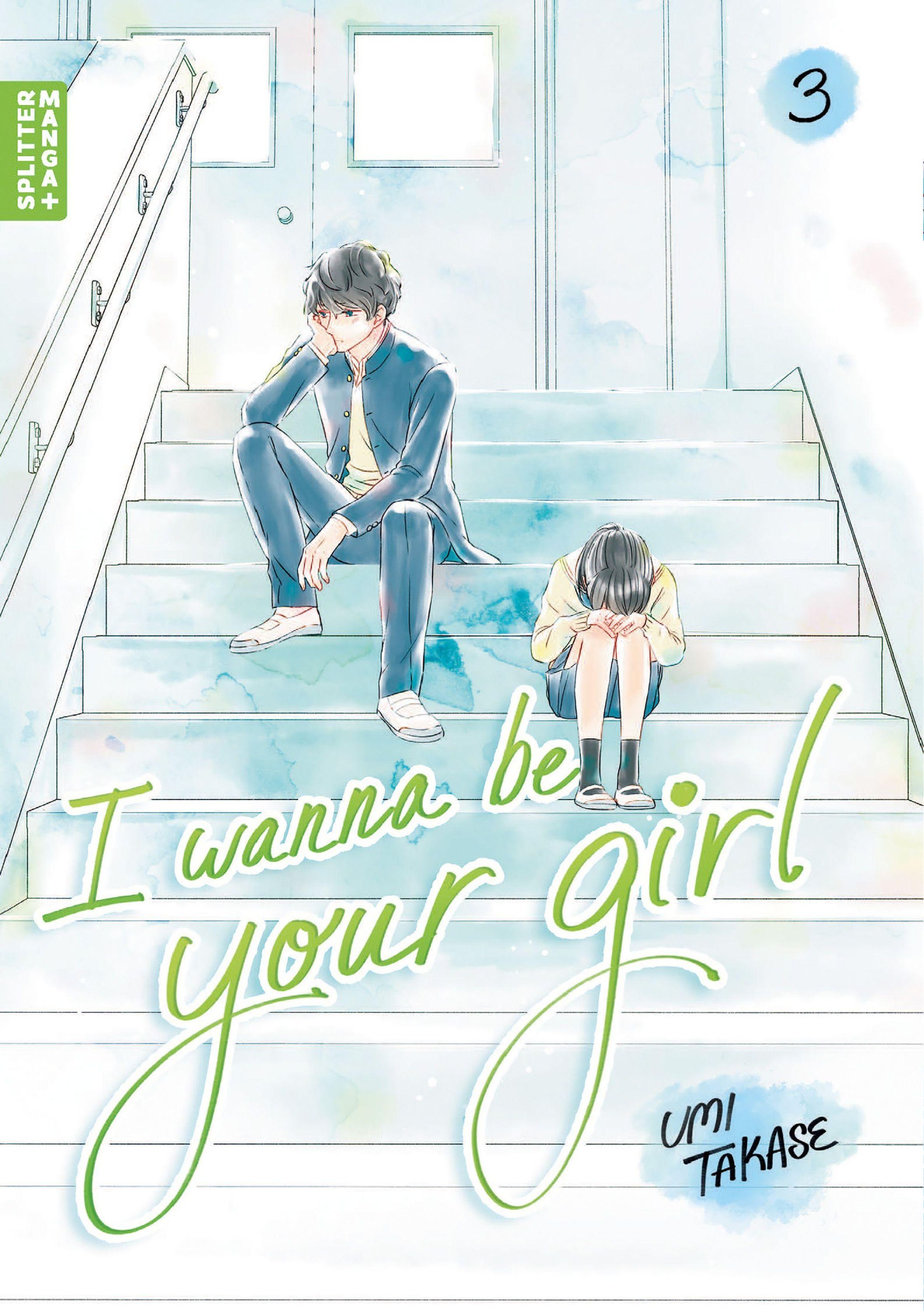 Titel: "I wanna be your girl". Oben rechts die Zahl "3". Illustration von zwei Personen auf Treppe sitzend., Buch