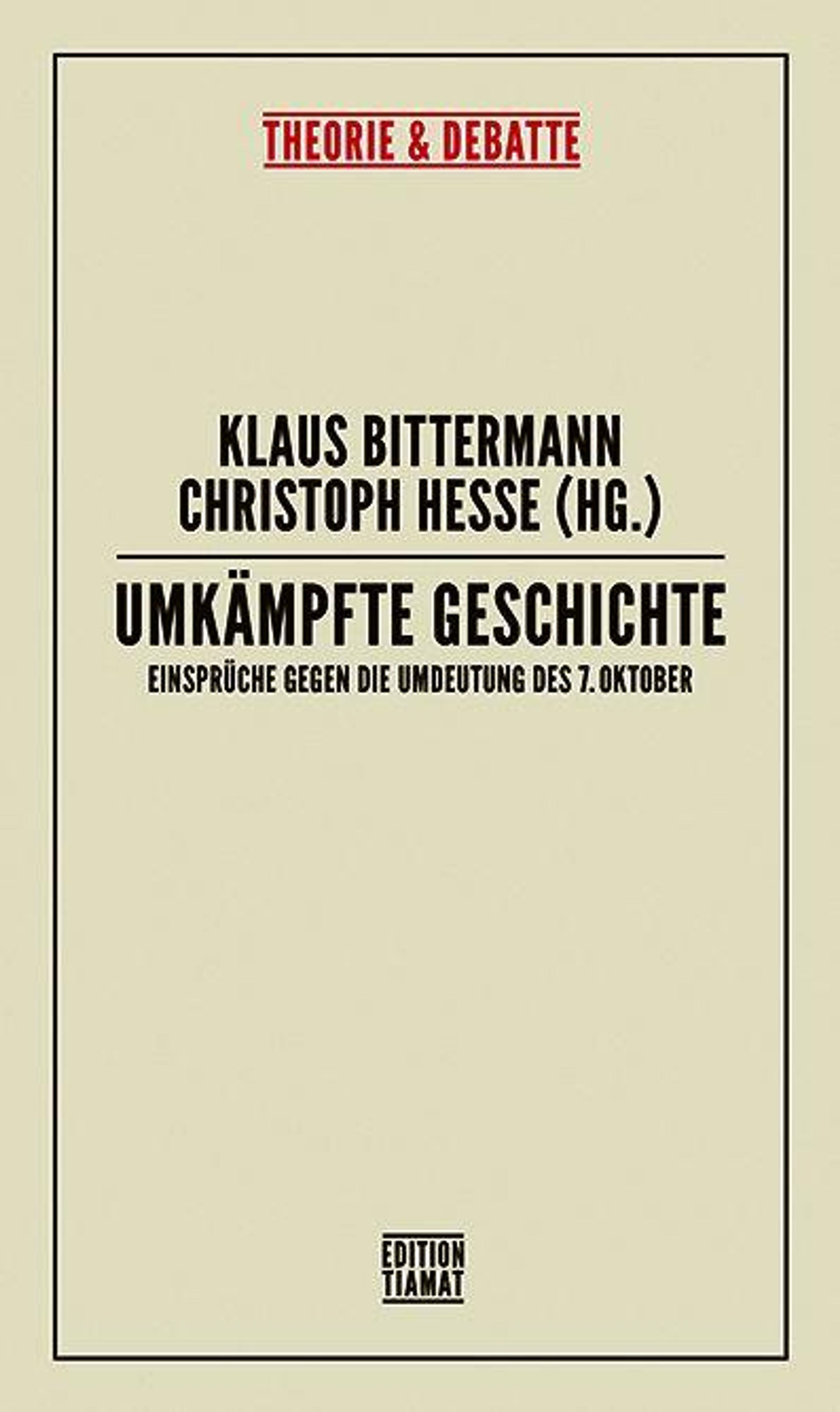 "Theorie & Debatte. Klaus Bittermann, Christoph Hesse (Hg.). Umkämpfte Geschichte. Einsprüche gegen die Umdeutung des 7. Oktober.", Buch