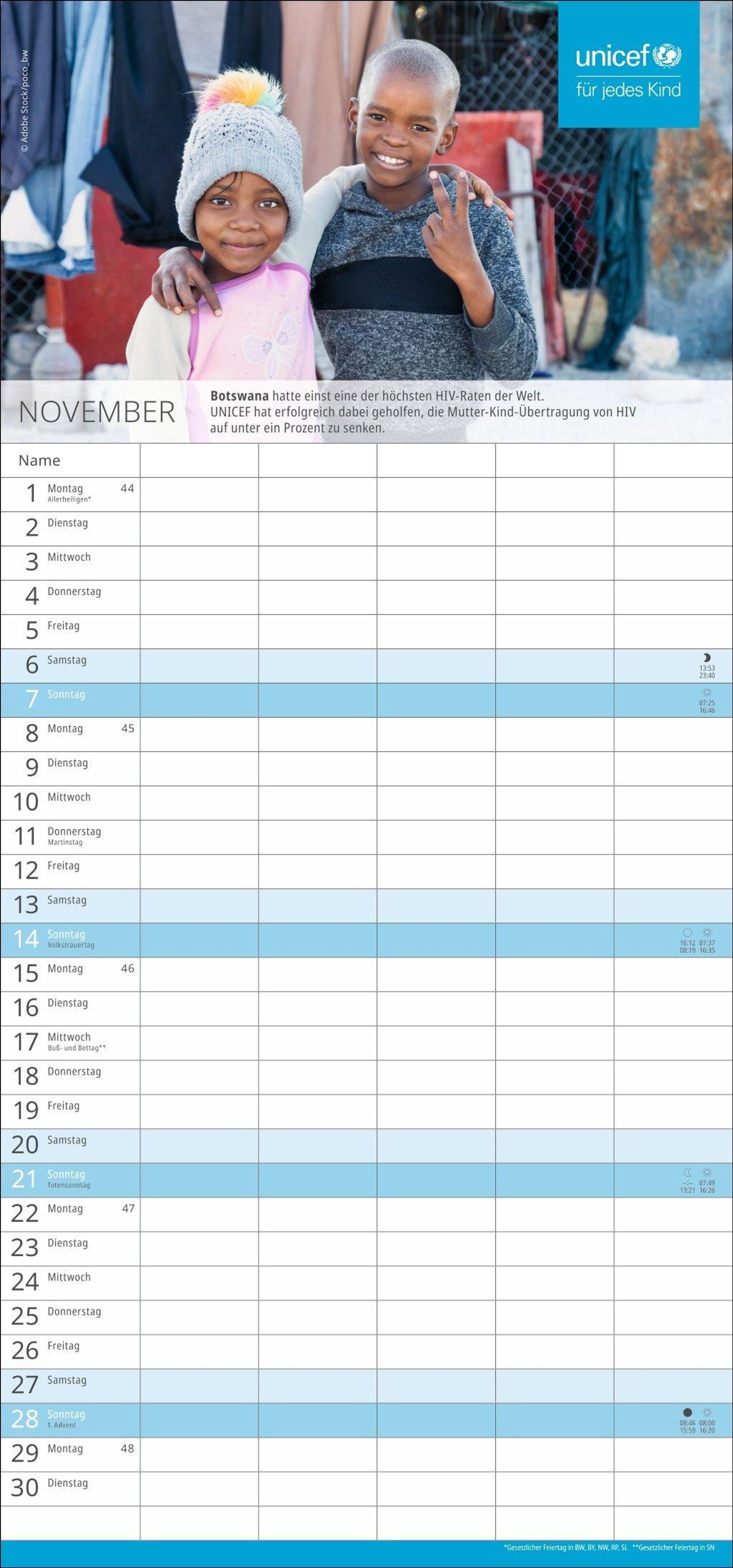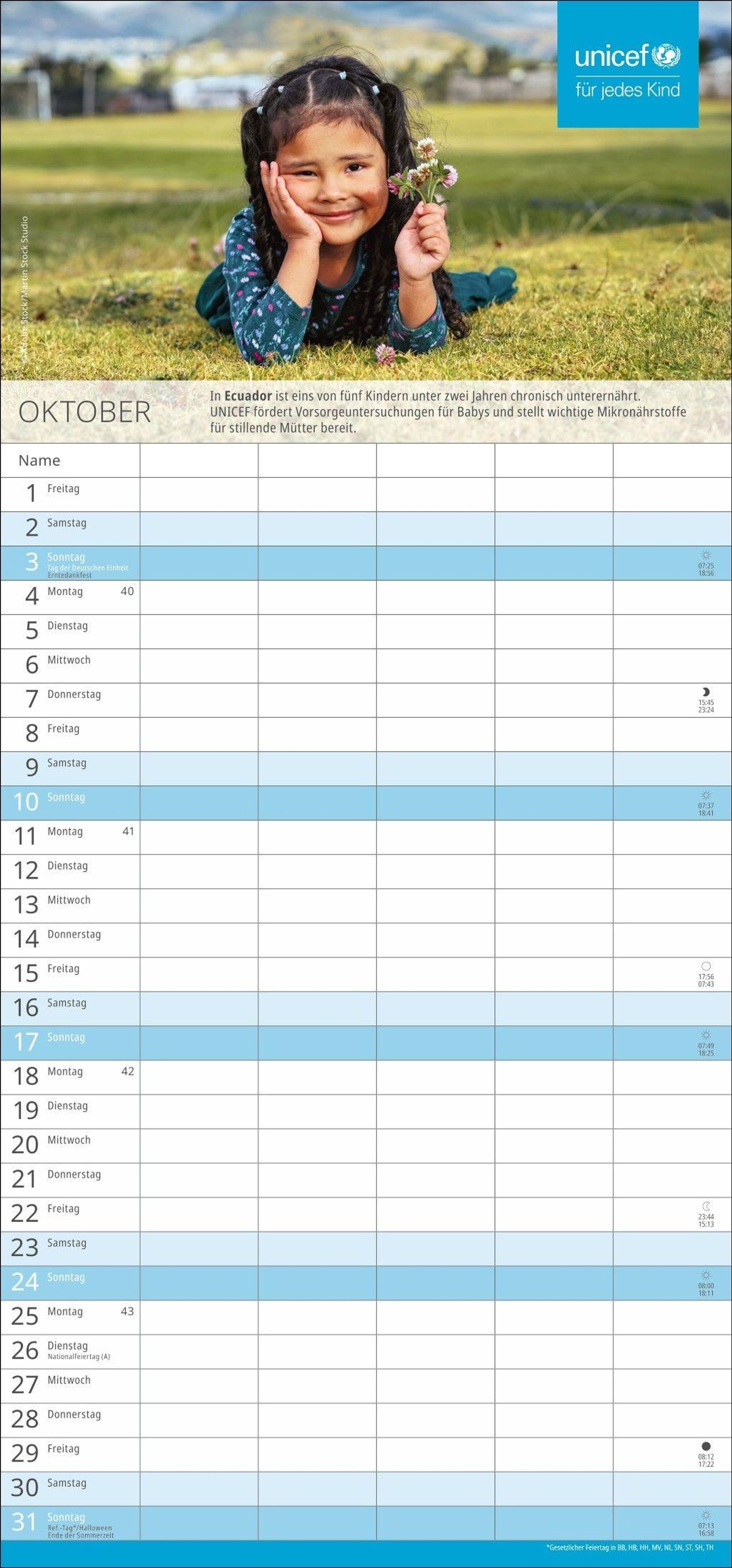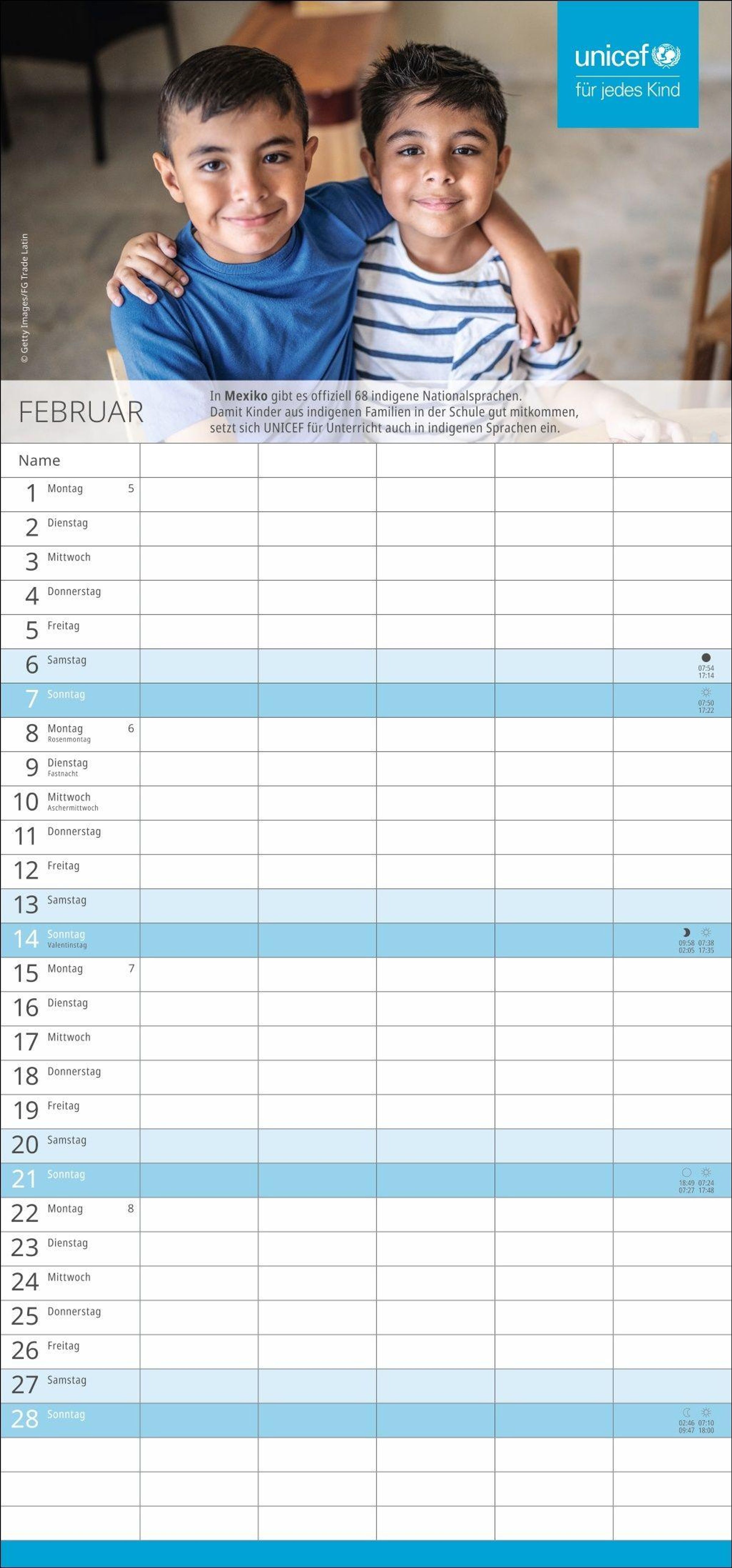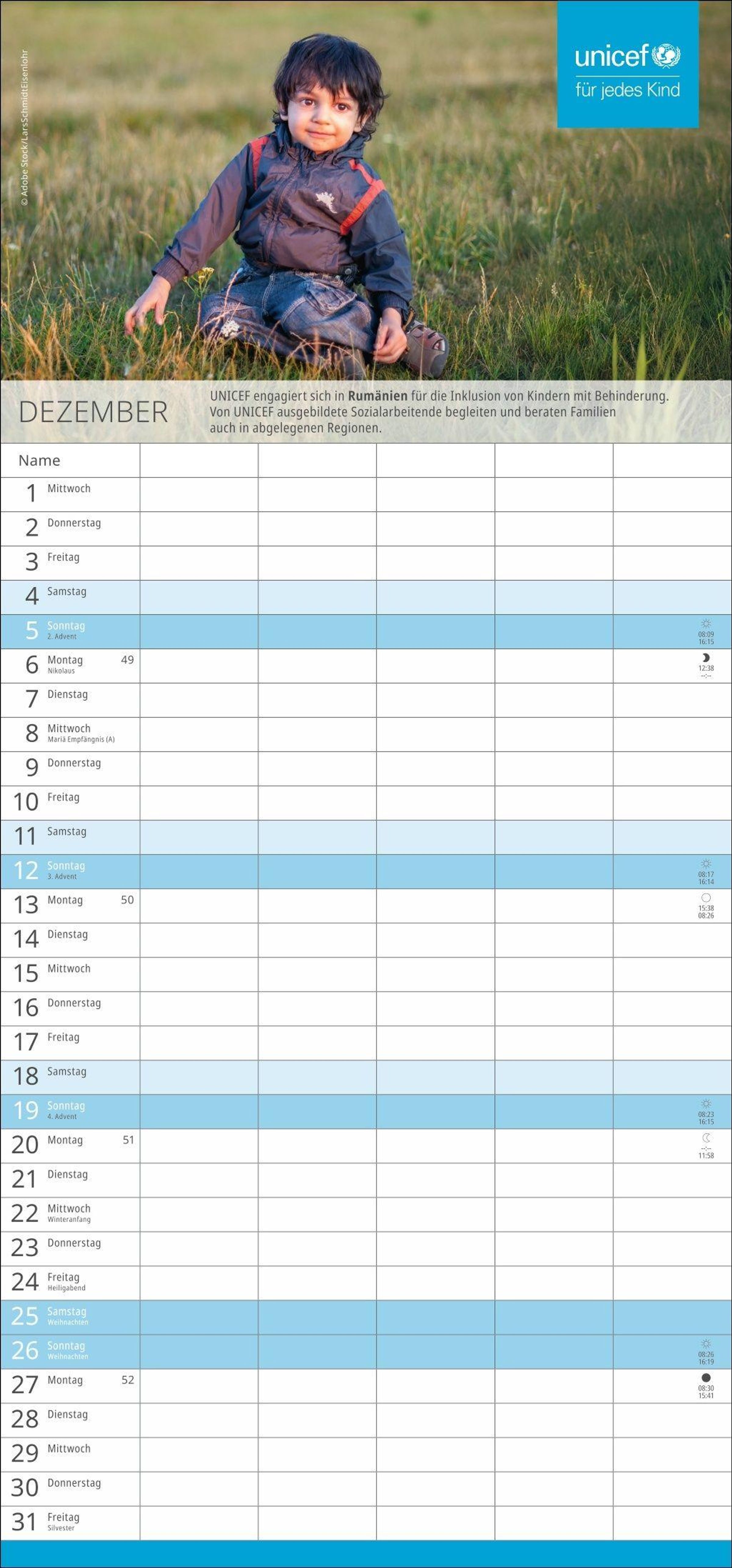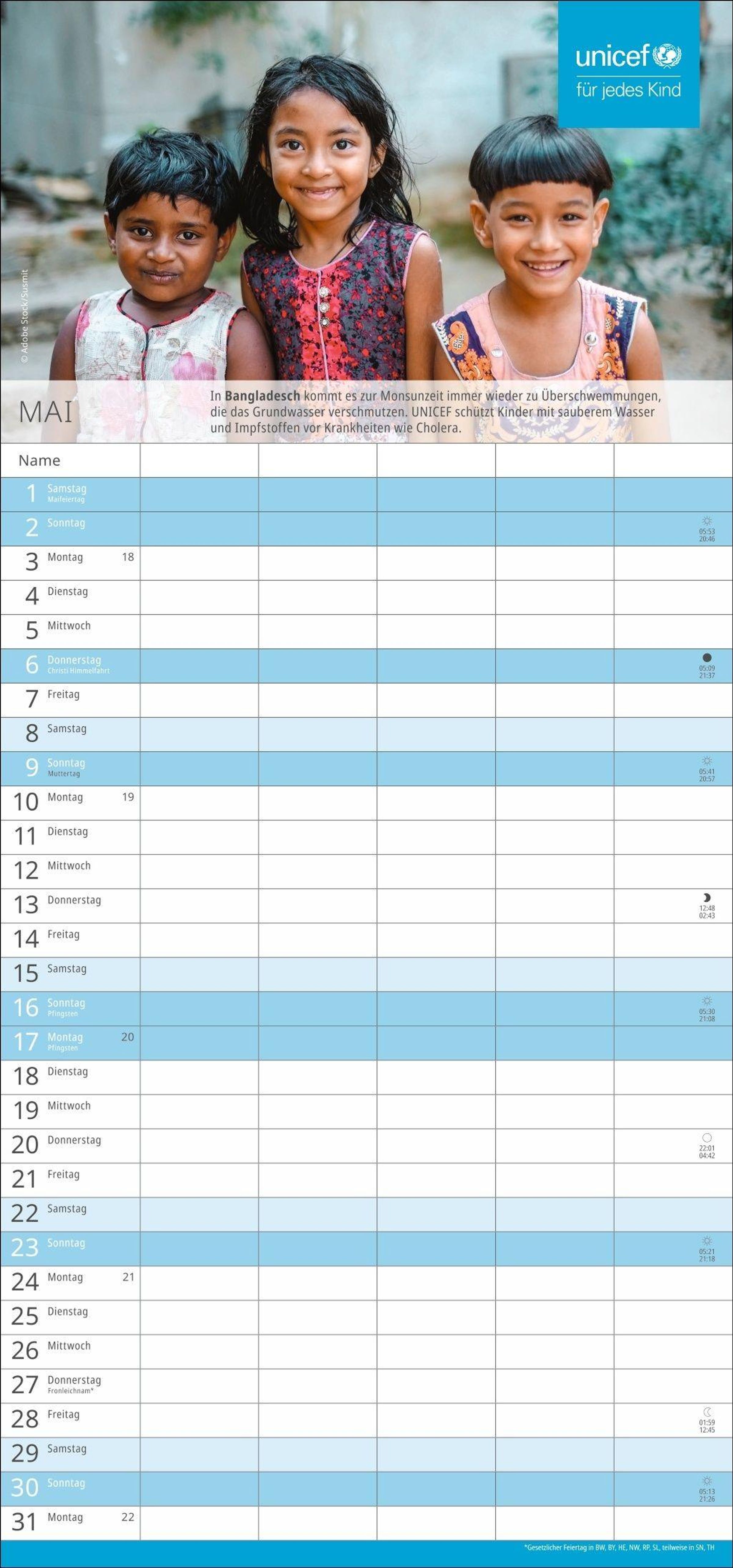 Spenden Sie Hoffnung: Mit dem Kauf des Familien-Wandkalenders unterstützen Sie UNICEF und damit humanitäre Hilfe in über 190 Ländern