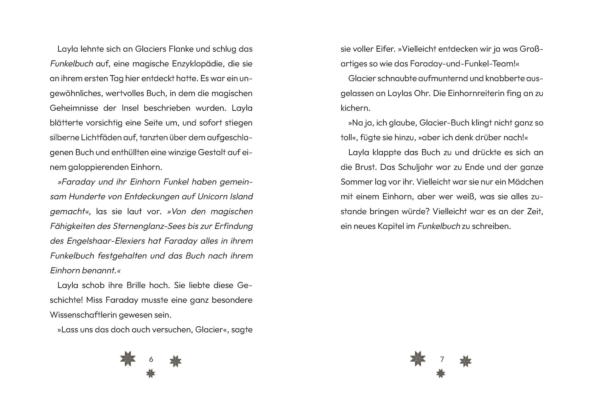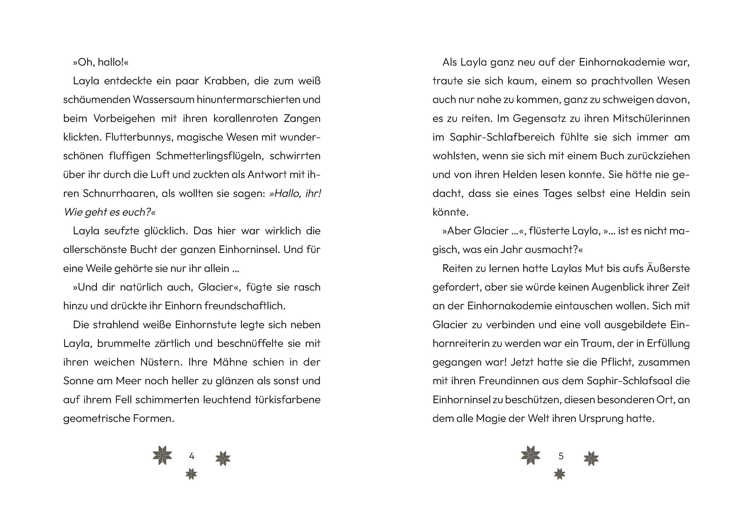 Die Unicorn Academy hat Ferien! Doch Layla möchte unbedingt immer mehr über die Einhorn-Magie lernen und macht deshalb ein Praktikum in der Schulbücherei. Sie träumt davon, eine grandiose Entdeckung zu machen, und dafür reist sie sogar auf die Insel Grimoria, wo die Dunkel-Magie herkommt. Als sie dort eine geheimnisvolle Blume findet, nimmt sie diese mit nach Unicorn Island - und bringt damit ihr Einhorn Glacier in tödliche Gefahr!