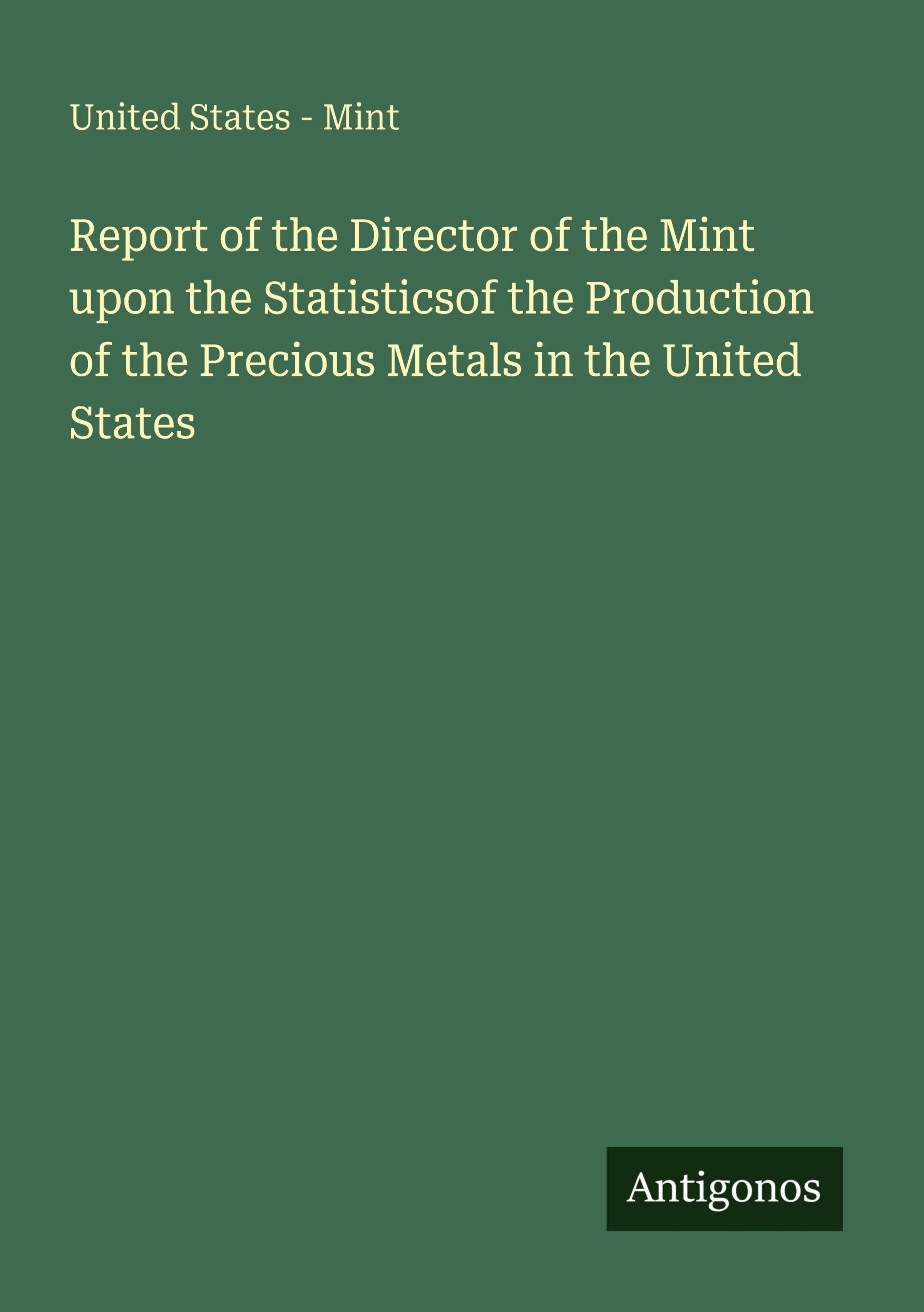 United States - Mint: Report of the Director of the Mint upon the Statisticsof the Production of the Precious..., Kartoniert / Broschiert
