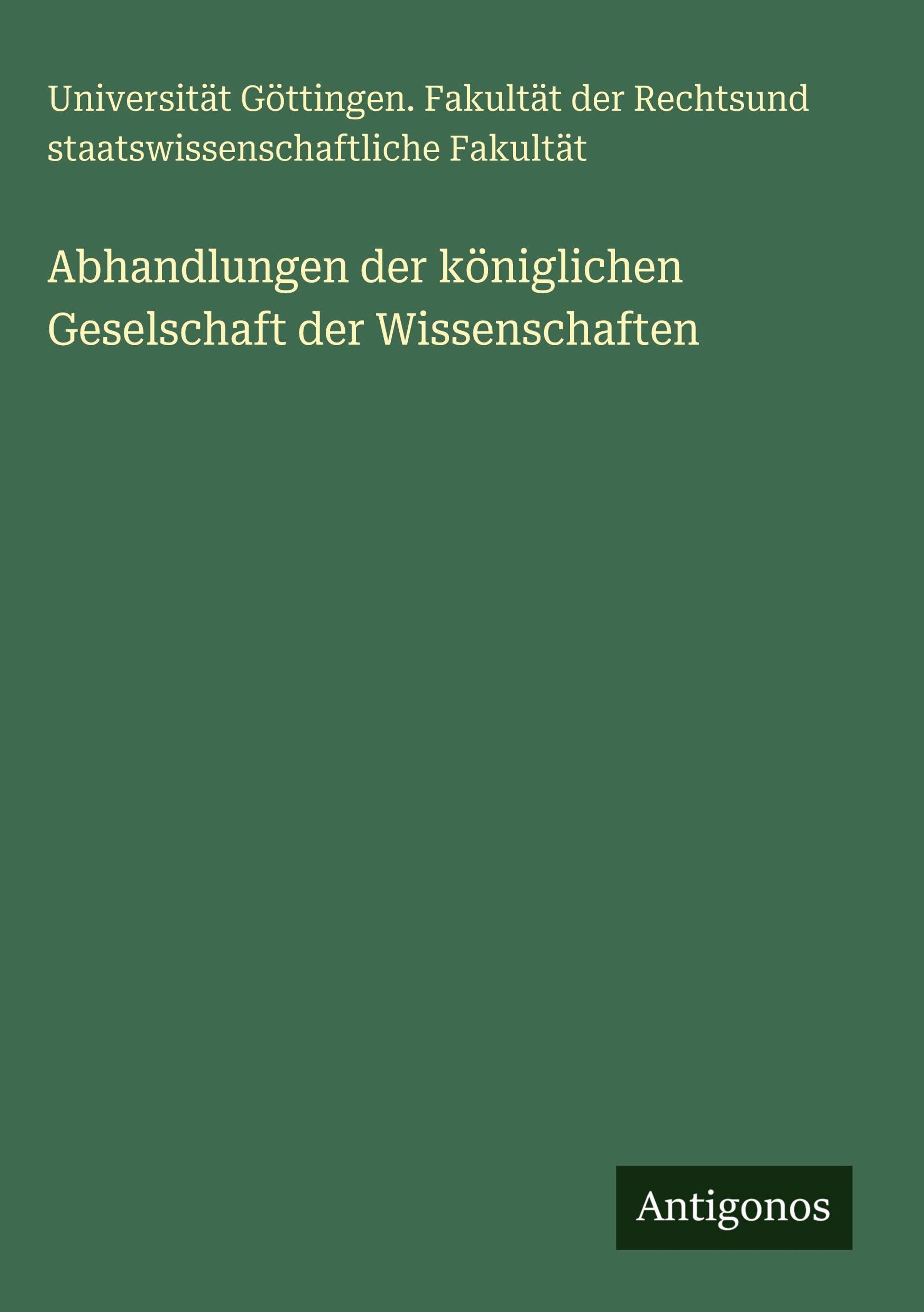 Universität Göttingen. Fakultät der Rechtsund staatswissenschaftliche Fakultät: Abhandlungen der königlichen..., Gebunden