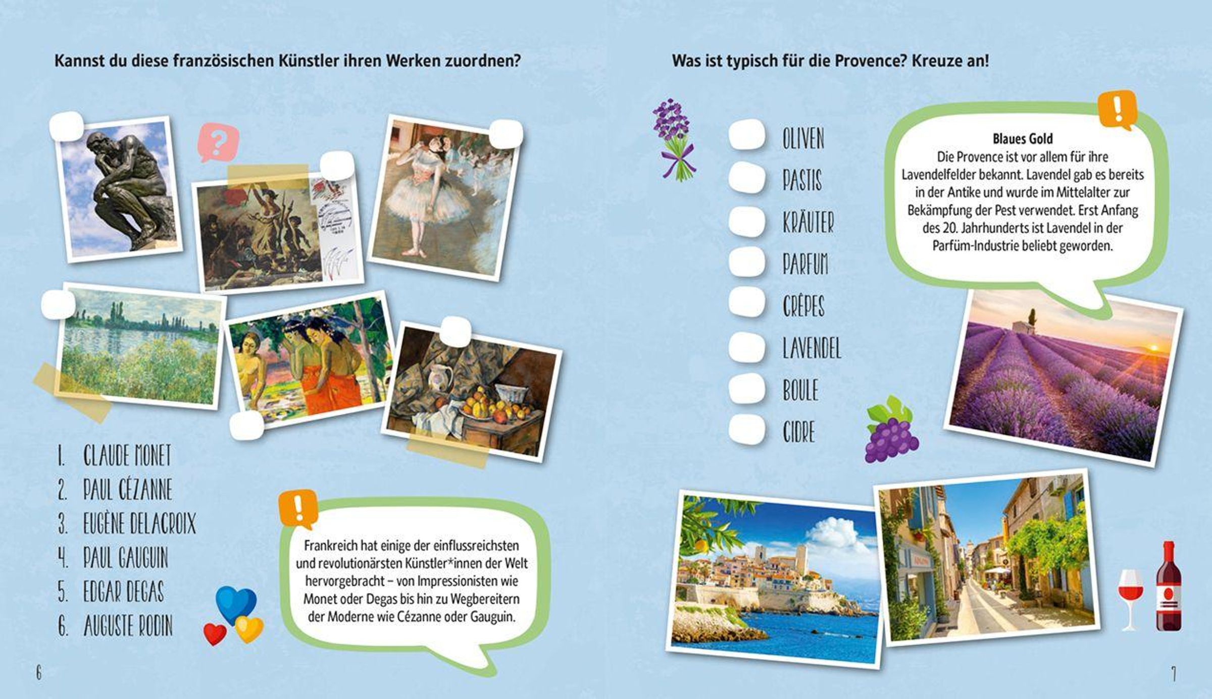 - Lockere Wissensvermittlung: Das Buch lädt zum Miträtseln und Knobeln ein! Lerne Neues zur französischen Kultur, Sprache, zu Land und Leuten. Auch bereits vorhandene Kenntnisse werden wieder aufgefrischt.