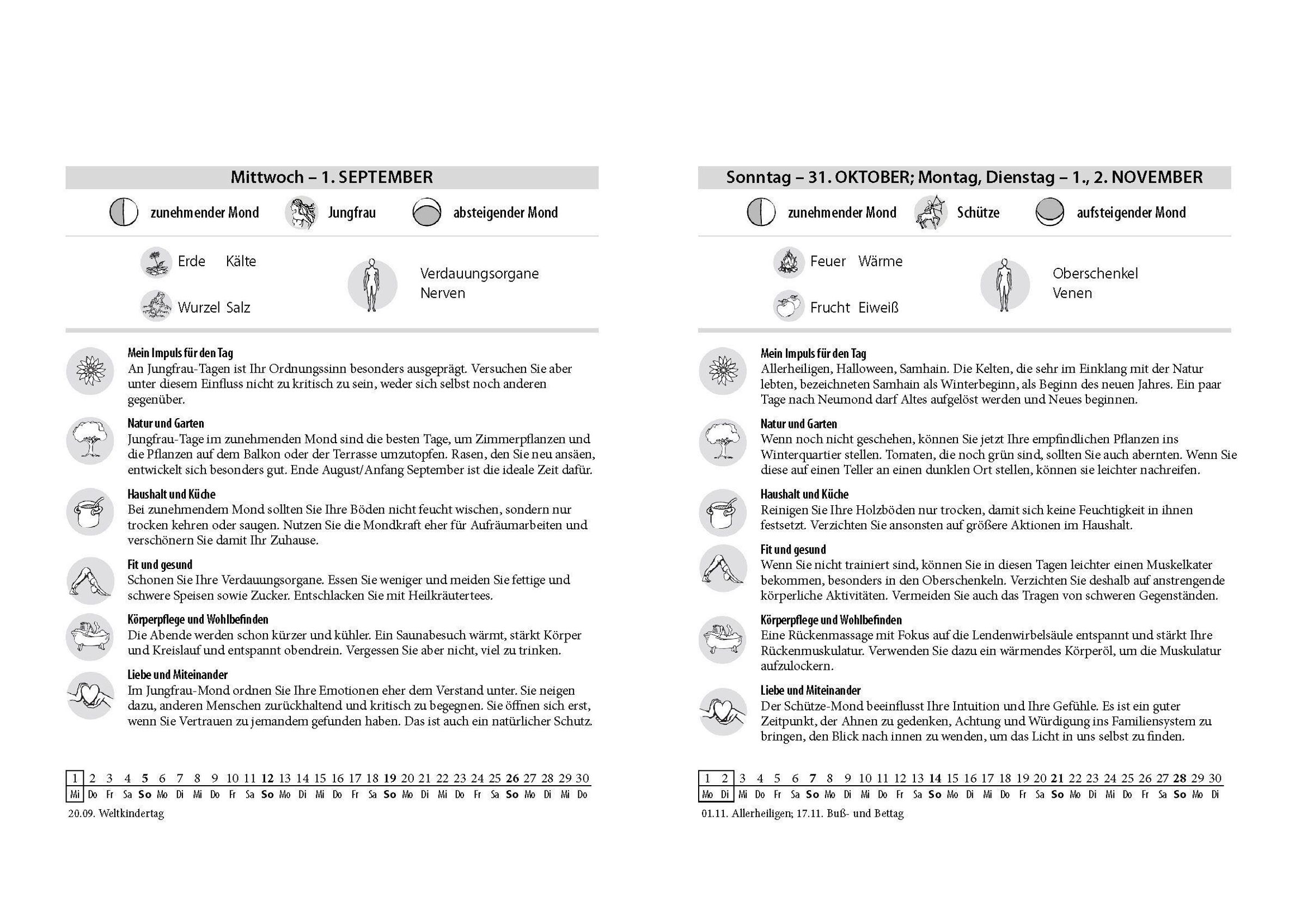 - Mondkalendarium mit Symbolen für den schnellen Überblick