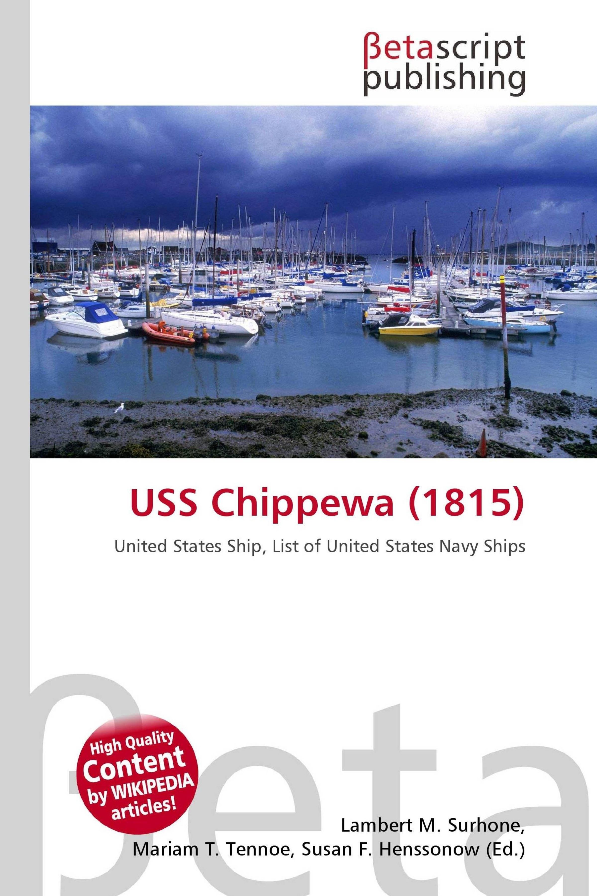 Please note that the content of this book primarily consists of articles available from Wikipedia or other free sources online. The second USS Chippewa was a brig built in 1815 at Warren, Rhode Island, under the direction of Commodore Oliver Perry, and sent to New York City to be outfitted and manned. Chippewa sailed from Boston, Massachusetts, 3 July 1815, with Lieutenant George C. Read in command, as a part of a squadron under the command of Commodore William Bainbridge. Before their arrival in the Mediterranean another squadron under the command of Commodore Stephen Decatur had succeeded in making peace with the Dey of Algiers. Bainbridge, after showing the flag in several ports in the Mediterranean, departed for home 6 October 1815. Upon her arrival at Boston, Chippewa was placed in ordinary.