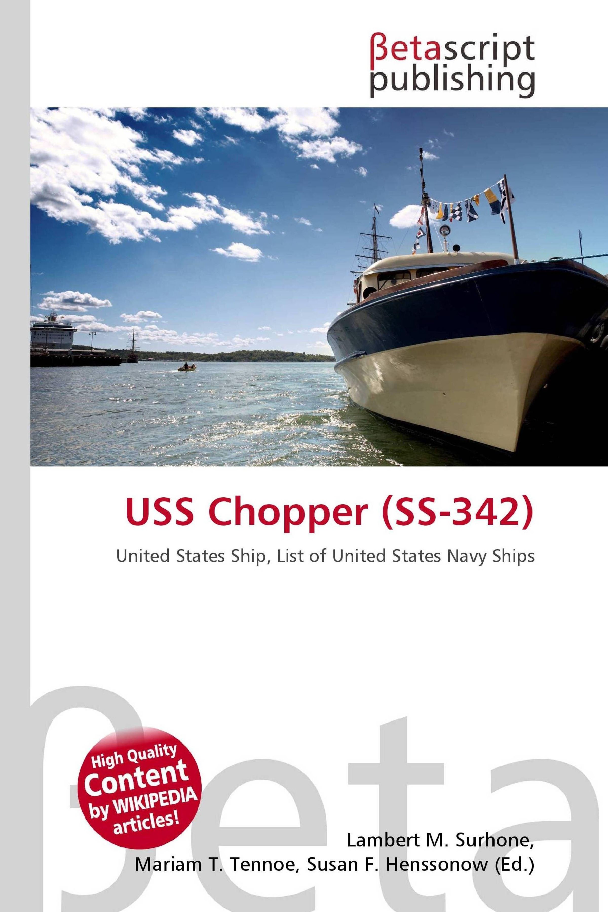 "USS Chopper (SS-342)" in Rot, Text darunter: "United States Ship, List of United States Navy Ships". Oben ein Schiff am Wasser., Buch