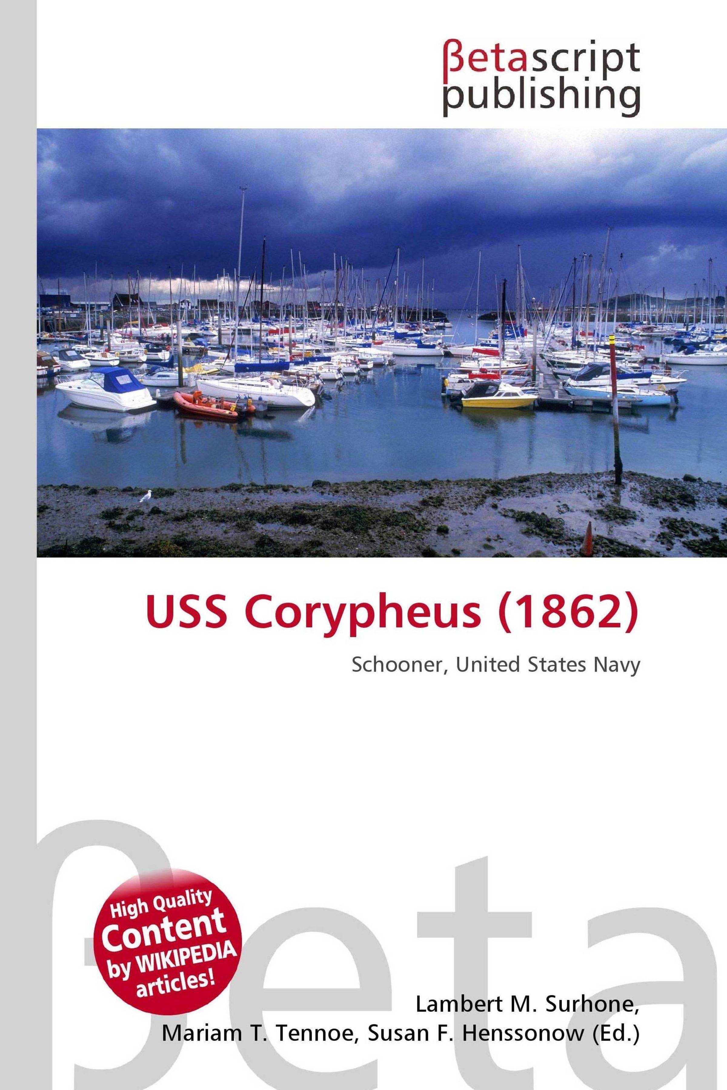 "USS Corypheus (1862), Schooner, United States Navy." Oben das Logo von "Betascript Publishing." Bild zeigt Boote im Hafen., Buch
