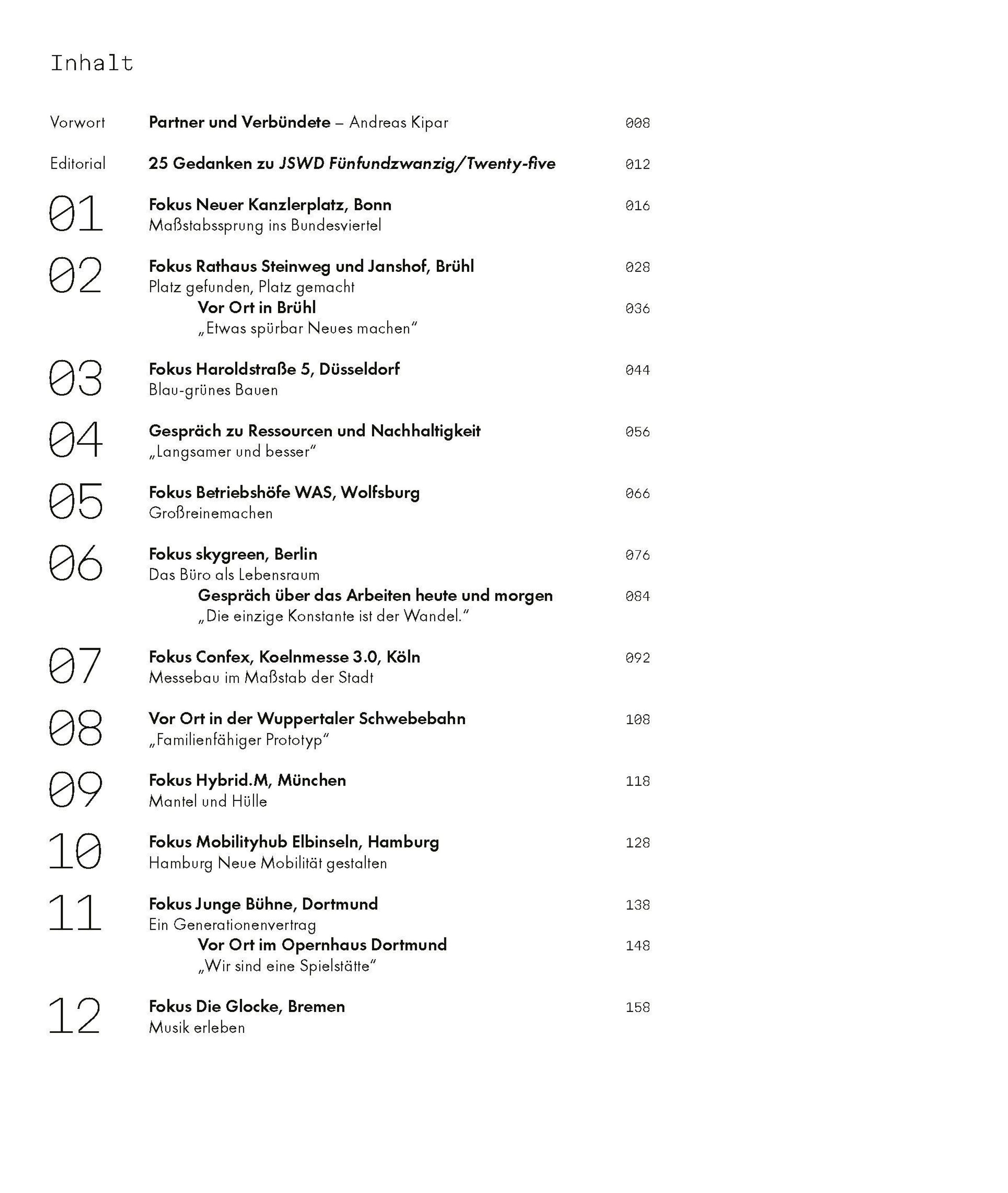 Kiosks, Clinics, and Corporate Spaces-25 years ago, Konstantin Jaspert, Frederik Jaspert, Jürgen Steffens, Rolf Watrin, and Olaf Drehsen founded the Cologne-based architecture firm JSWD. Time for a review: In 25 chapters, author Uta Winterhager presents this renowned office, giving voice to many of those who have contributed to its success. The focus is on the projects themselves. Through a series of minuted on-site conversations, she visits completed projects and future construction sites alongside the partners, project managers, and younger team members. Discussions with clients, collaborators, and in-house experts on topics such as workplace environments, healthcare, resources and revitalization, architecture and landscape, and the competition process offer deeper insights into the multifaceted work of JSWD.